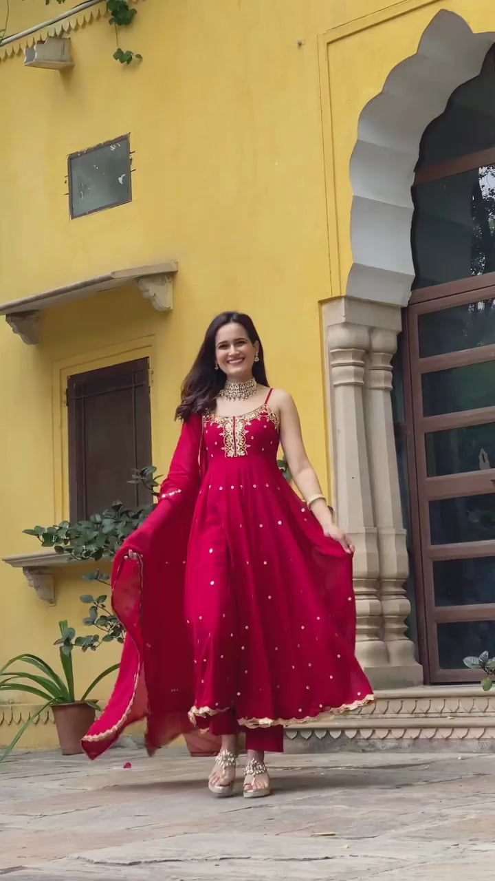 Raveta Elegant Moti Chinon Anarkali Style Gown Set