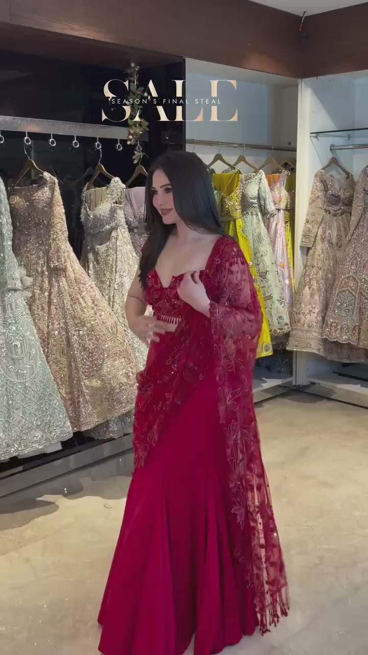 Designer Butterfly Net Embroidered Lehenga Saree with Elegant Thread Work