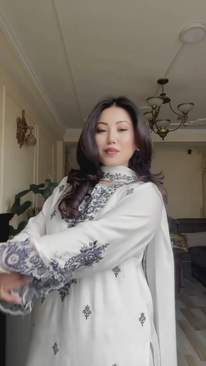 Stylish Embroidered Kurta Set with Heavy Neck Work