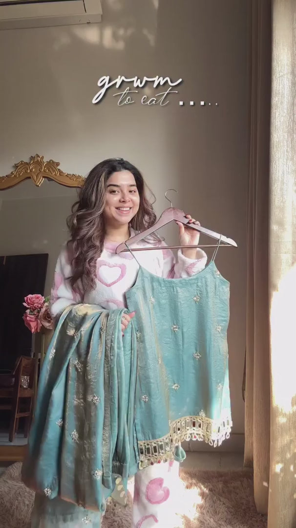 Aqua Elegance Mirror Work Sharara Set