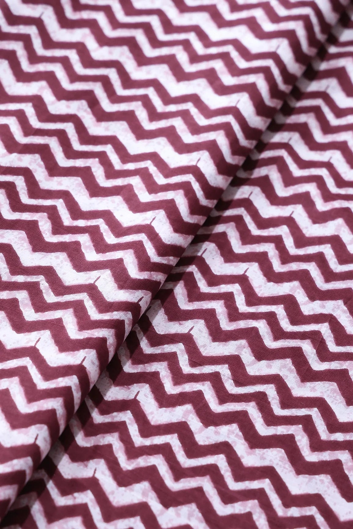 Fabric 2/ Bottom : Maroon And Off White Chevron Print On Pure Cotton Fabric
