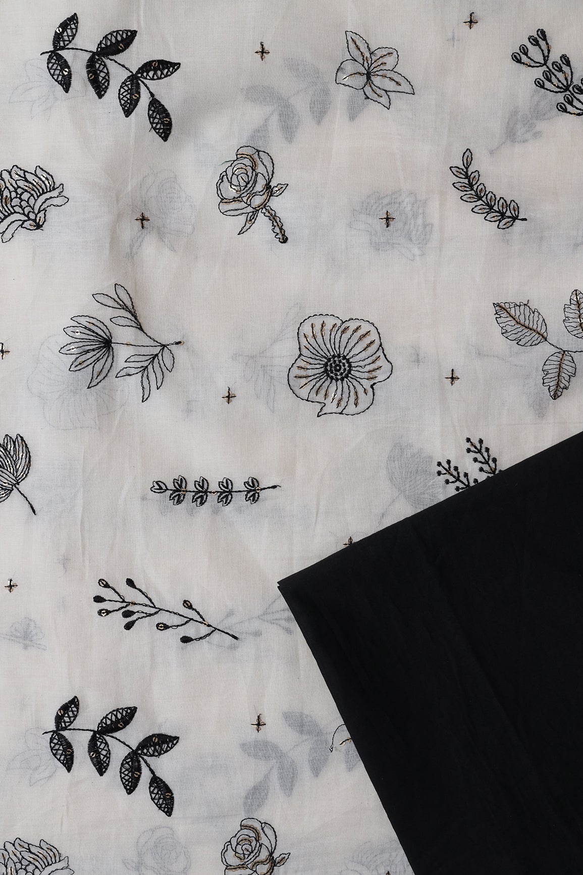 Fabric 1/ Top : Black Thread With Gold Sequins Floral Embroidery Work On Off White Organic Cotton Fabric