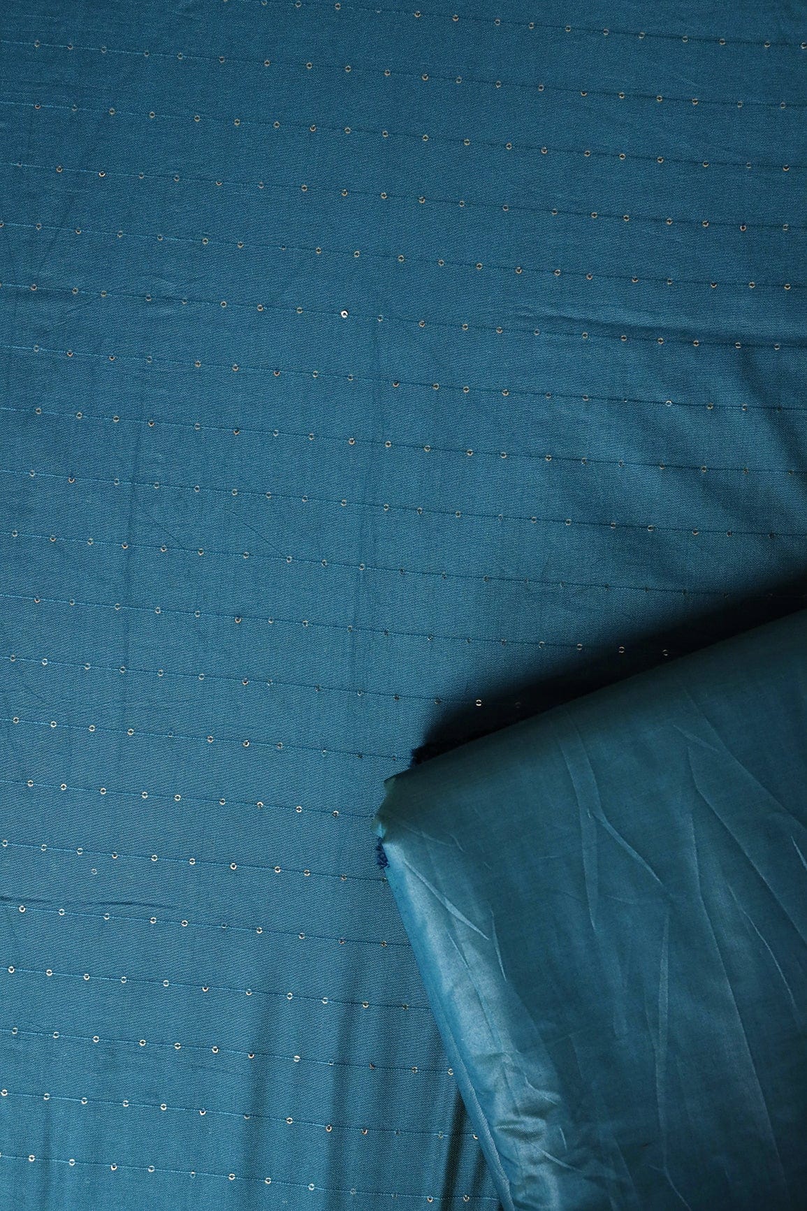 Fabric 1/ Top : Beautiful Rama Thread With Gold Sequins Stripes Embroidery On Rama Viscose Chanderi Silk Fabric