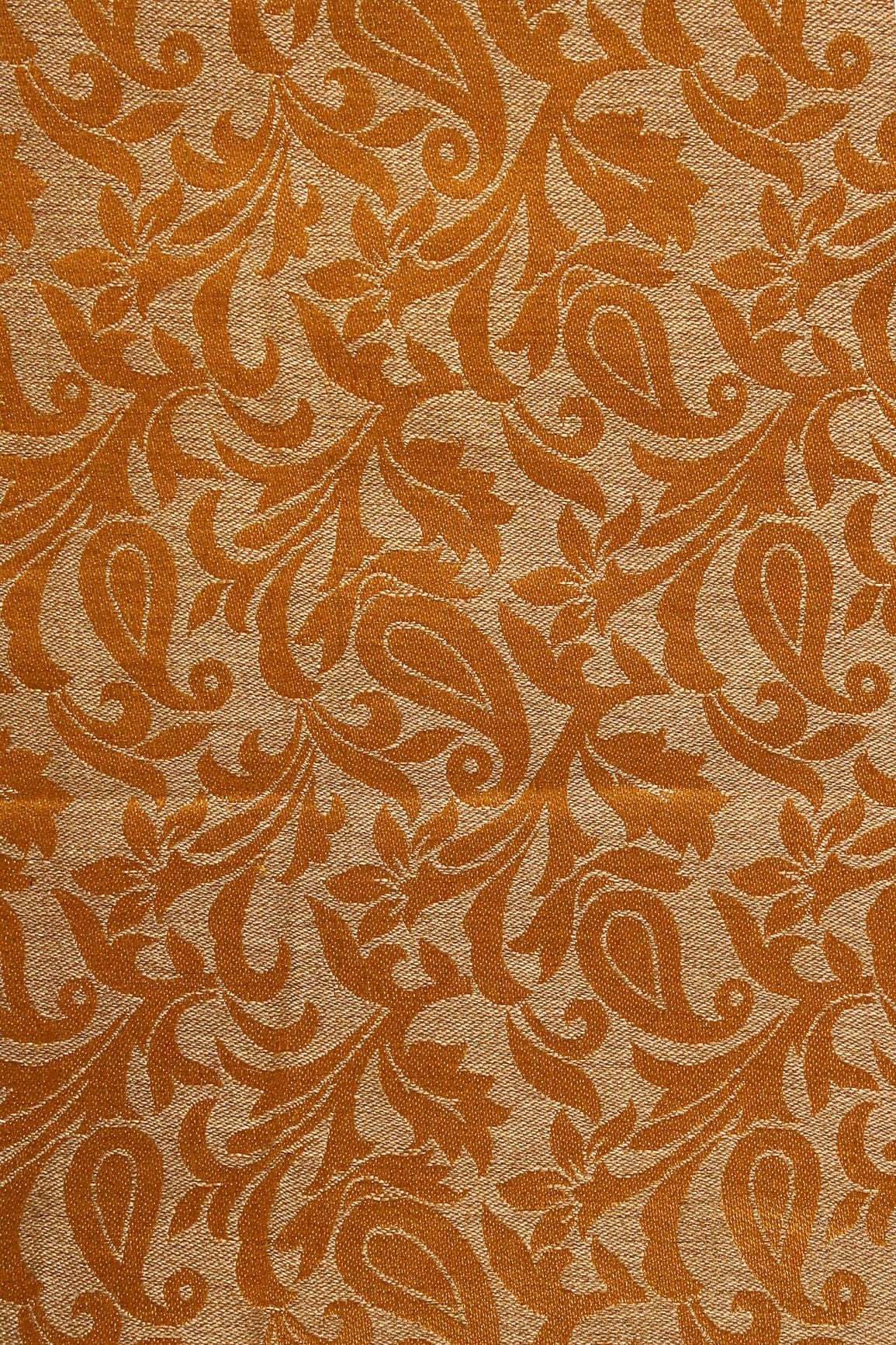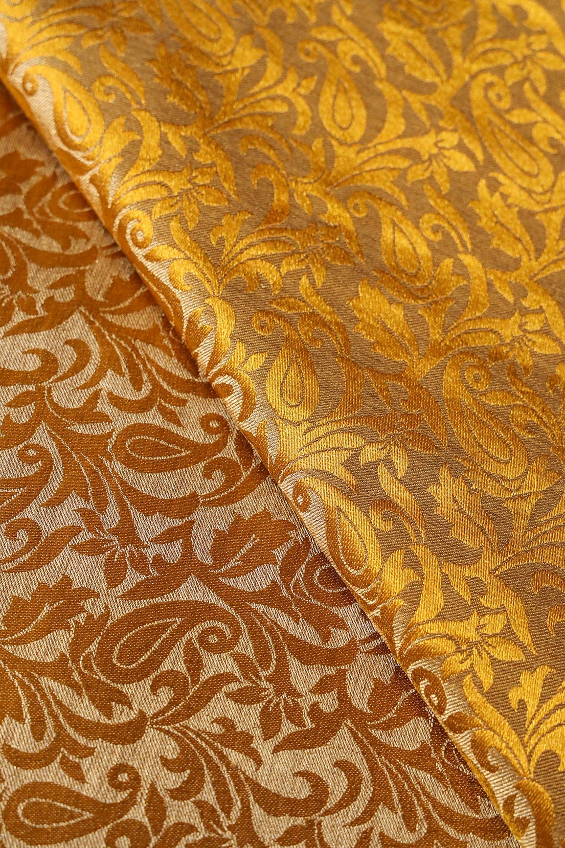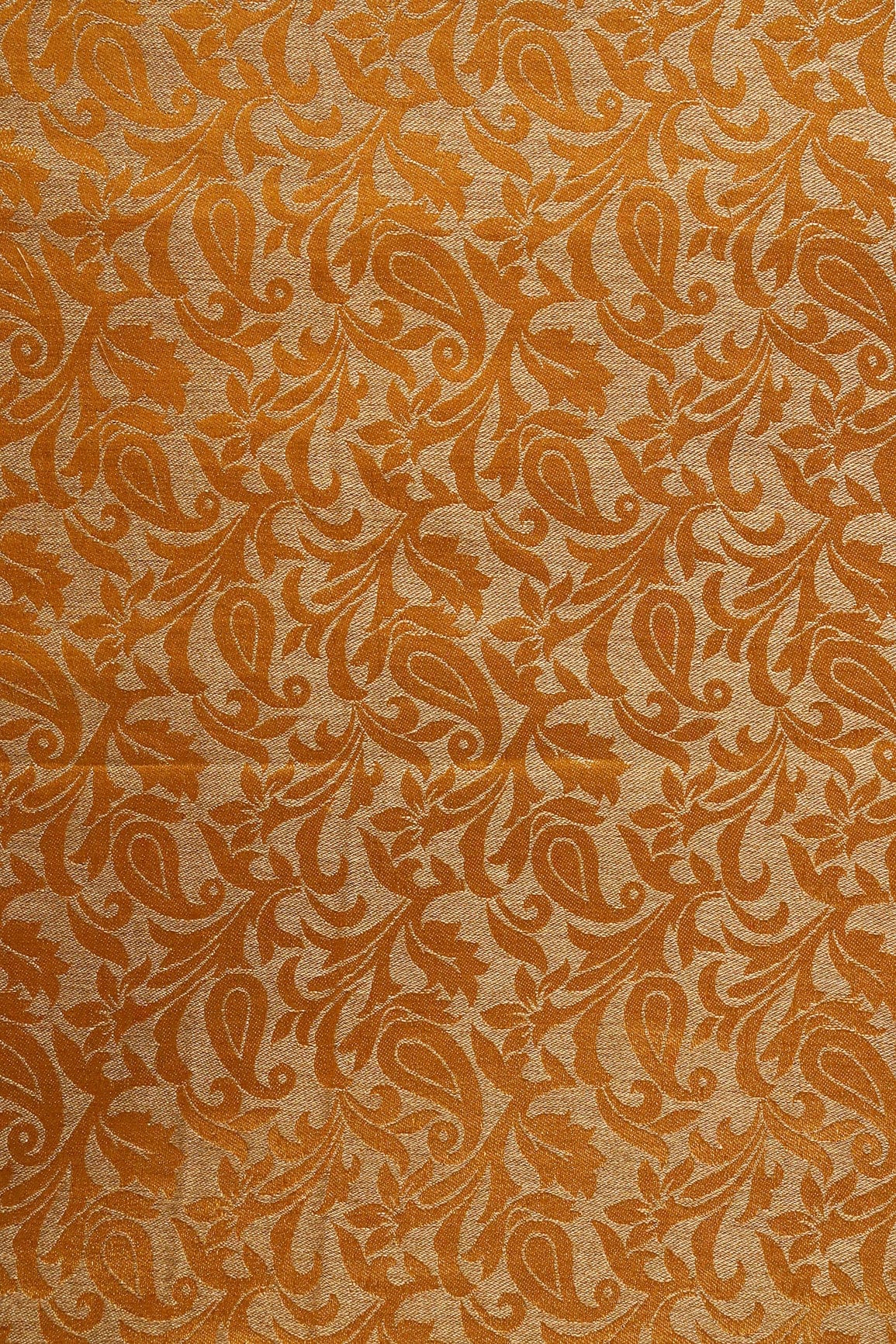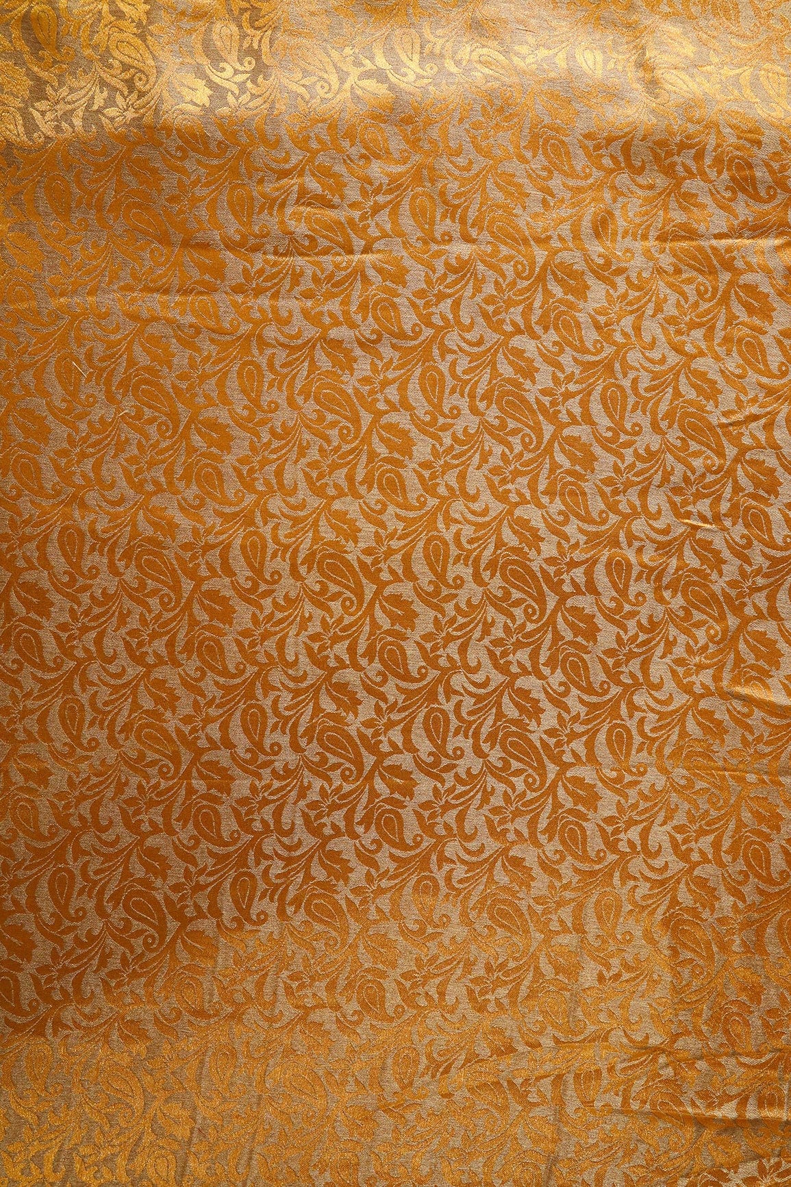 Mustard Paisley Silk Satin Jute Banarasi Jacquard Fabric