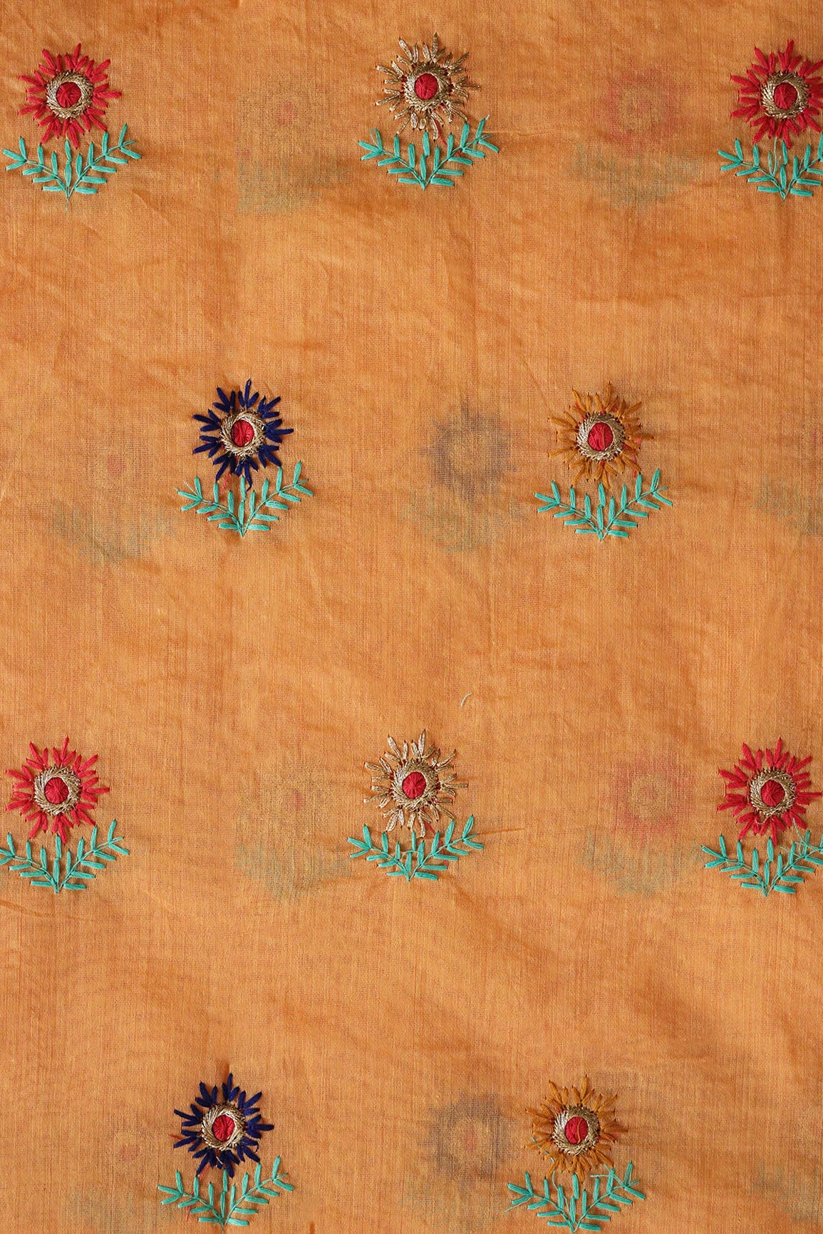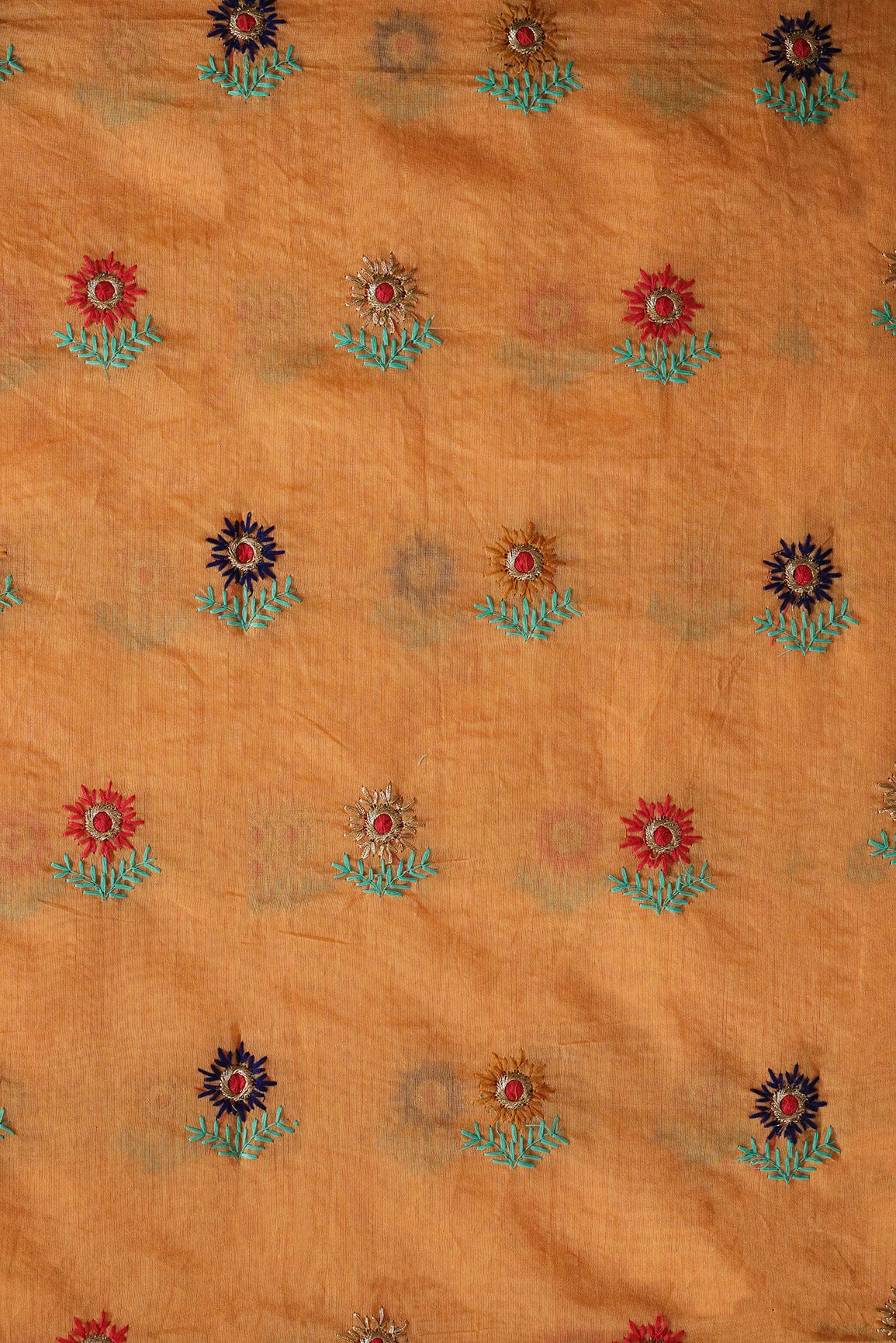Multi Color Sun Flower Zari Embroidery On Peach Chanderi Fabric