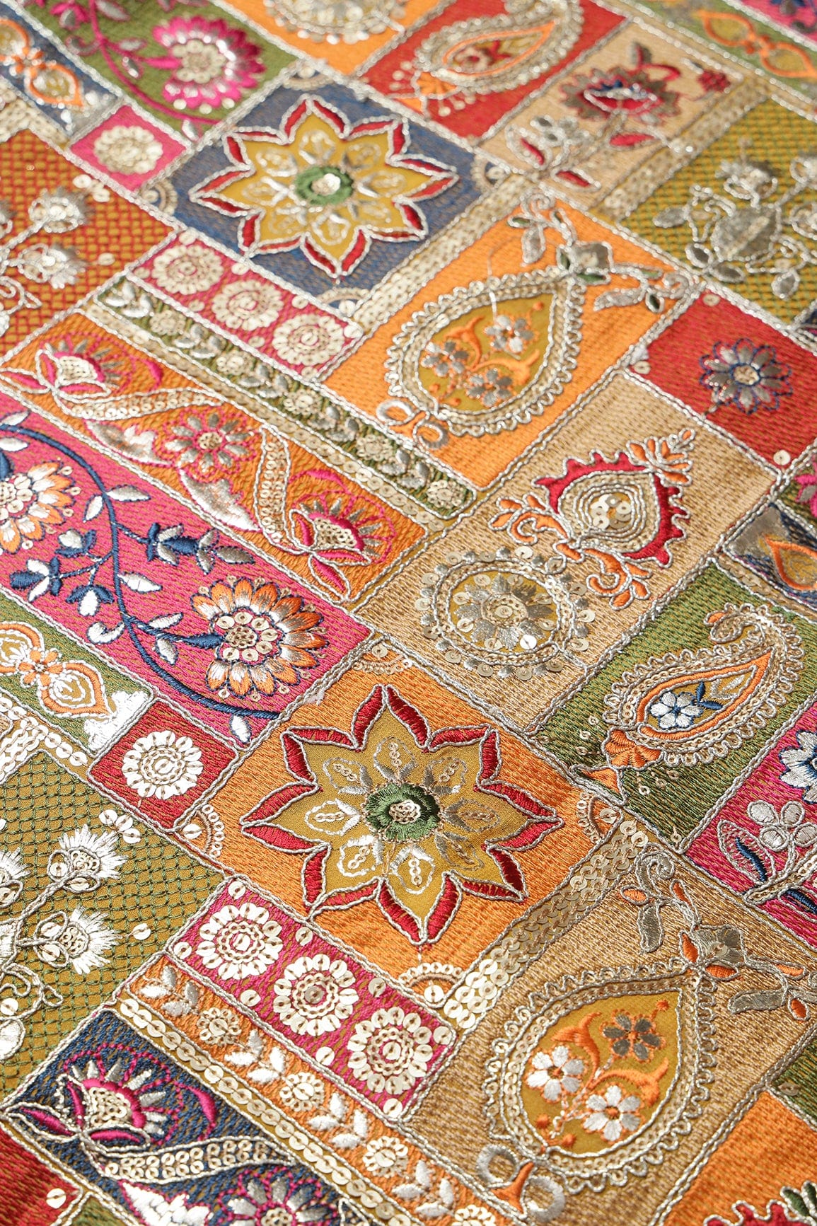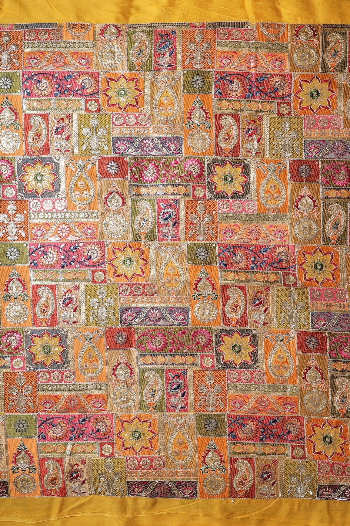 Multi Color Thread With Gold Sequins Traditional Embroidery On Yellow Viscose Georgette Fabric