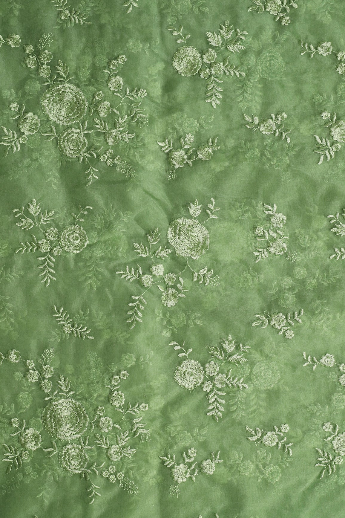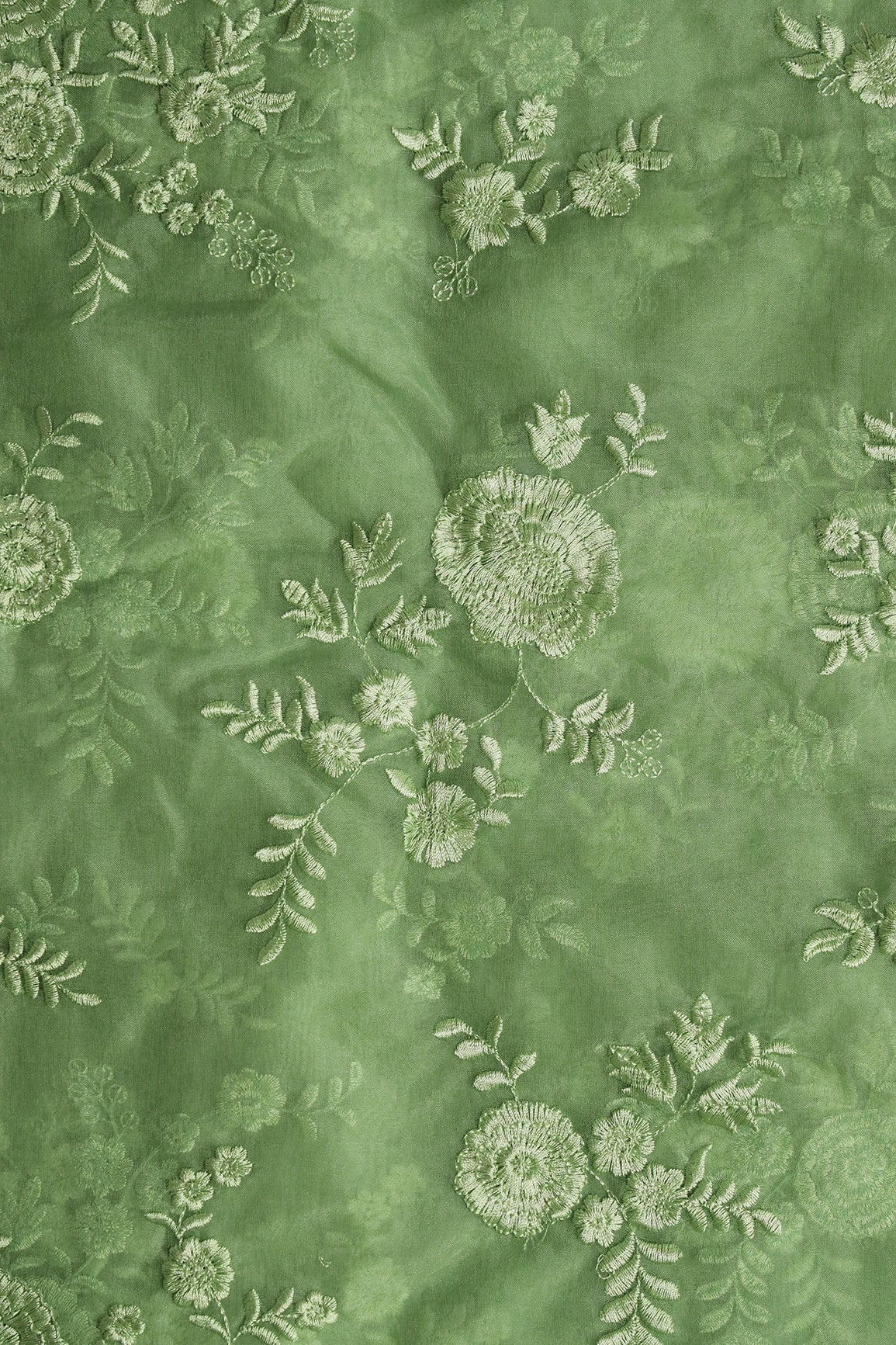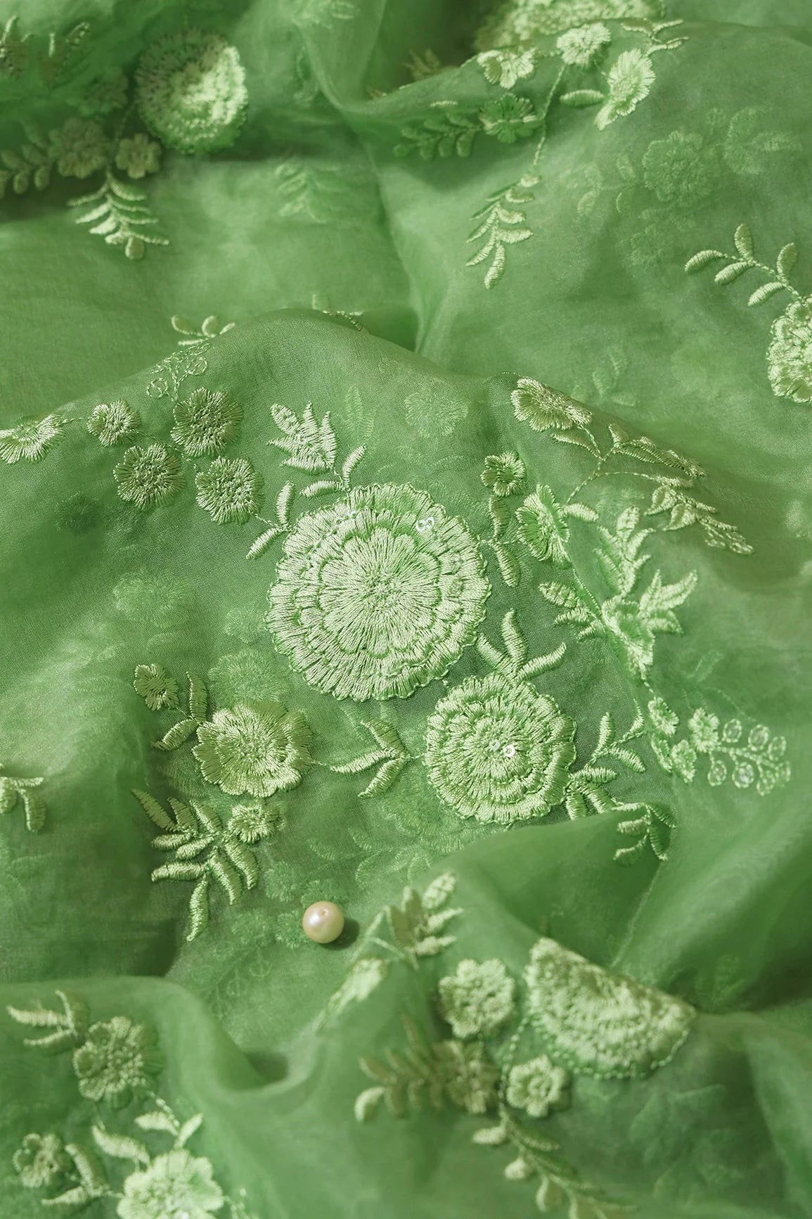Olive Thread With Water Sequins Floral Embroidery Work On Olive Organza Fabric