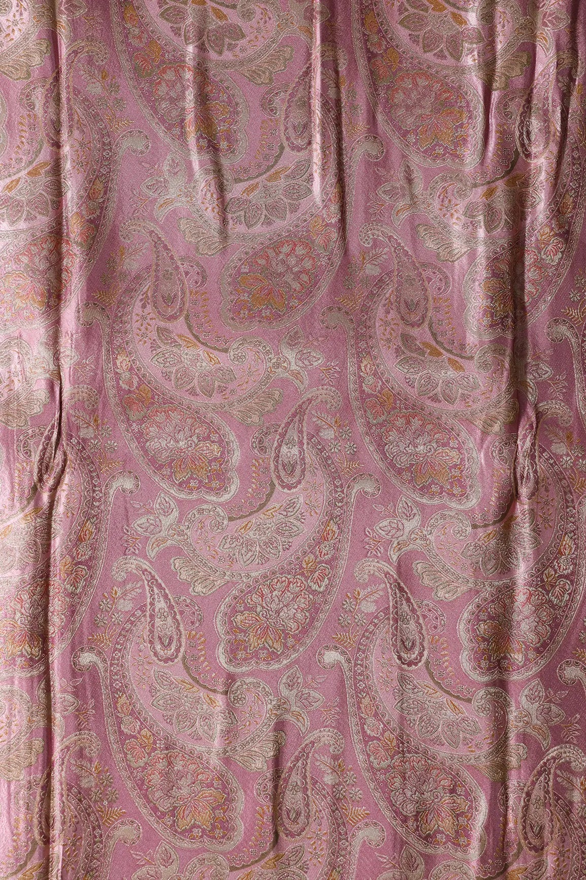 Positional Floral Print On Light Pink Viscose Dola Silk Jacquard Fabric