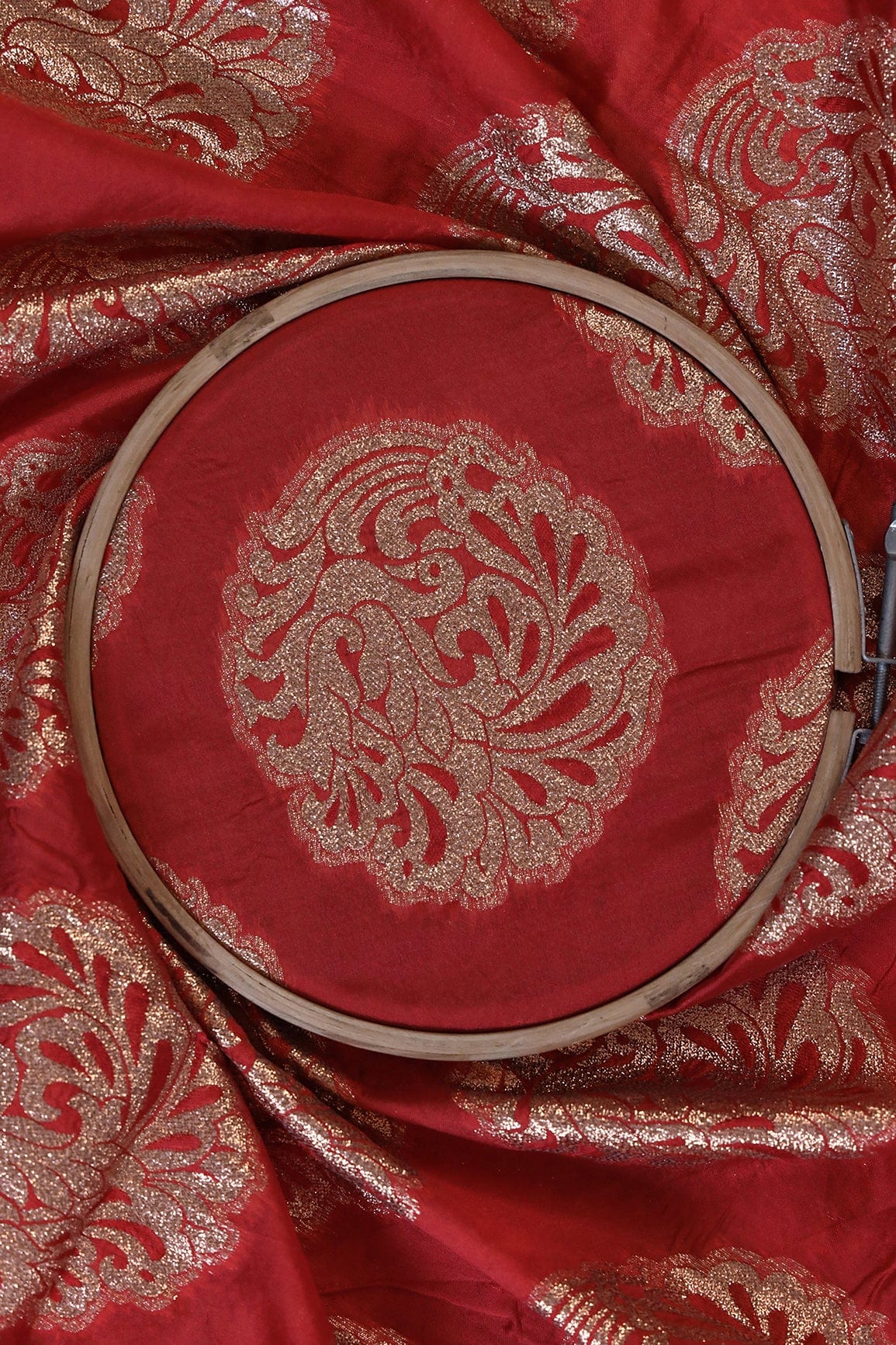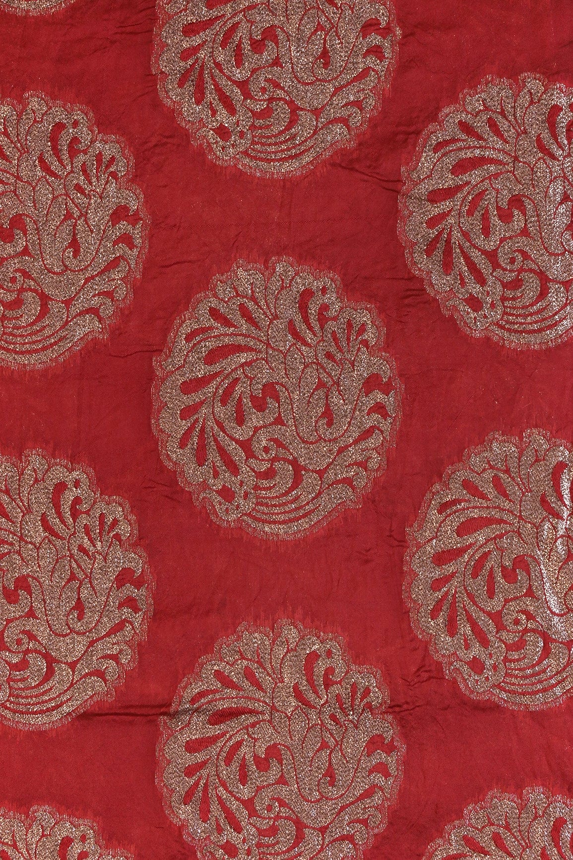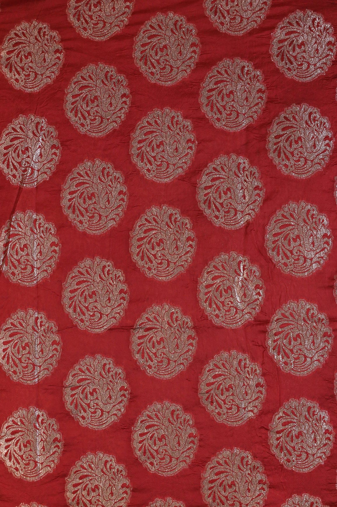 Red Ethnic Butta Silk Gold Zari Banarasi Jacquard Fabric