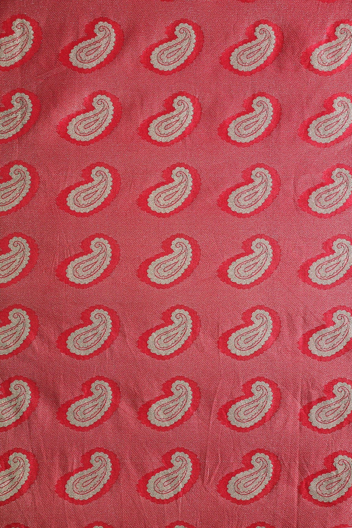 Red Paisley Jute Banarasi Gold Zari Jacquard Fabric