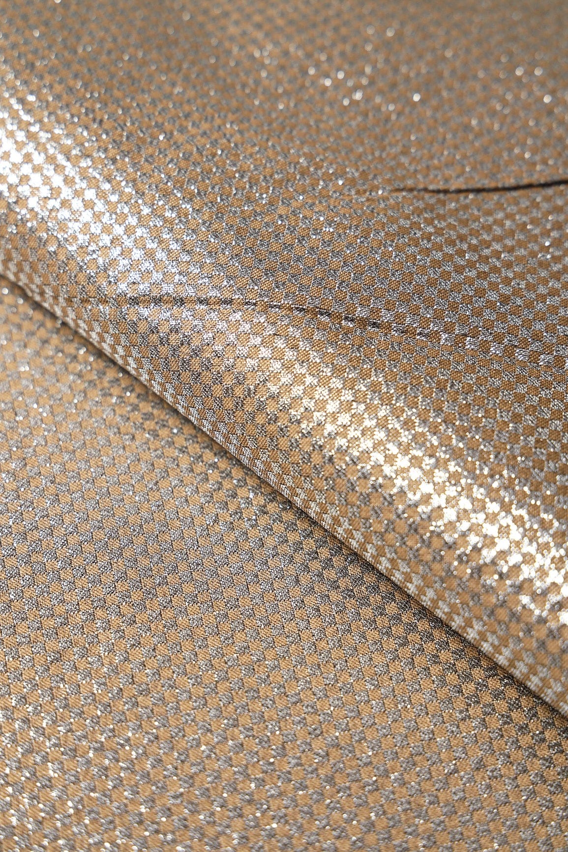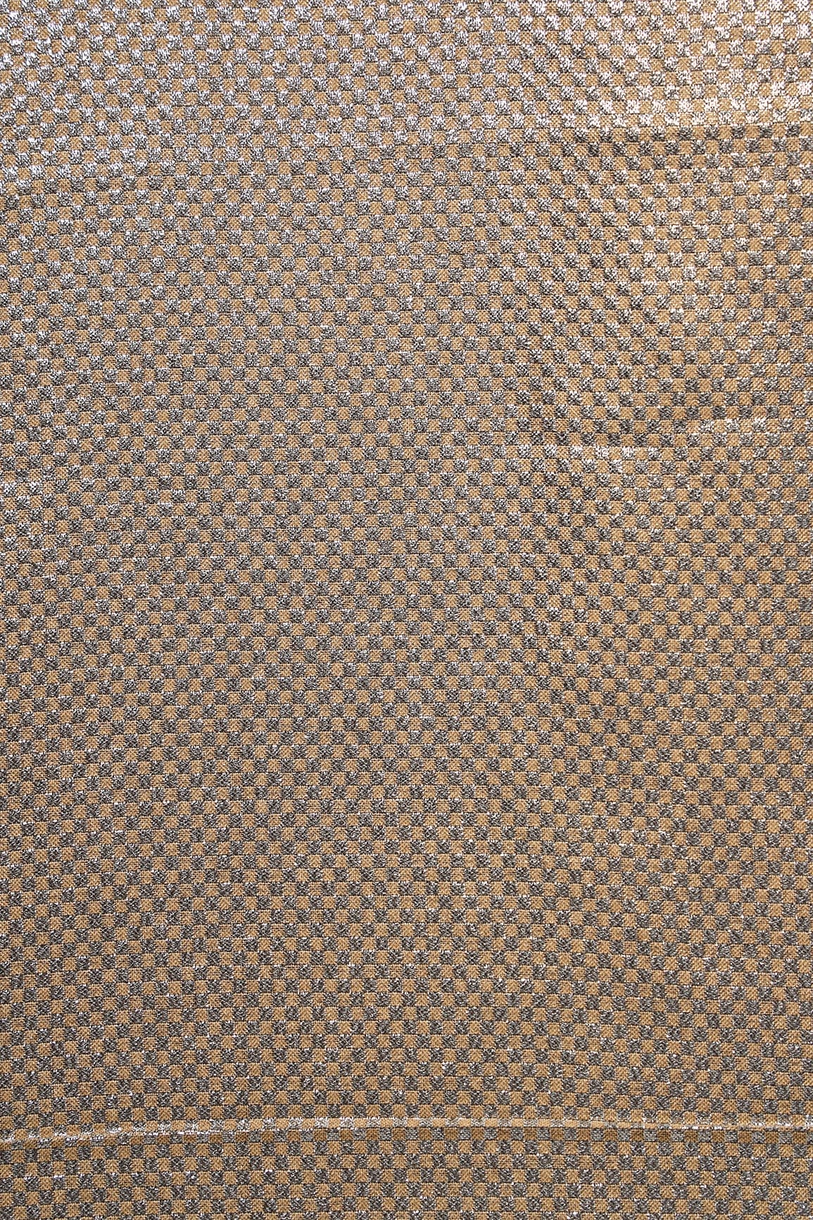 Silver And Beige Zari Matty Checks Textured Banarasi Jacquard Fabric