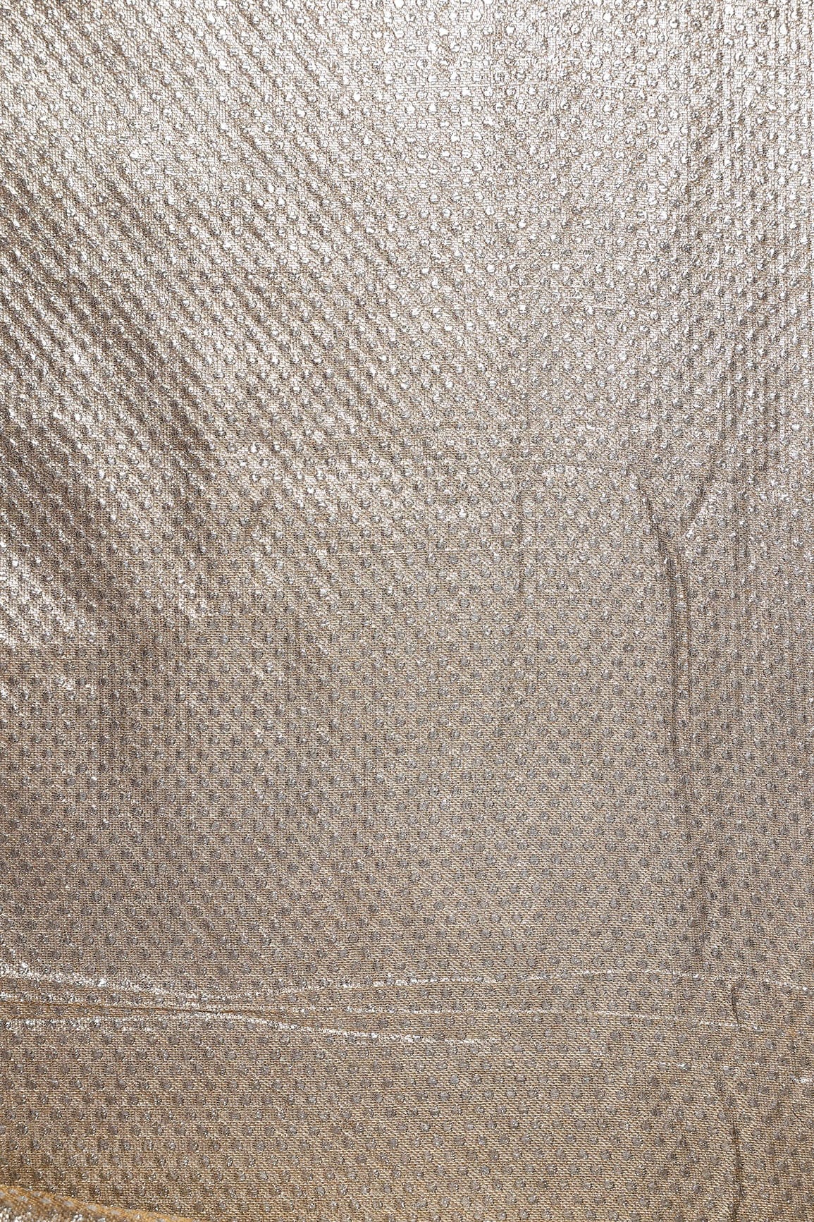 Silver And Beige Zari Matty Polka Textured Banarasi Jacquard Fabric
