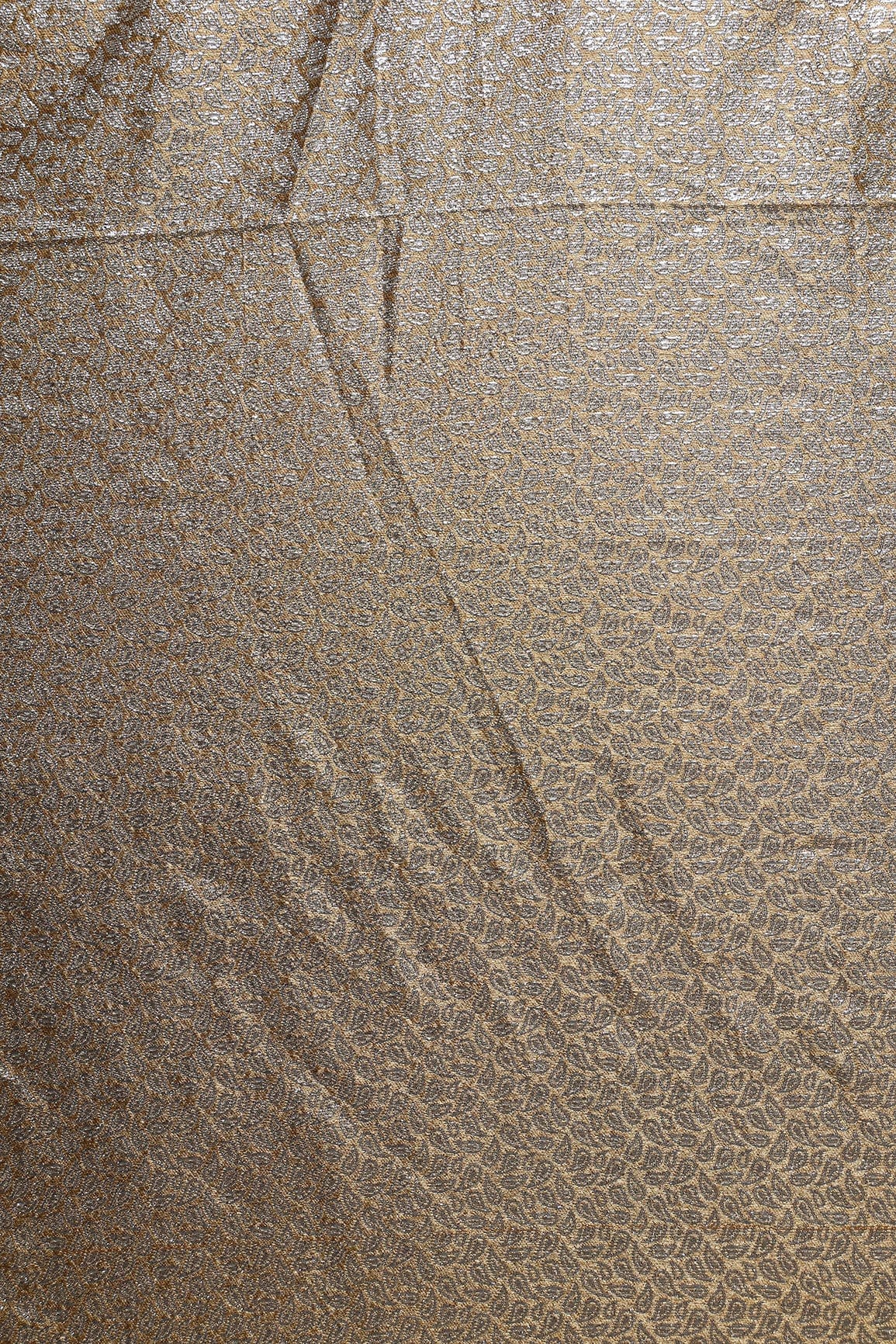Silver And Beige Zari Matty Small Paisley Banarasi Jacquard Fabric