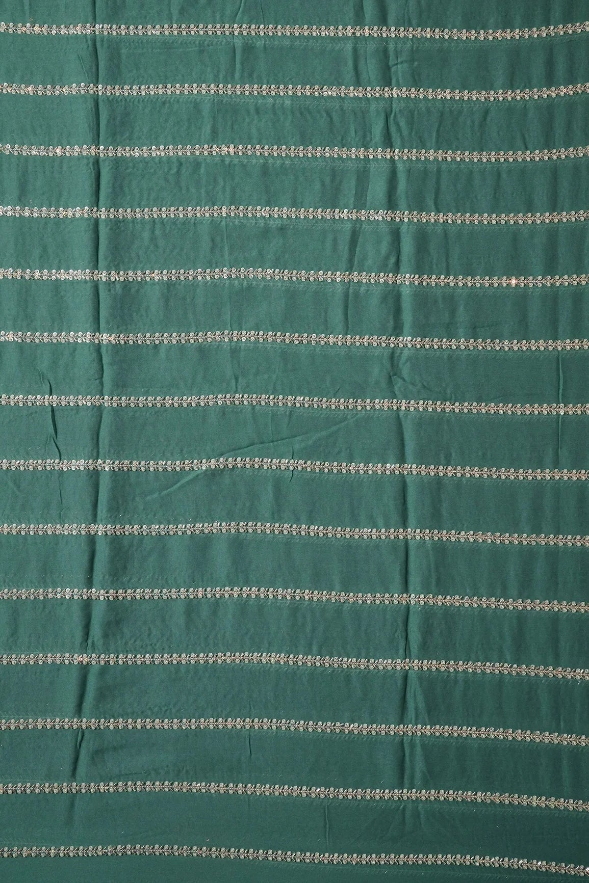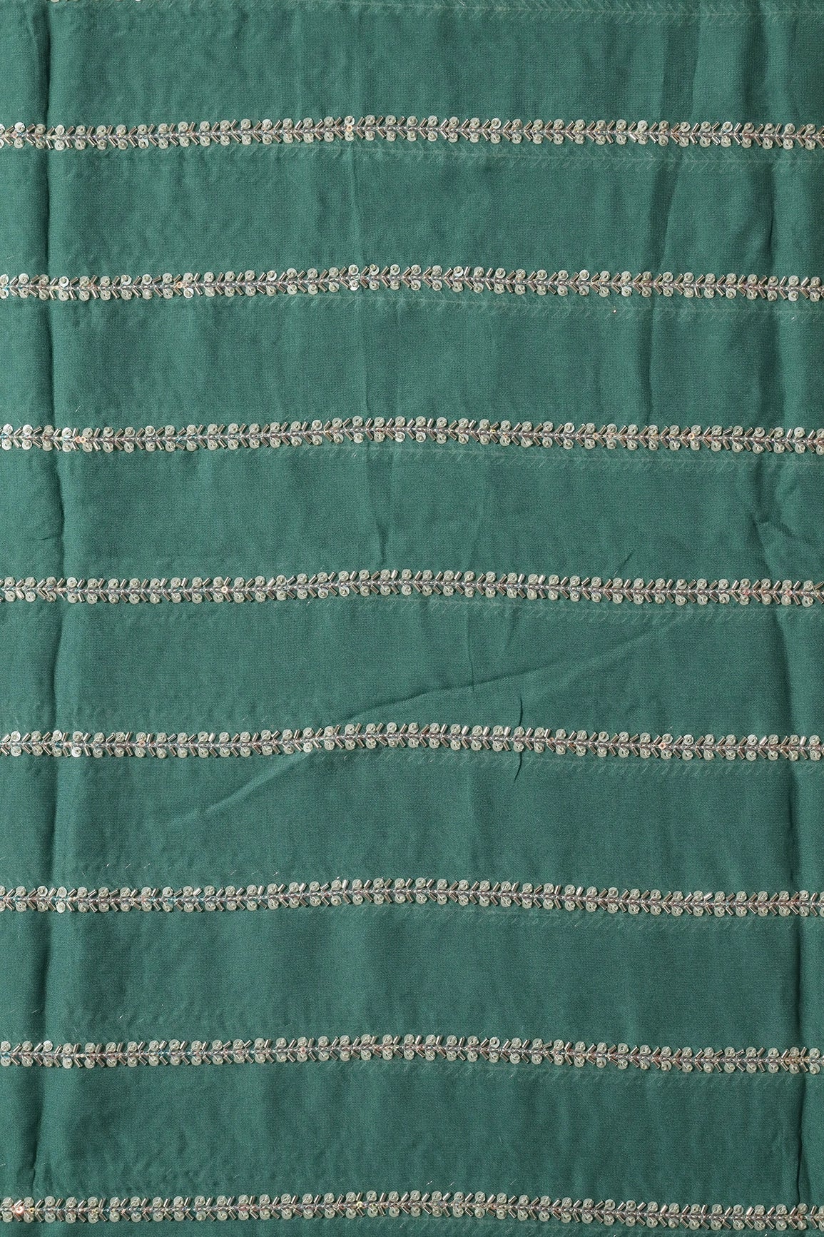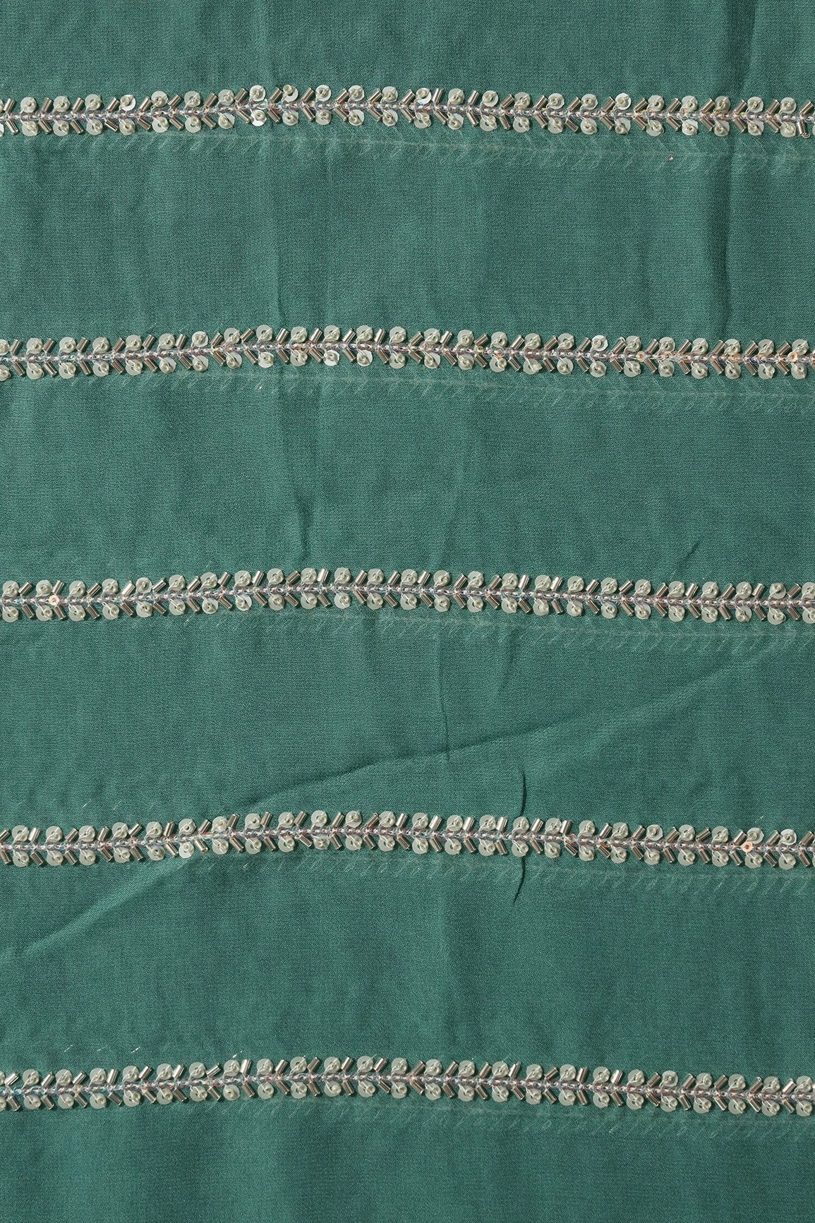 Silver Beads With Sequins Beautiful Stripes Handwork Embroidery On Teal Viscose Georgette Fabric