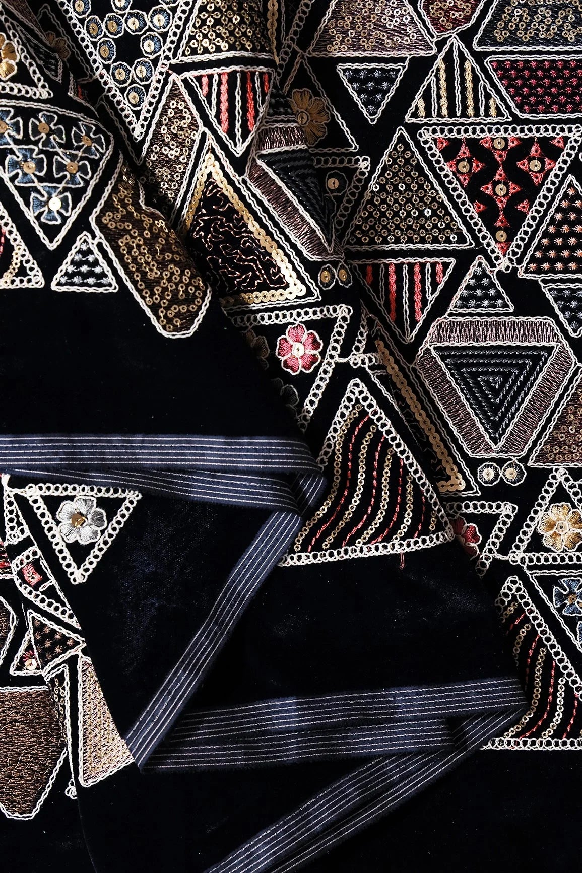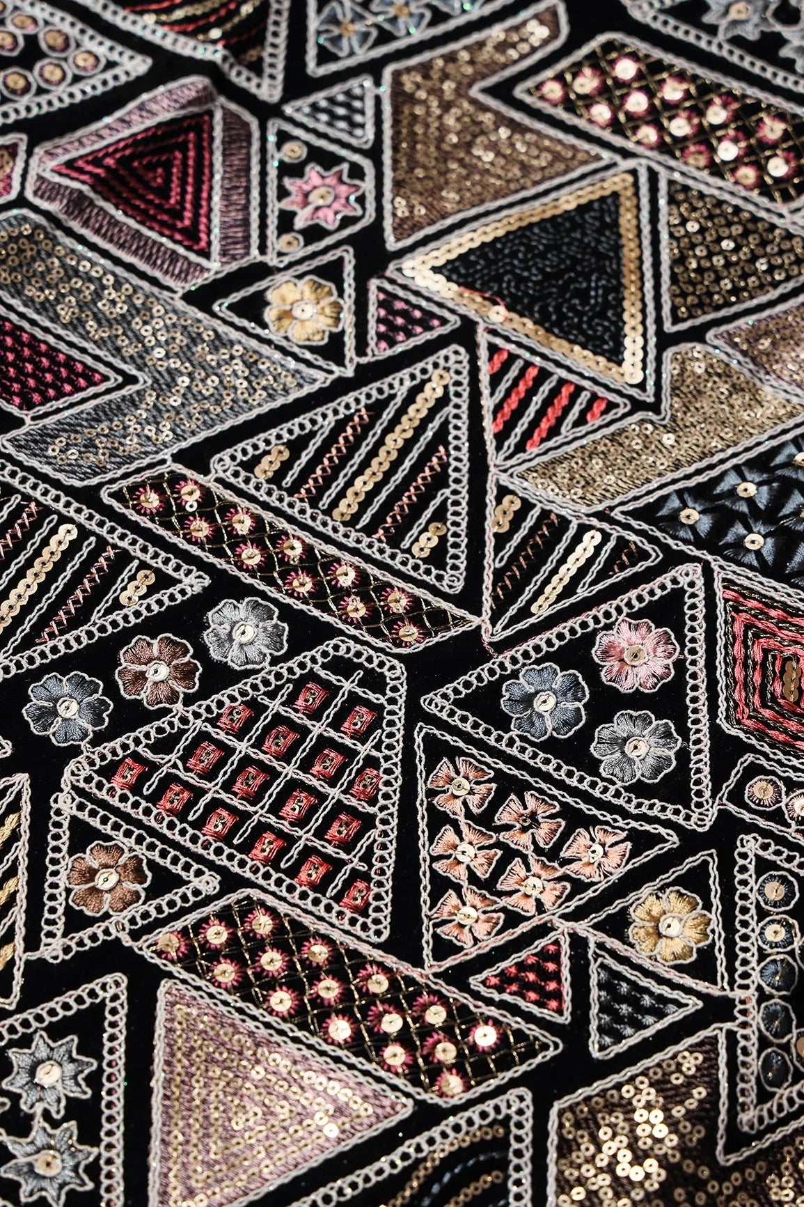 Rich, Shiny, soft and a Luxurious texture is what makes our Velvet so loved by everyone. This is Micro Velvet 9000 which is of the highest quality available. All this work is done on our high quality velvet fabric making it perfect for all occasions and designing all kinds of garments. Our collection is made by experience designers who study fashion and trend for coming season and design fabrics to keep clients ahead of their time.