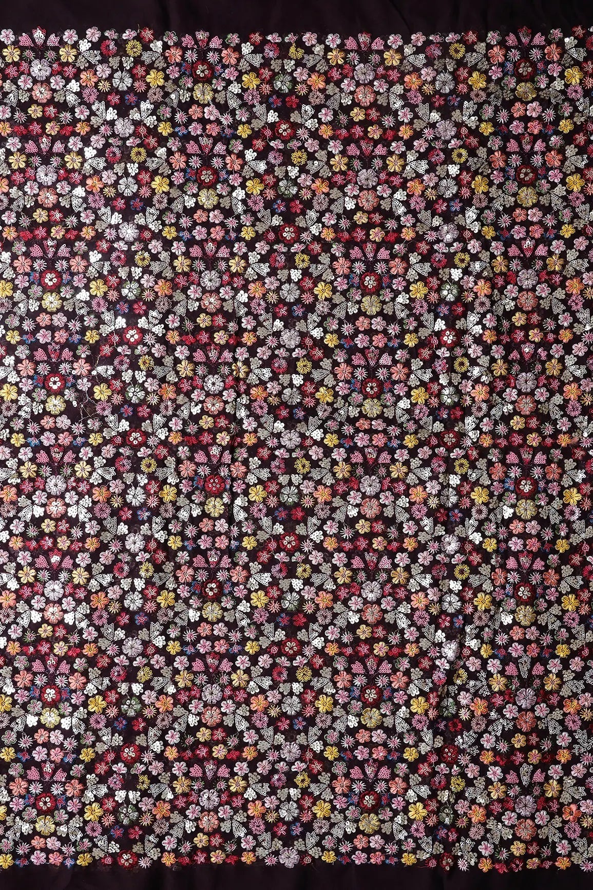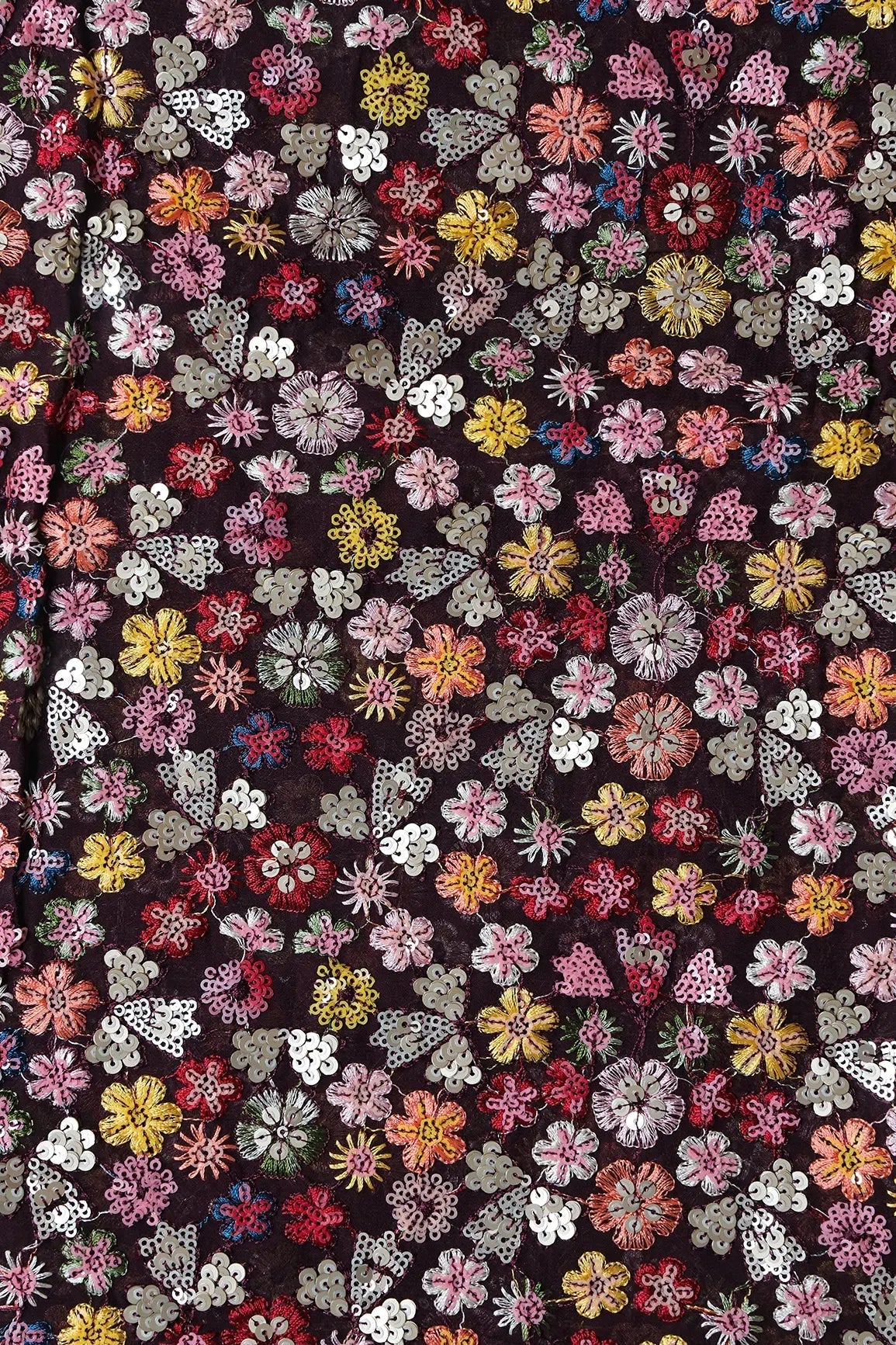 Wonderful Multi Thread With Multi Sequins Floral Embroidery On Wine Viscose Georgette Fabric