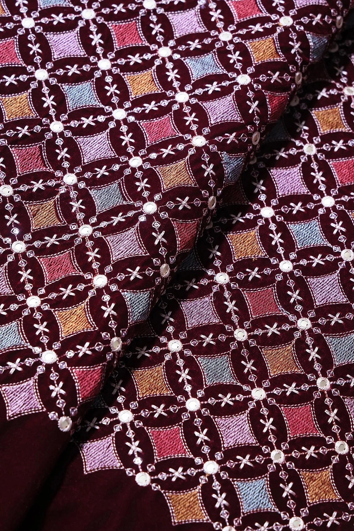 Fabric 2/ Blouse : Multi Thread With Sequins Geometric Embroidery Work On Maroon Velvet Fabric