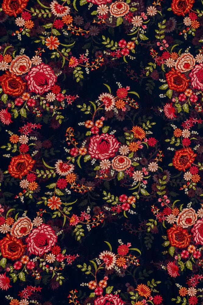 Fabric 3/Dupatta : Heavy Kashmiri Work With Gold Sequins Embroidery On Navy Blue Georgette