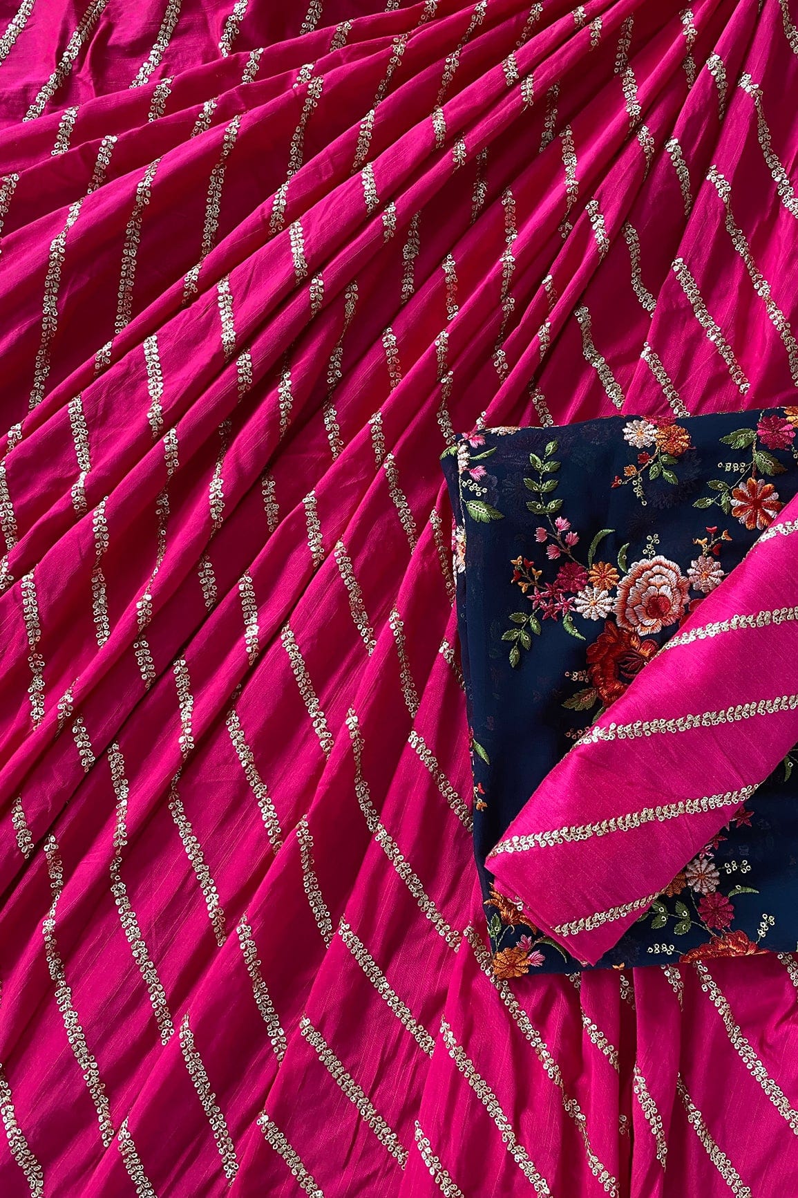 Fabric 2/ Blouse : Gold Sequins With Gold Zari Stripes Embroidery Work On Rani Raw Silk Fabric