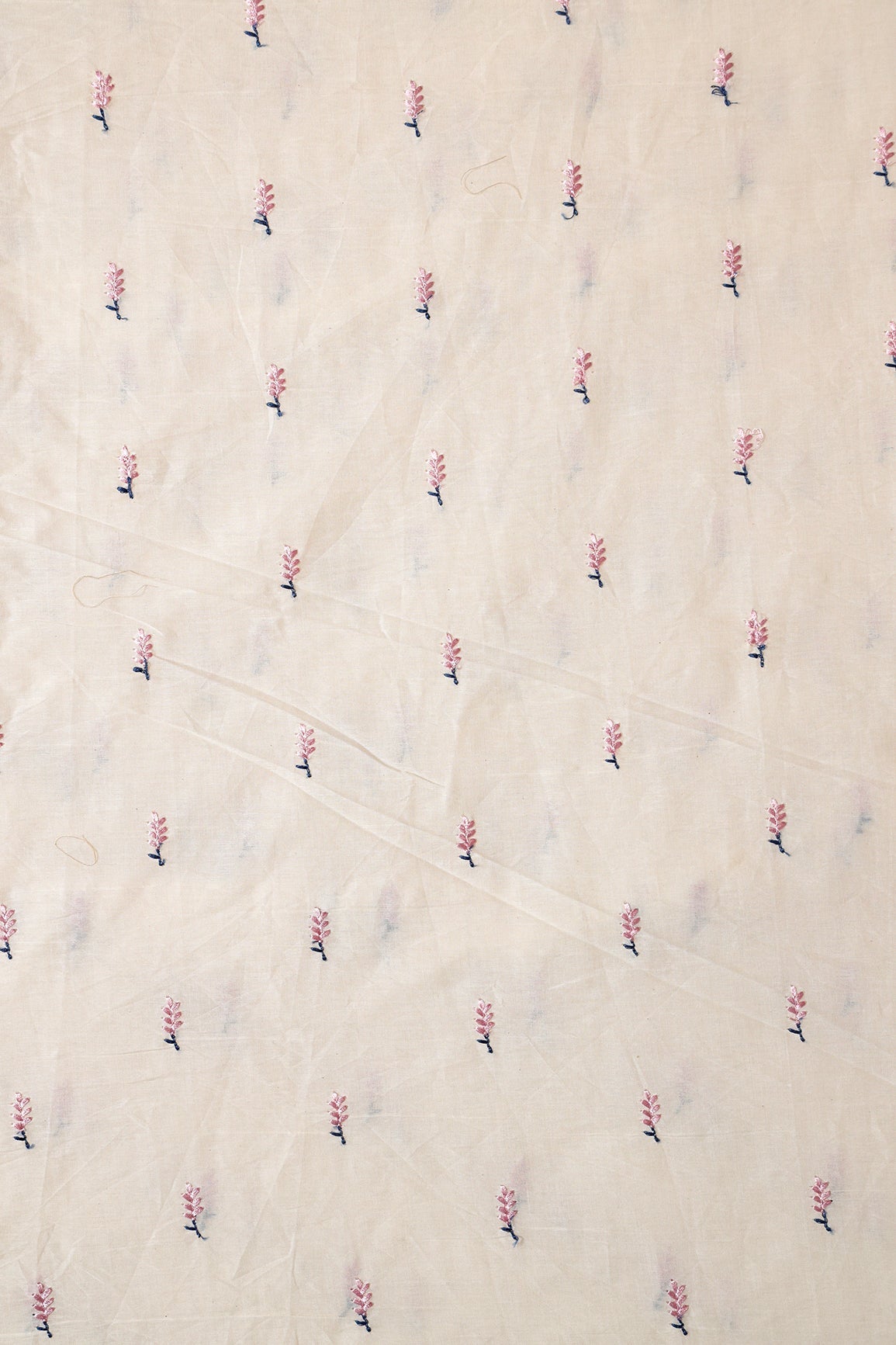 Lilac Small Leafy Embroidery On Off White Pure Cotton Fabric