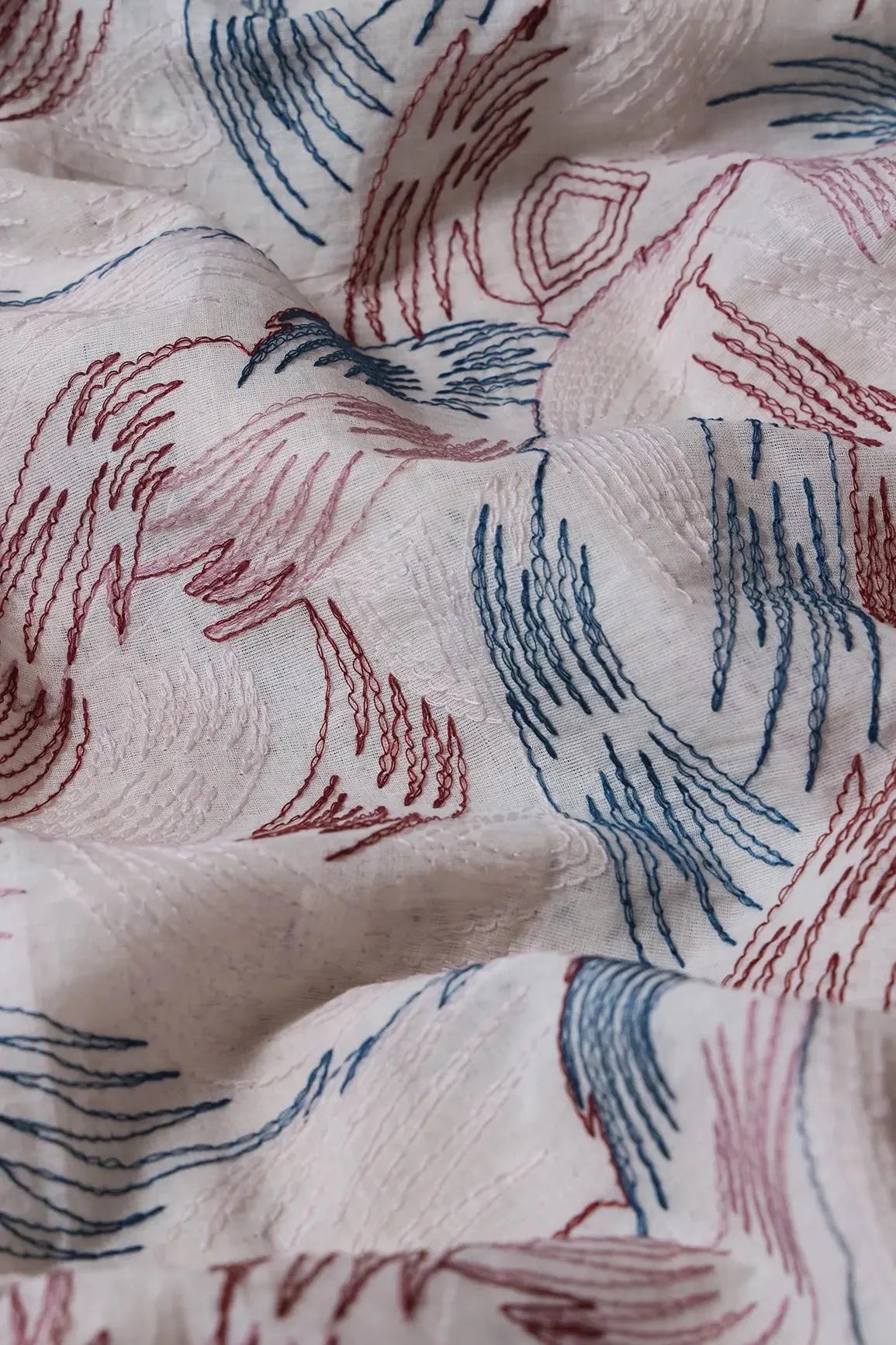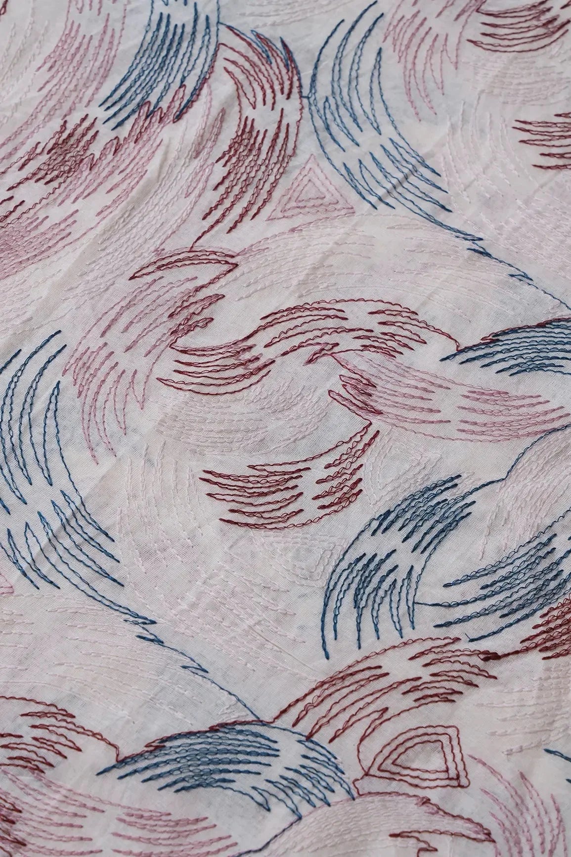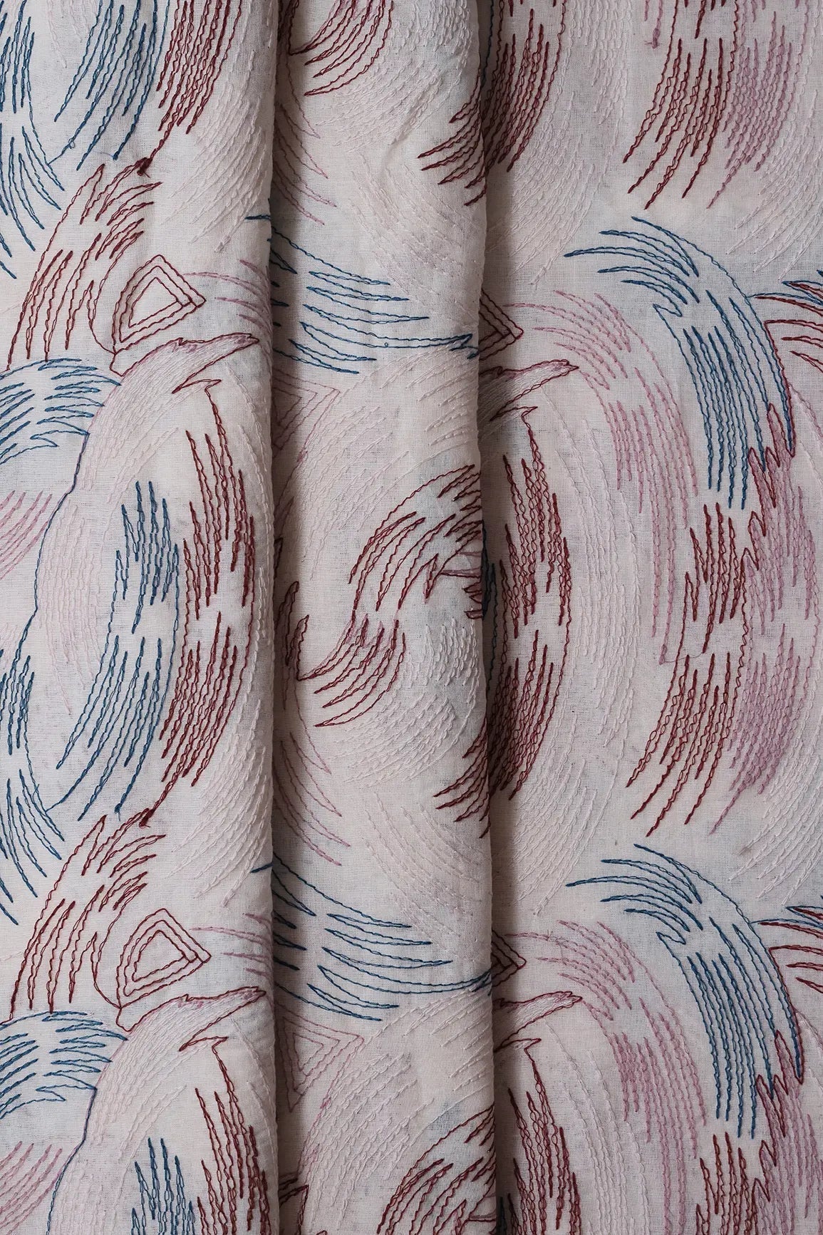 Multi Thread Abstract Embroidery Work On Off White Organic Cotton Fabric