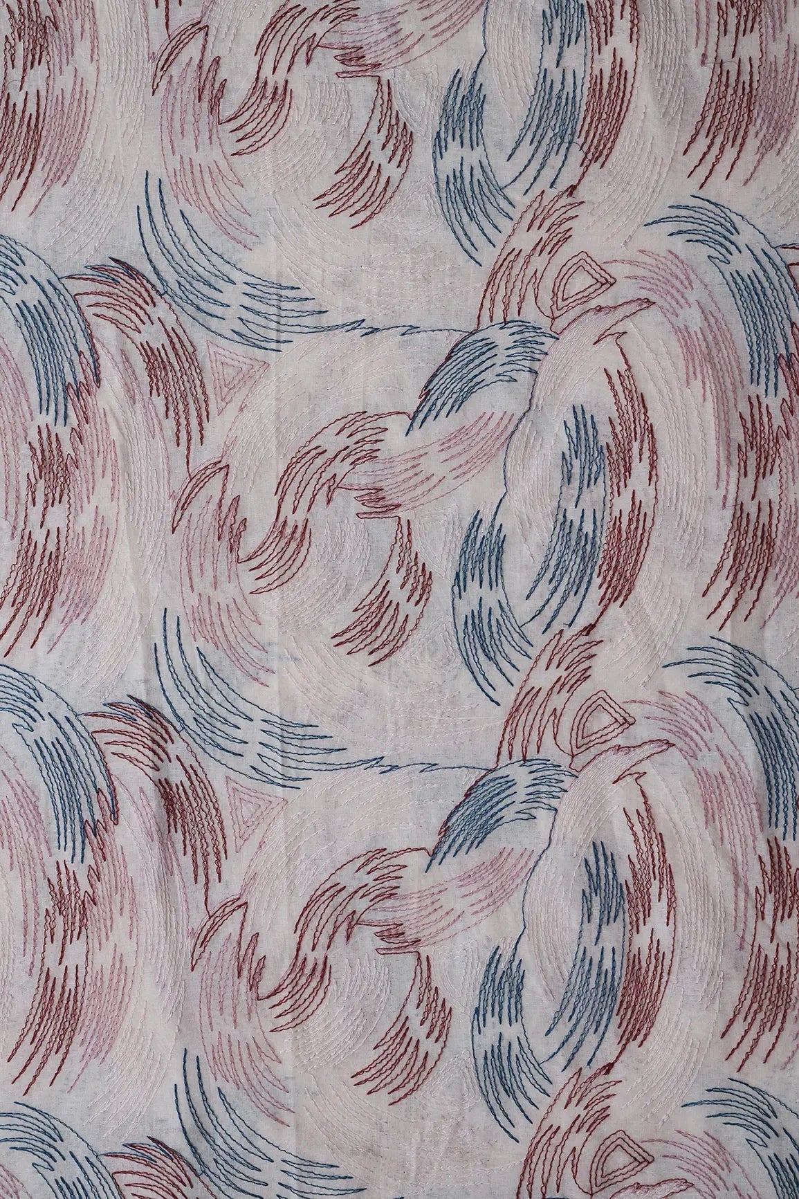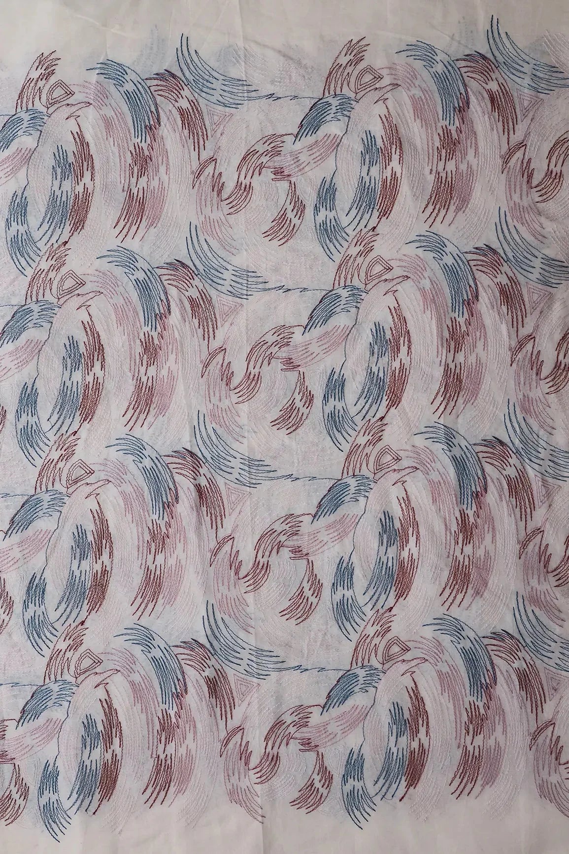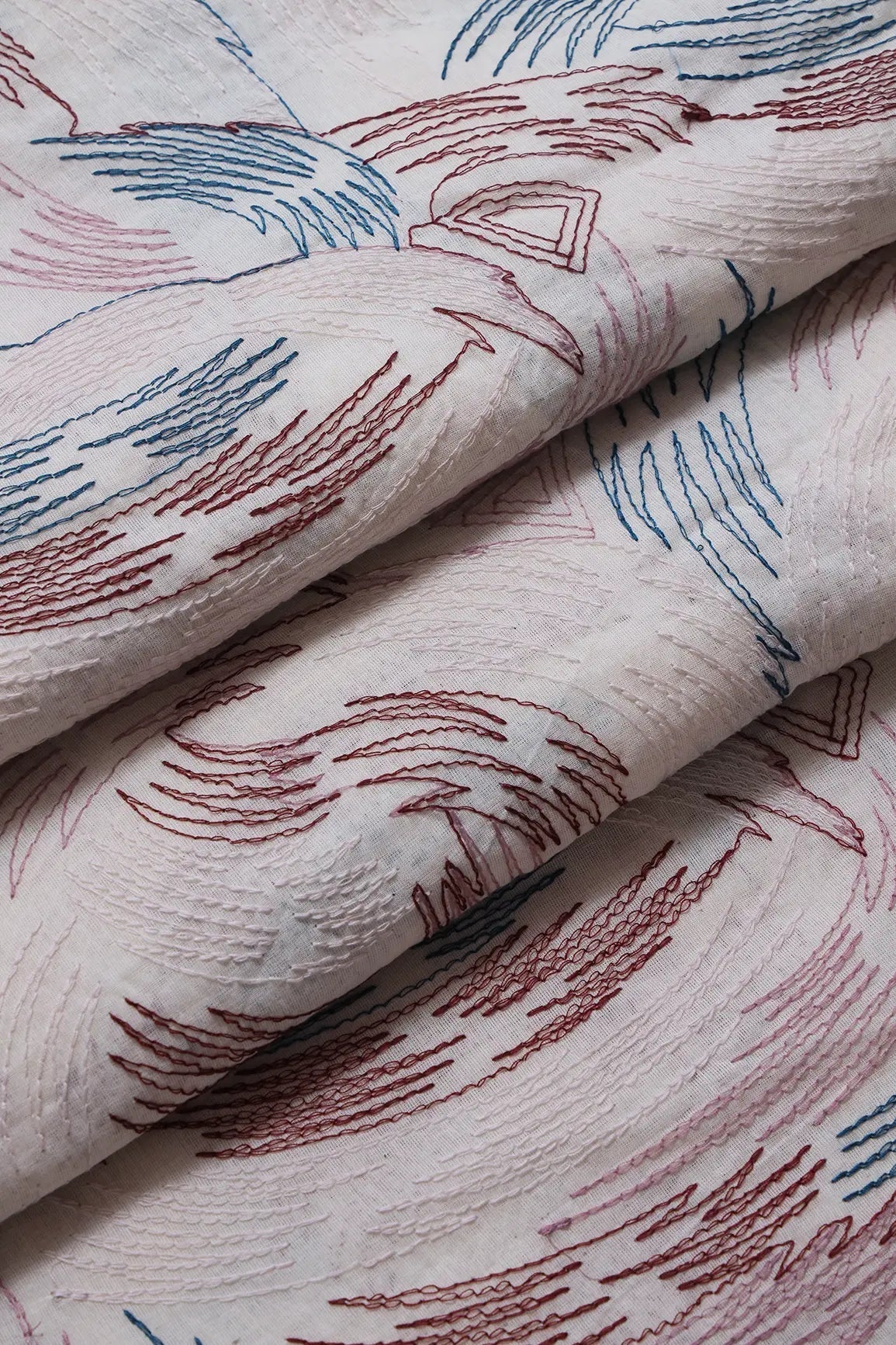 Multi Thread Abstract Embroidery Work On Off White Organic Cotton Fabric
