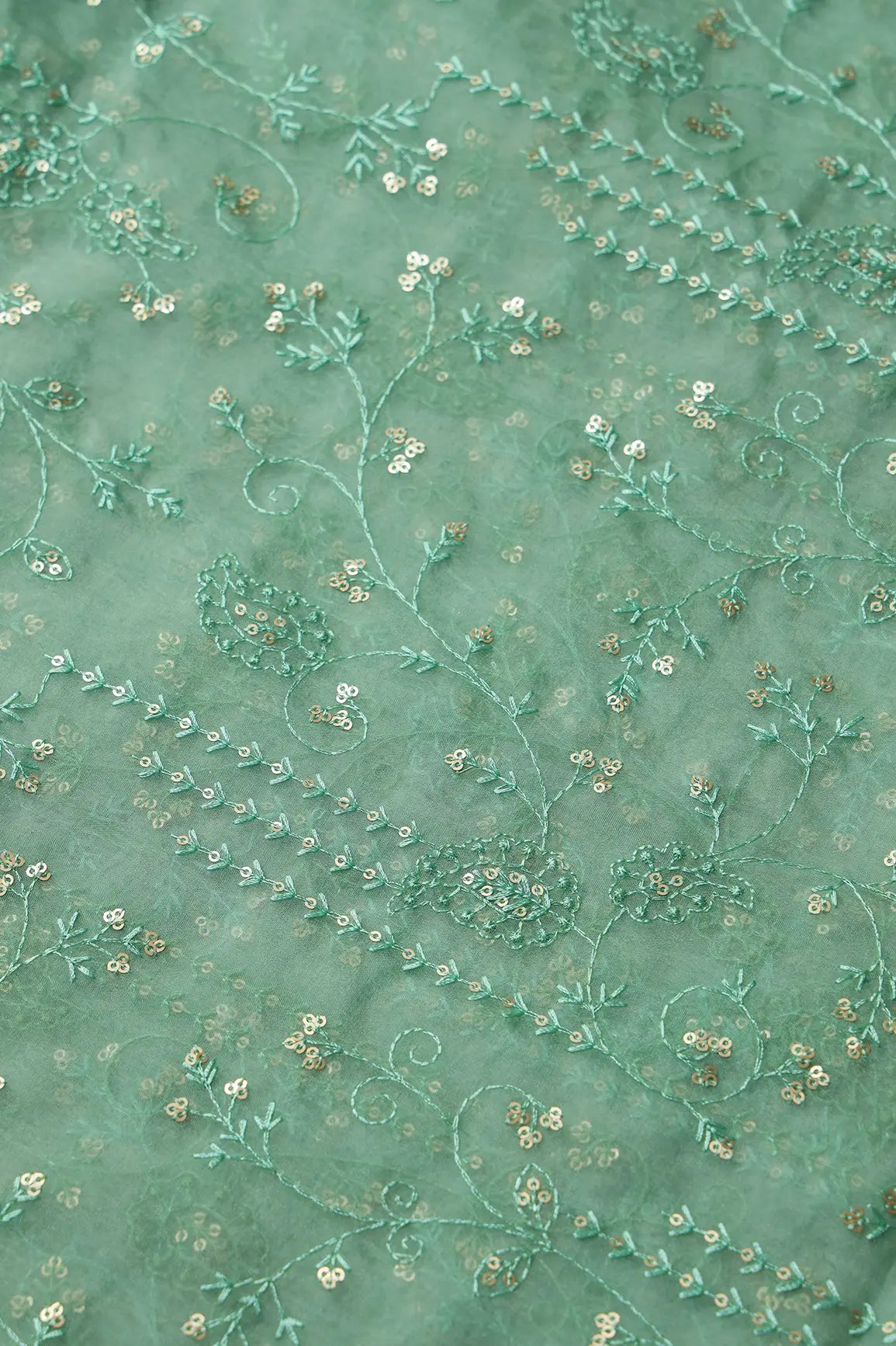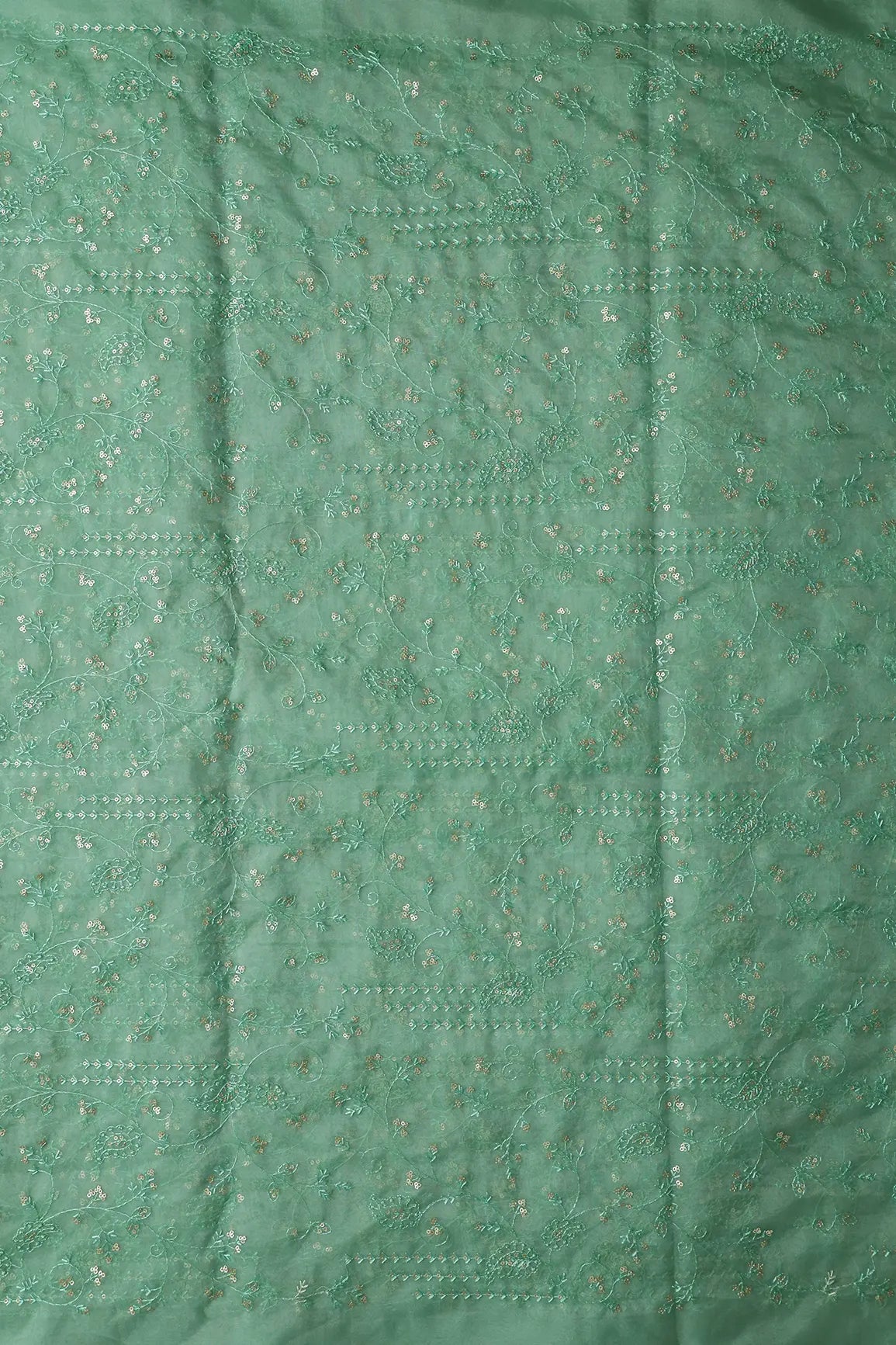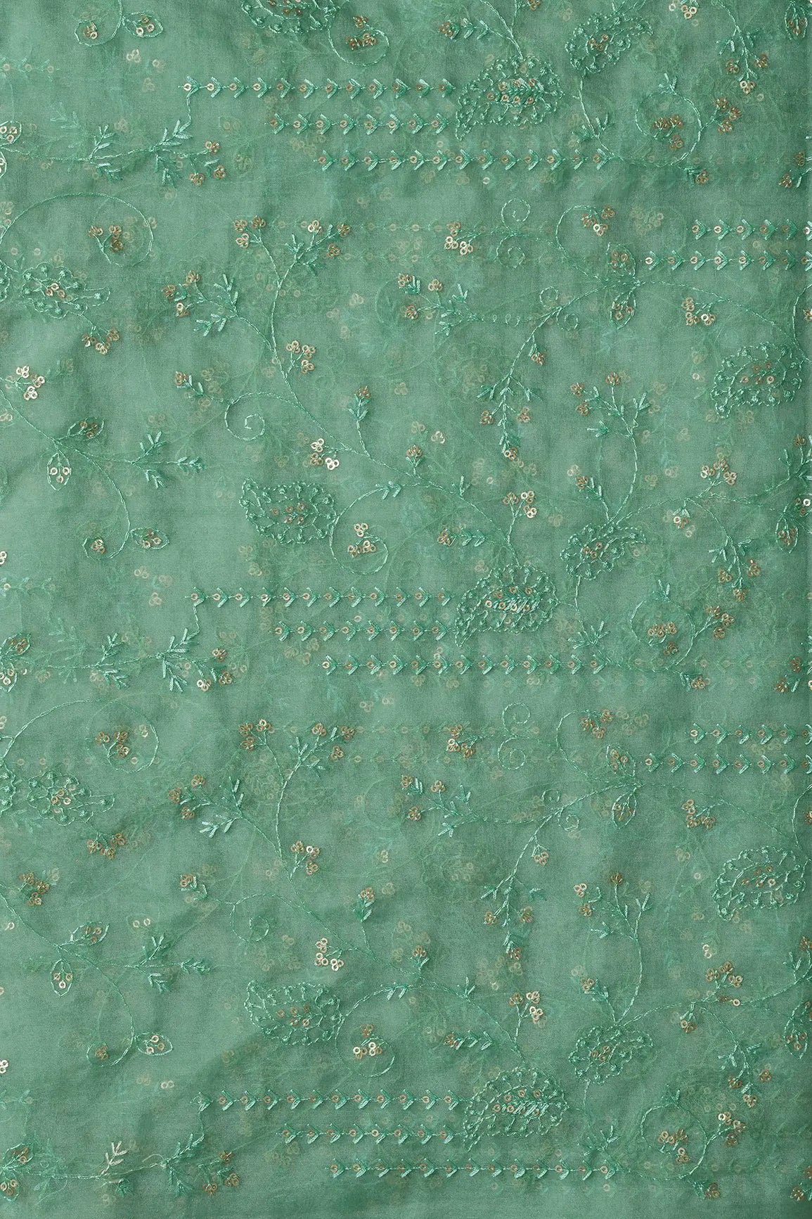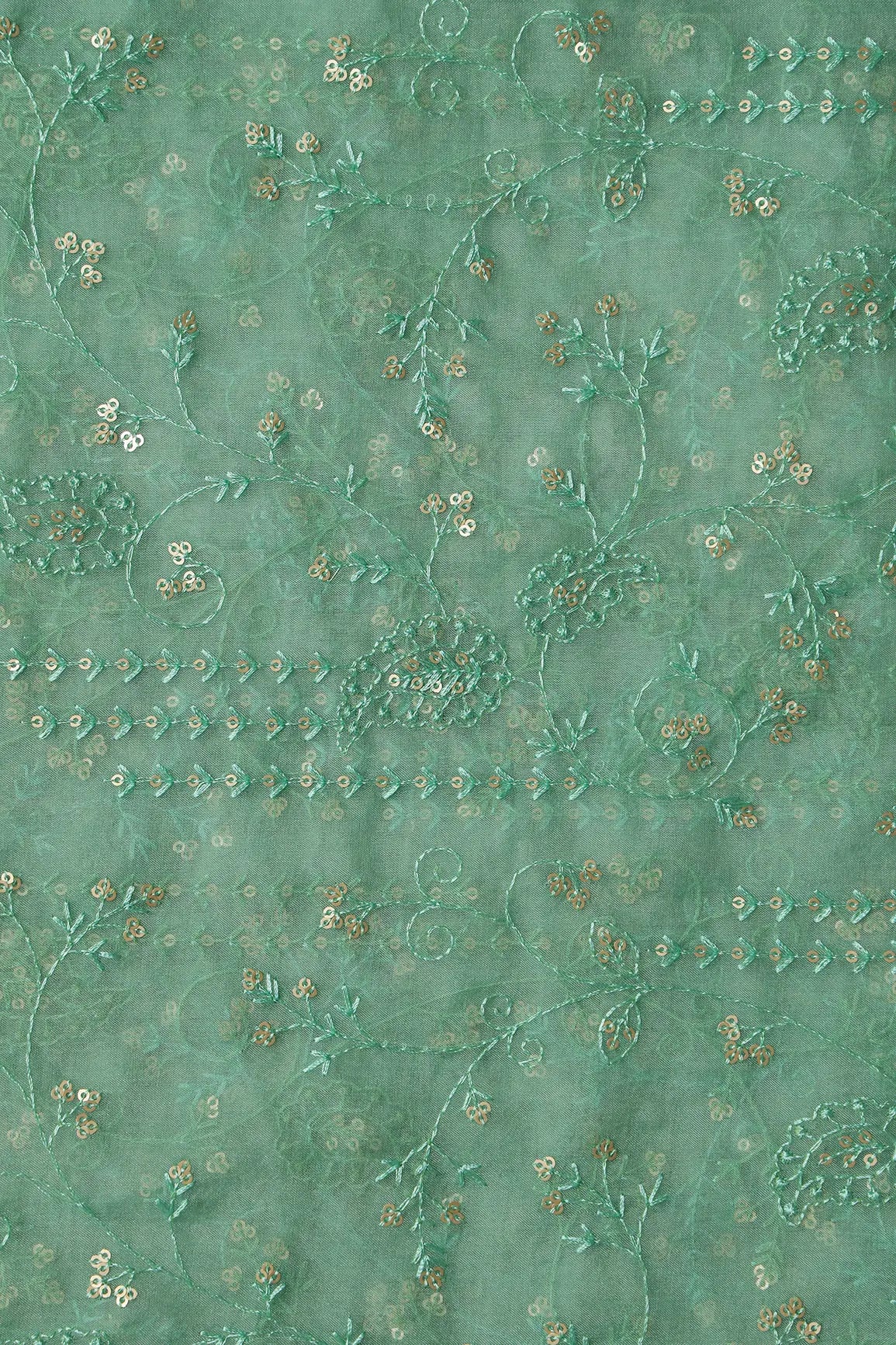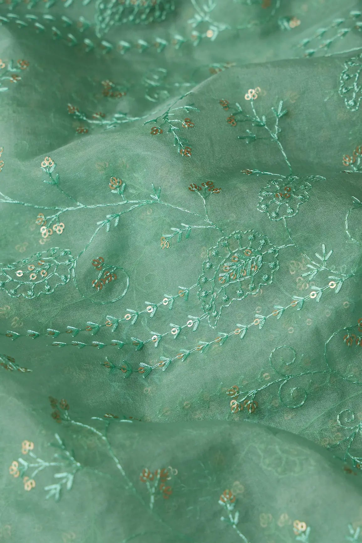 Olive Thread With Sequins Floral Embroidery On Olive Organza Fabric