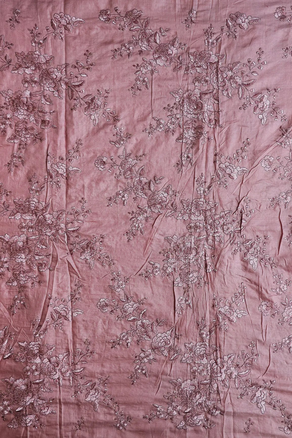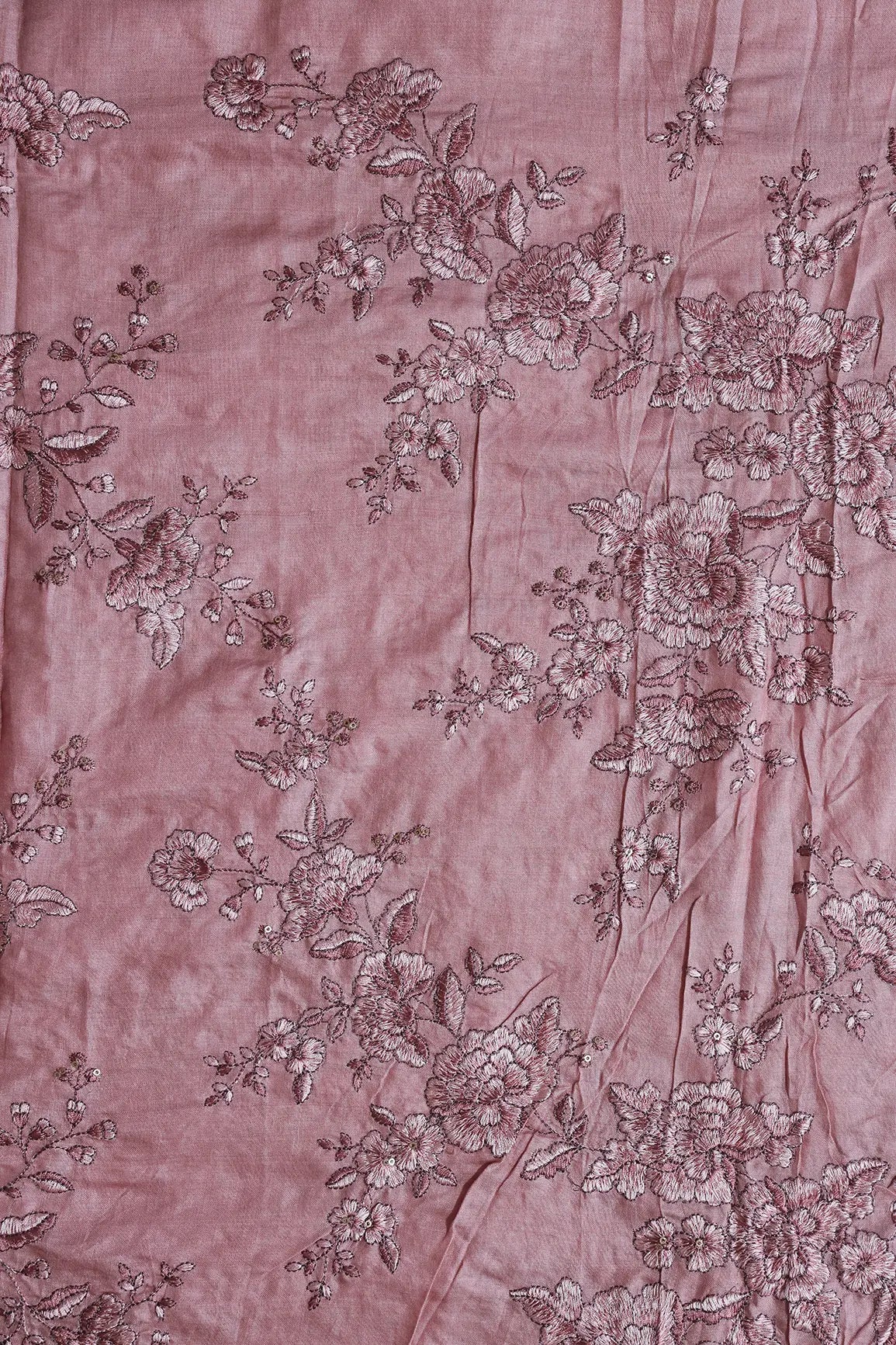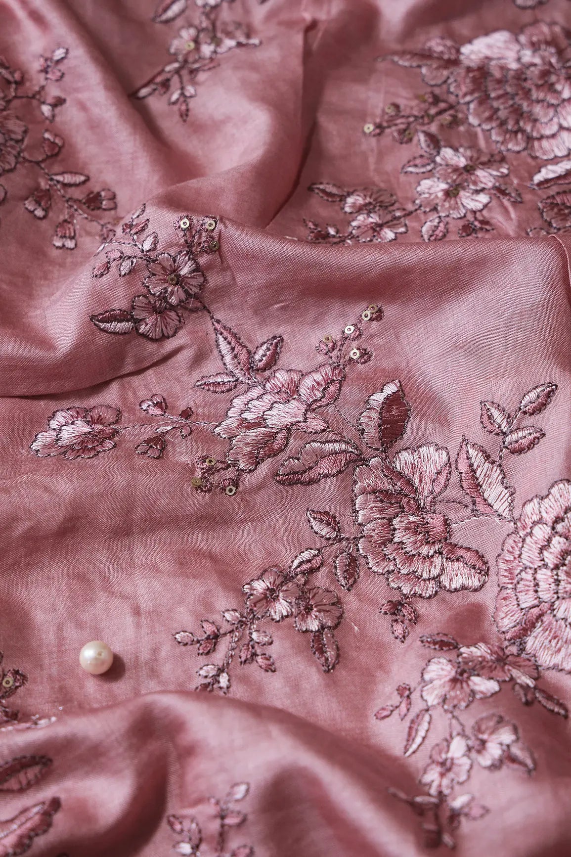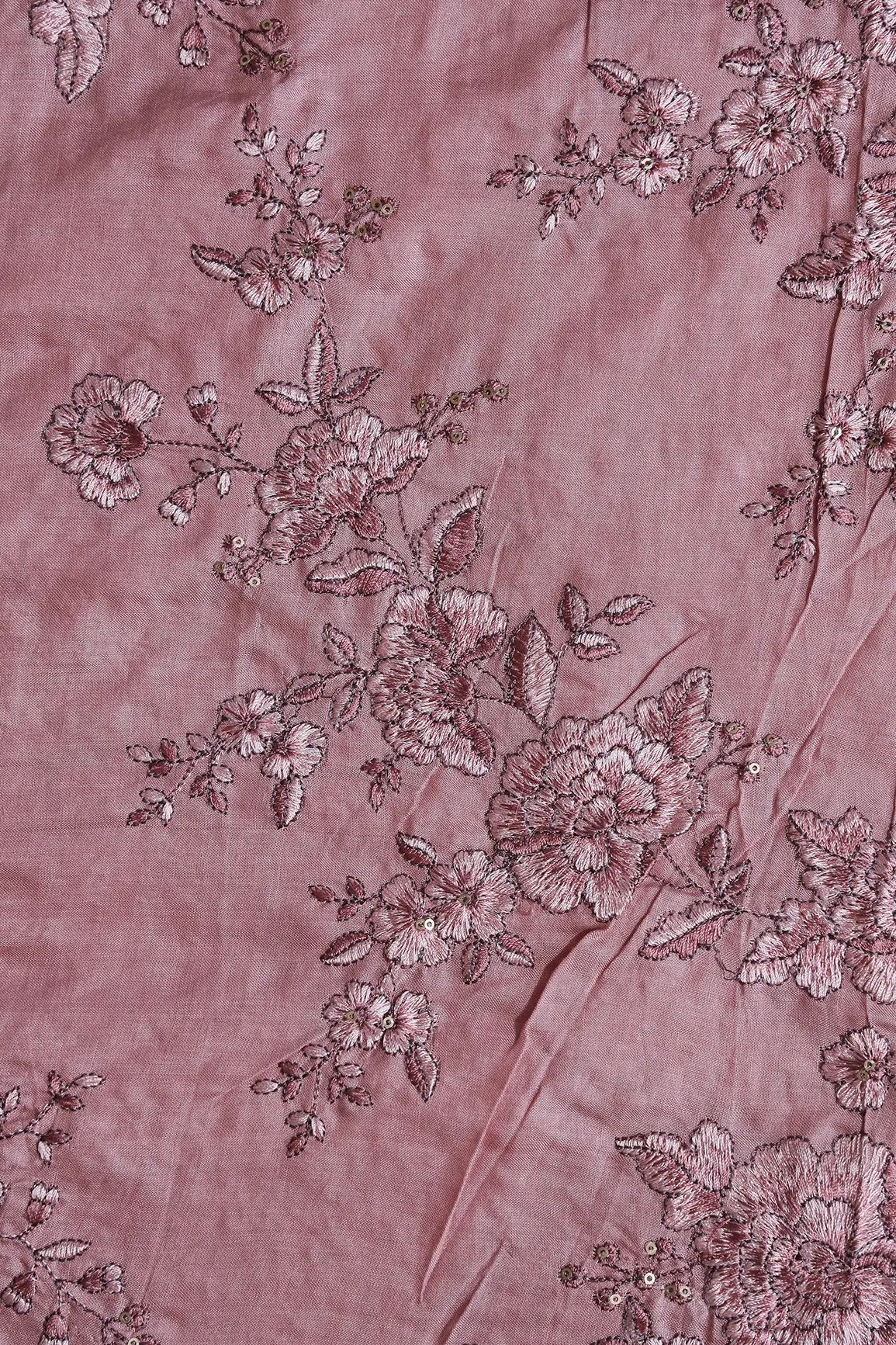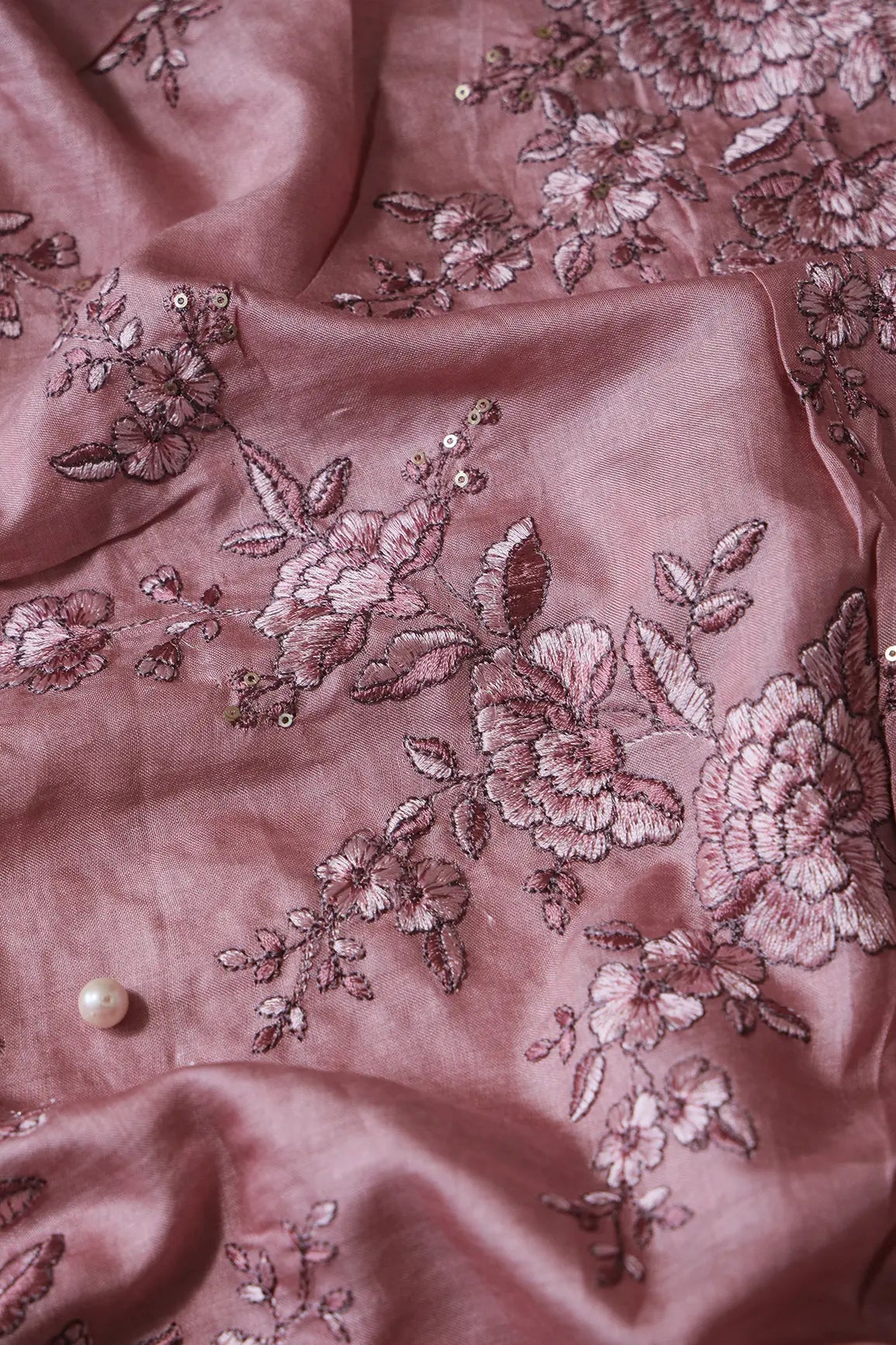 Mauve Color Thread With Gold Sequins Floral Embroidery On Mauve Pure Bamboo Silk Fabric