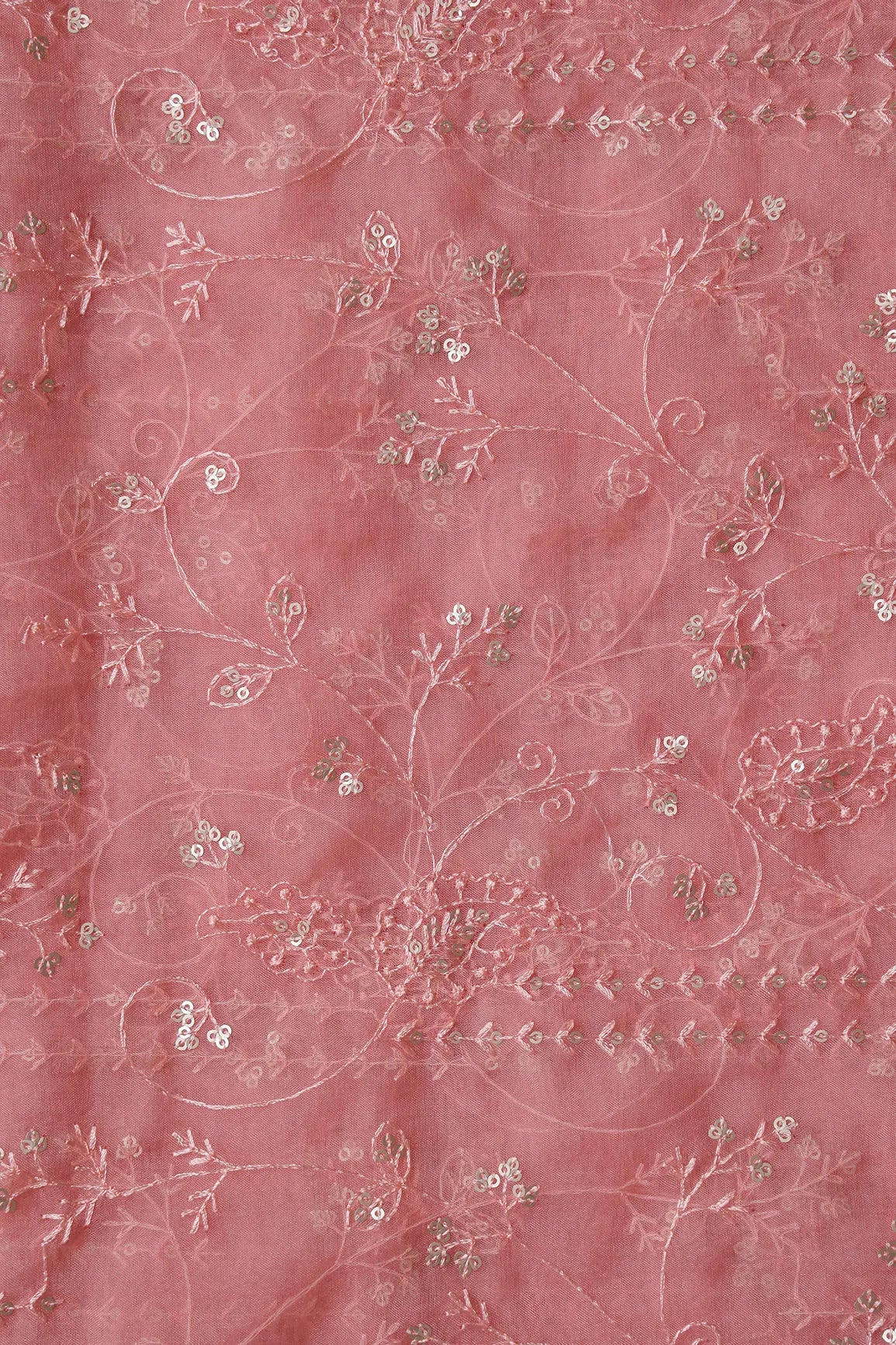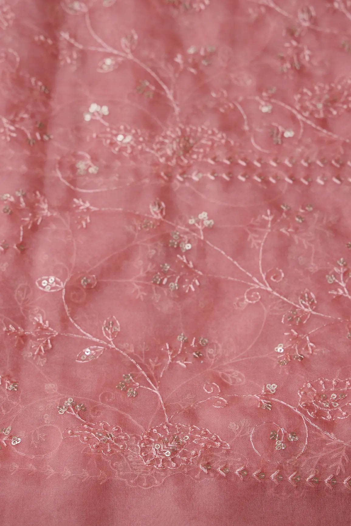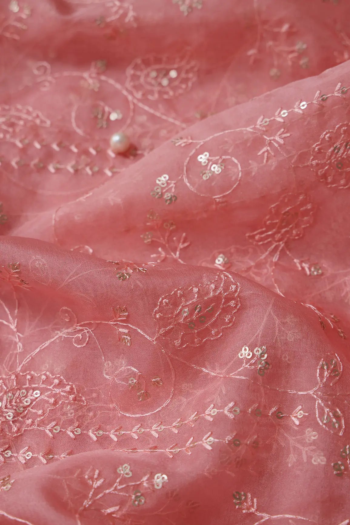 Pink Thread With Sequins Floral Embroidery On Gajri Pink Organza Fabric