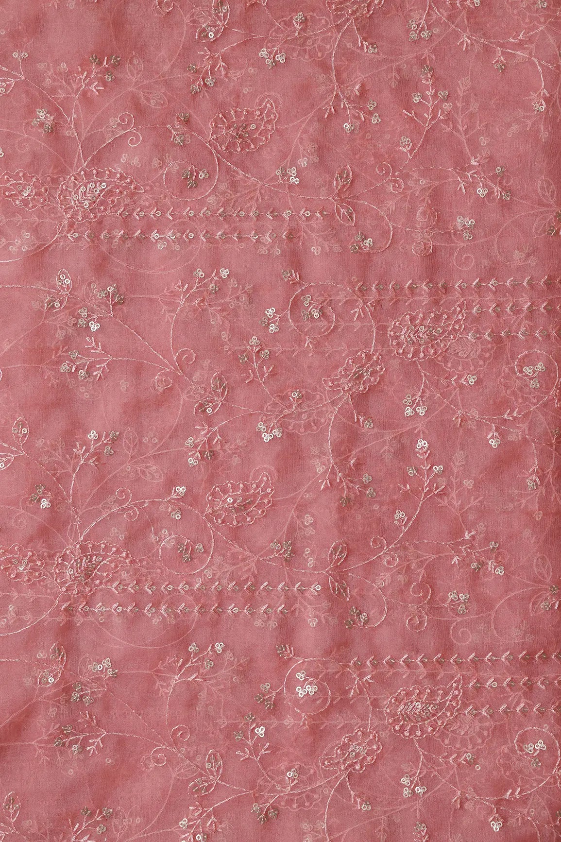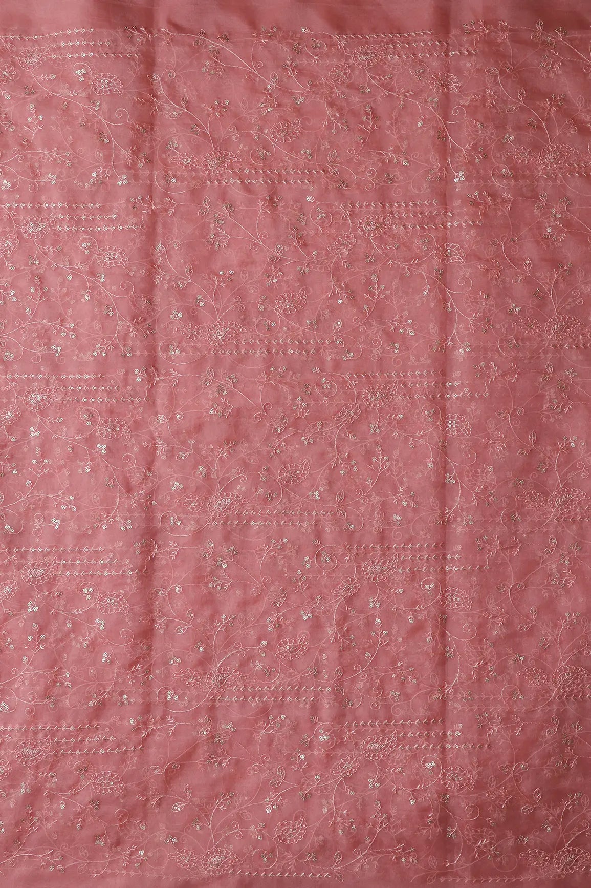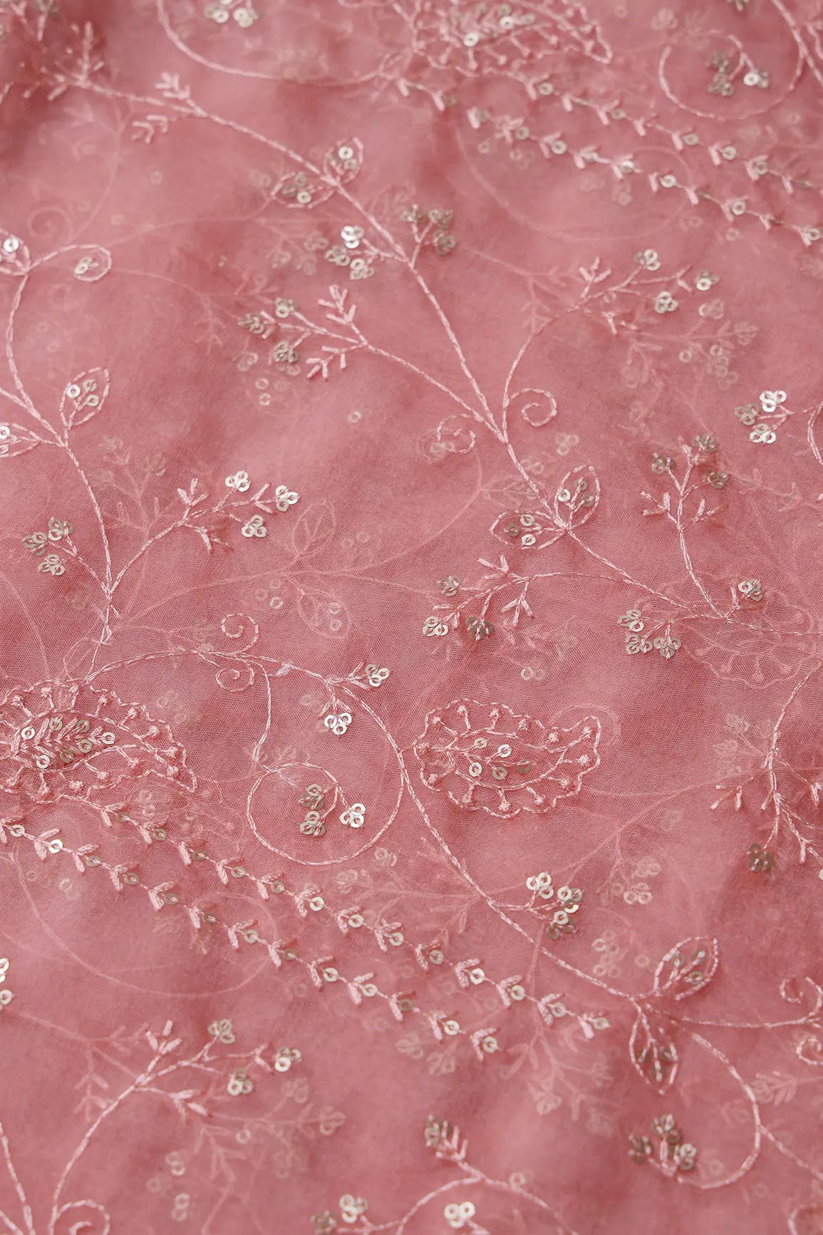 Pink Thread With Sequins Floral Embroidery On Gajri Pink Organza Fabric