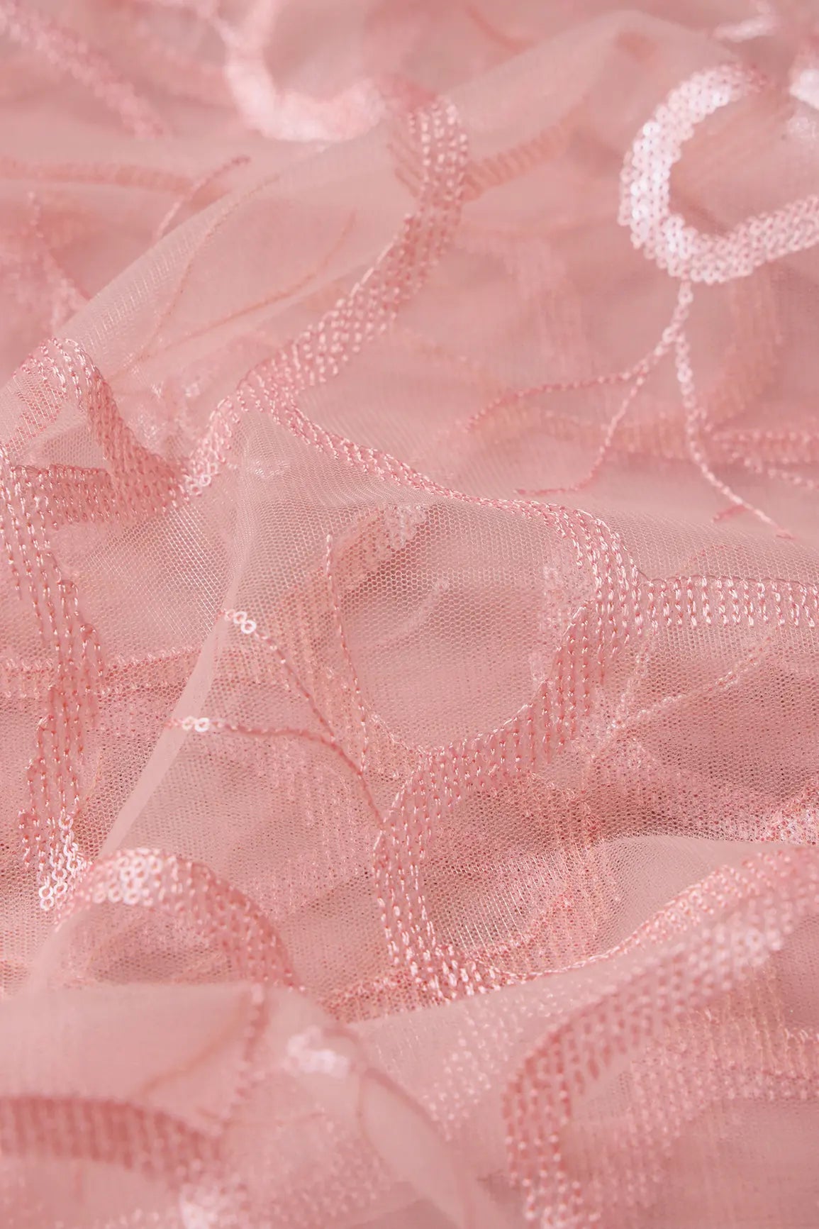 Pink Thread With Water Sequins Abstract Embroidery Work On Baby Pink Soft Net Fabric