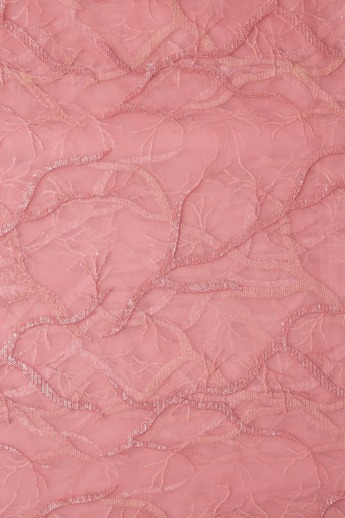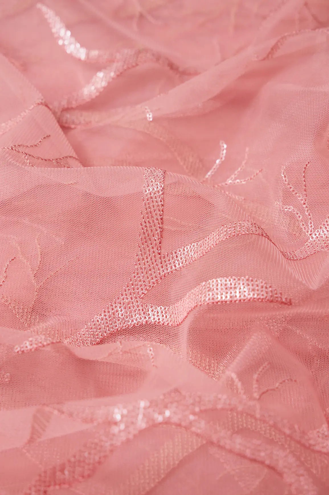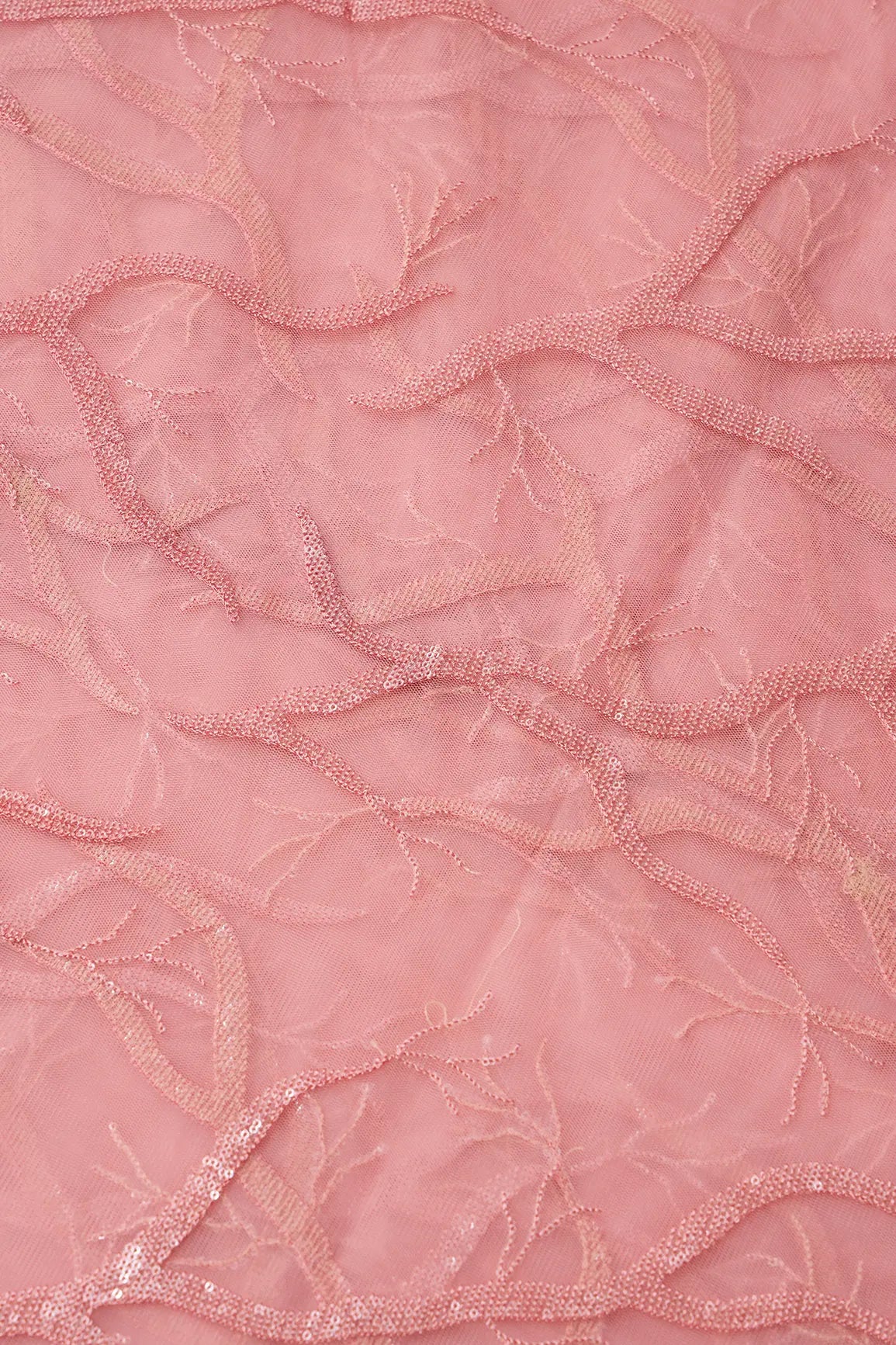 Pink Thread With Water Sequins Abstract Embroidery Work On Pink Soft Net Fabric