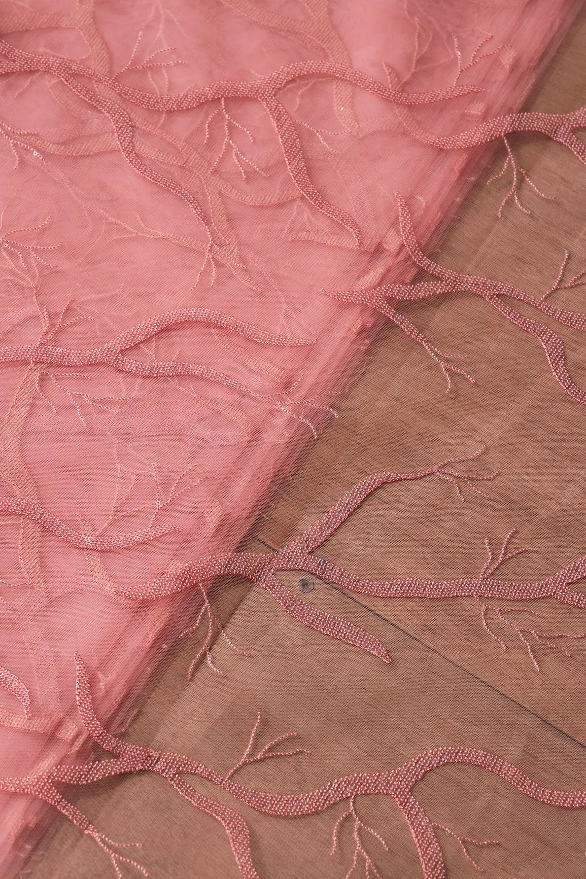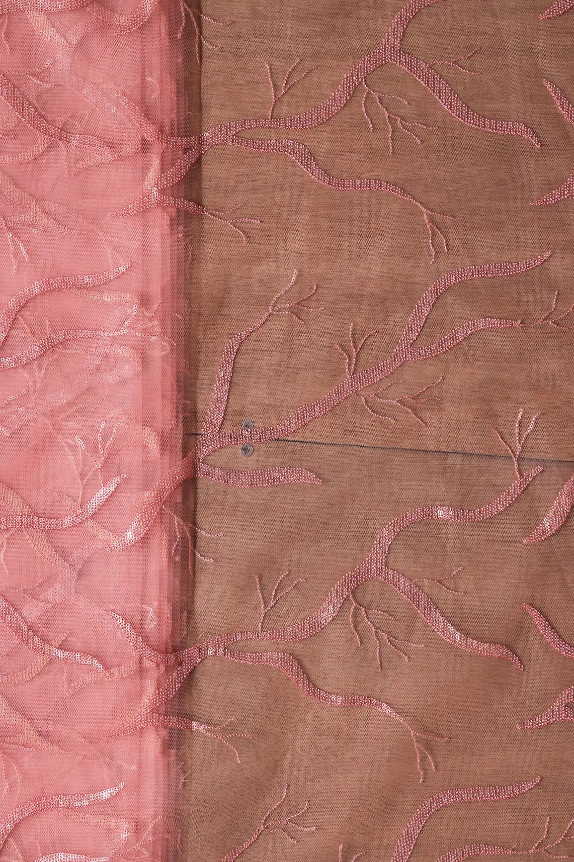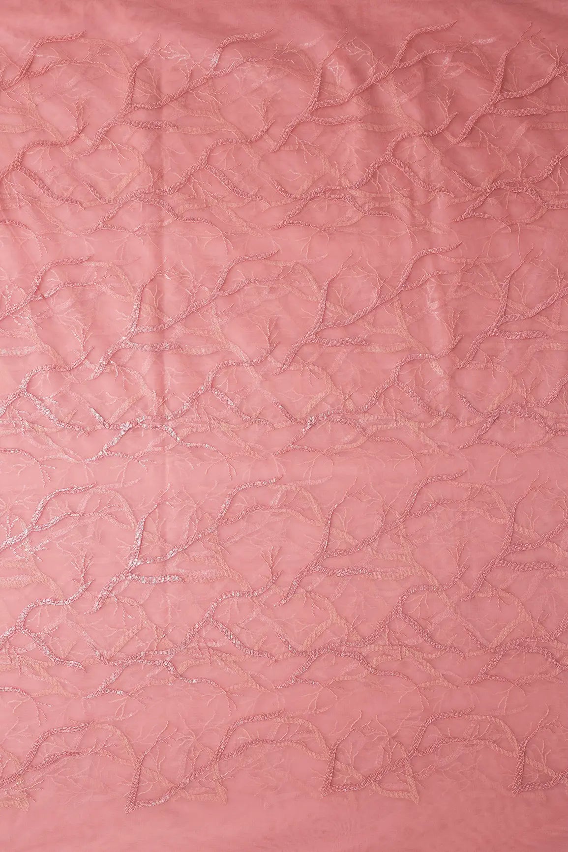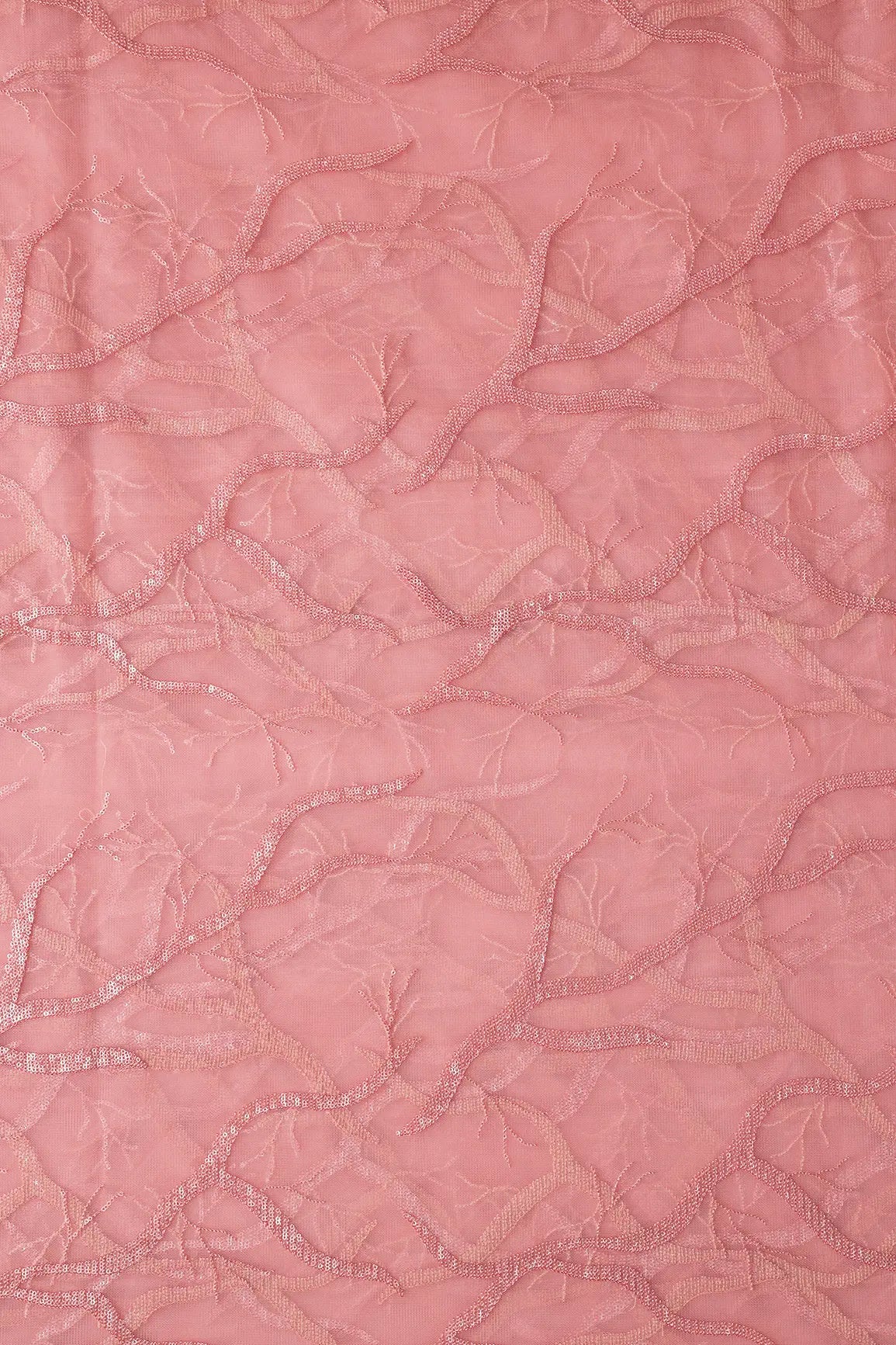 Pink Thread With Water Sequins Abstract Embroidery Work On Pink Soft Net Fabric