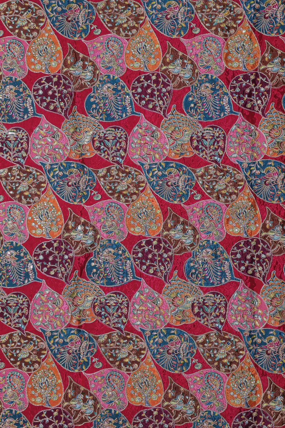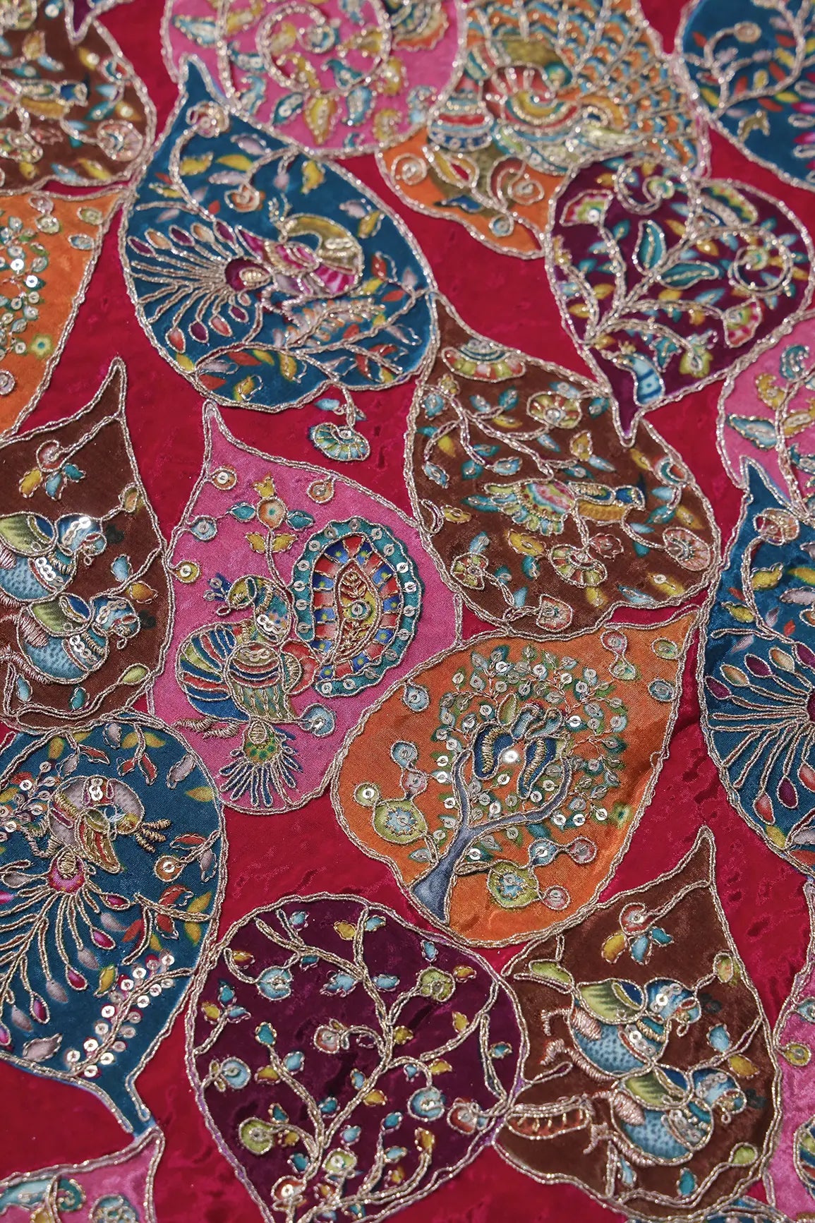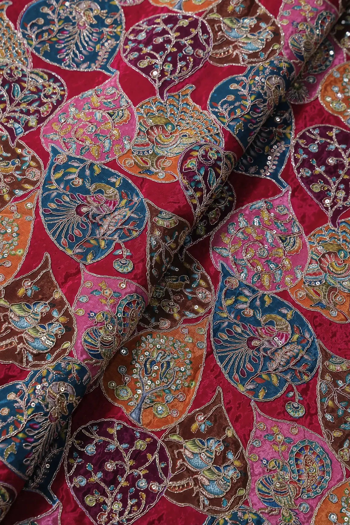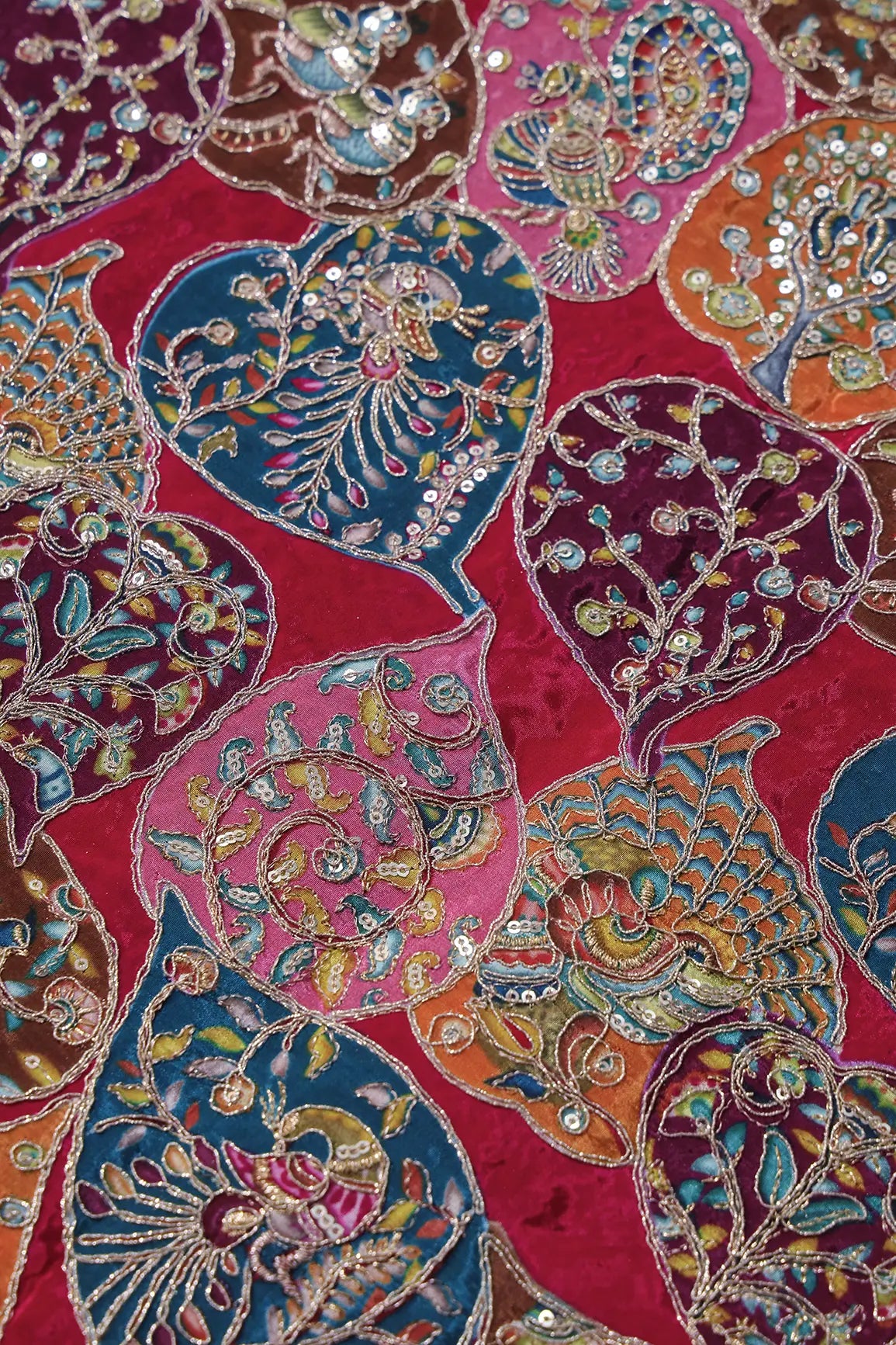 Positional Print with Zari And Sequins Heavy Embroidery Work On Fuchsia Pure Crepe Fabric