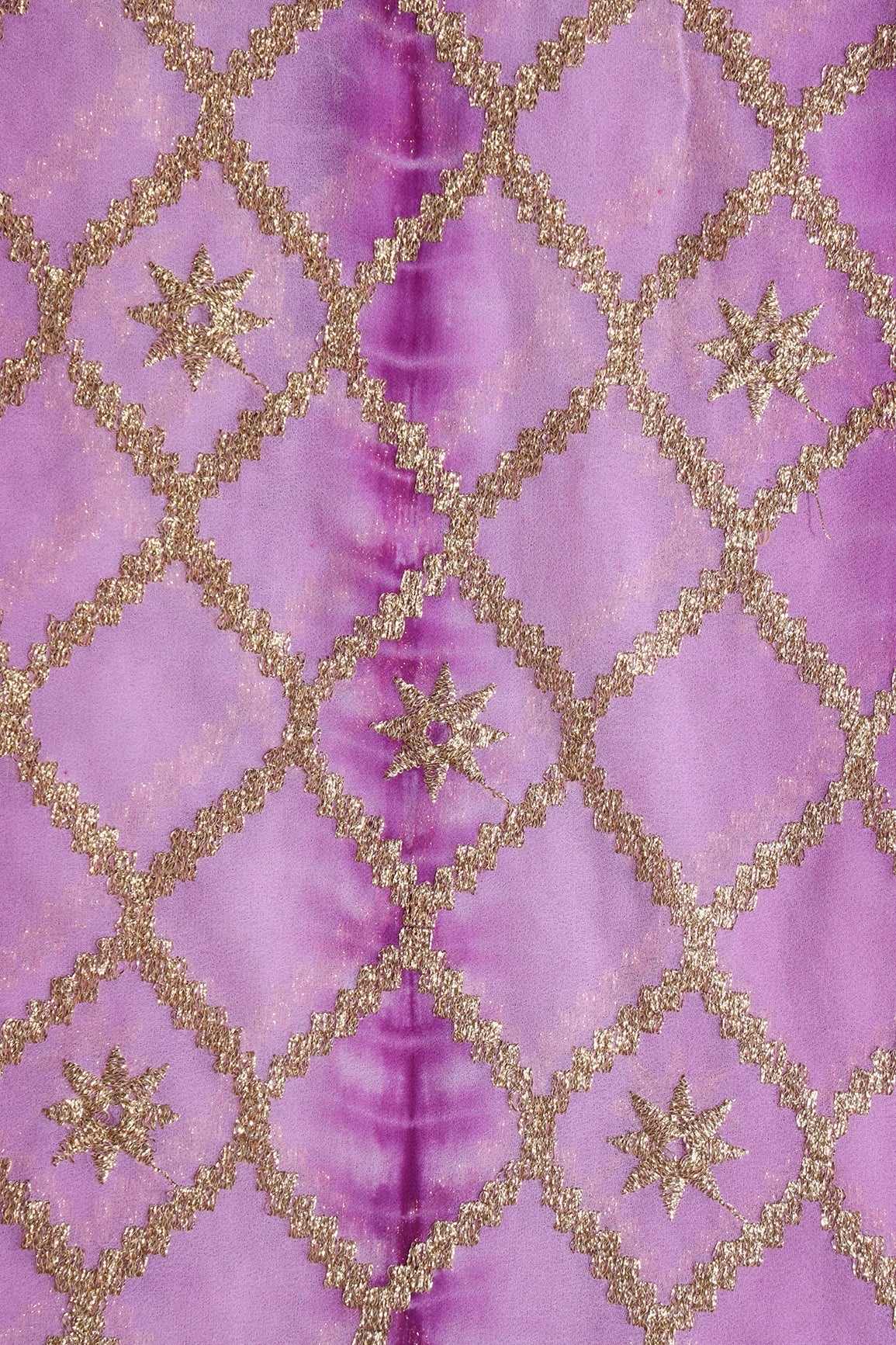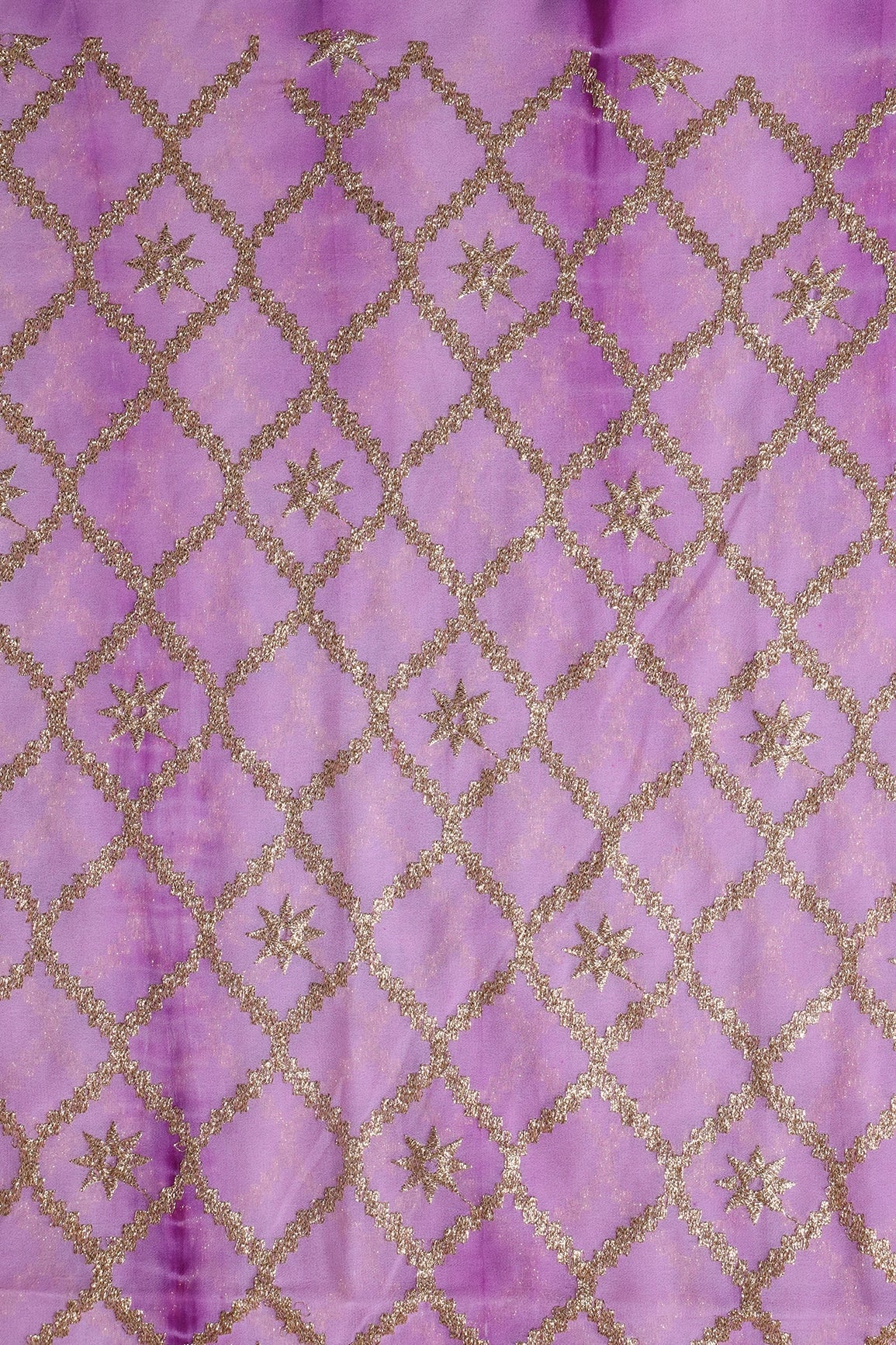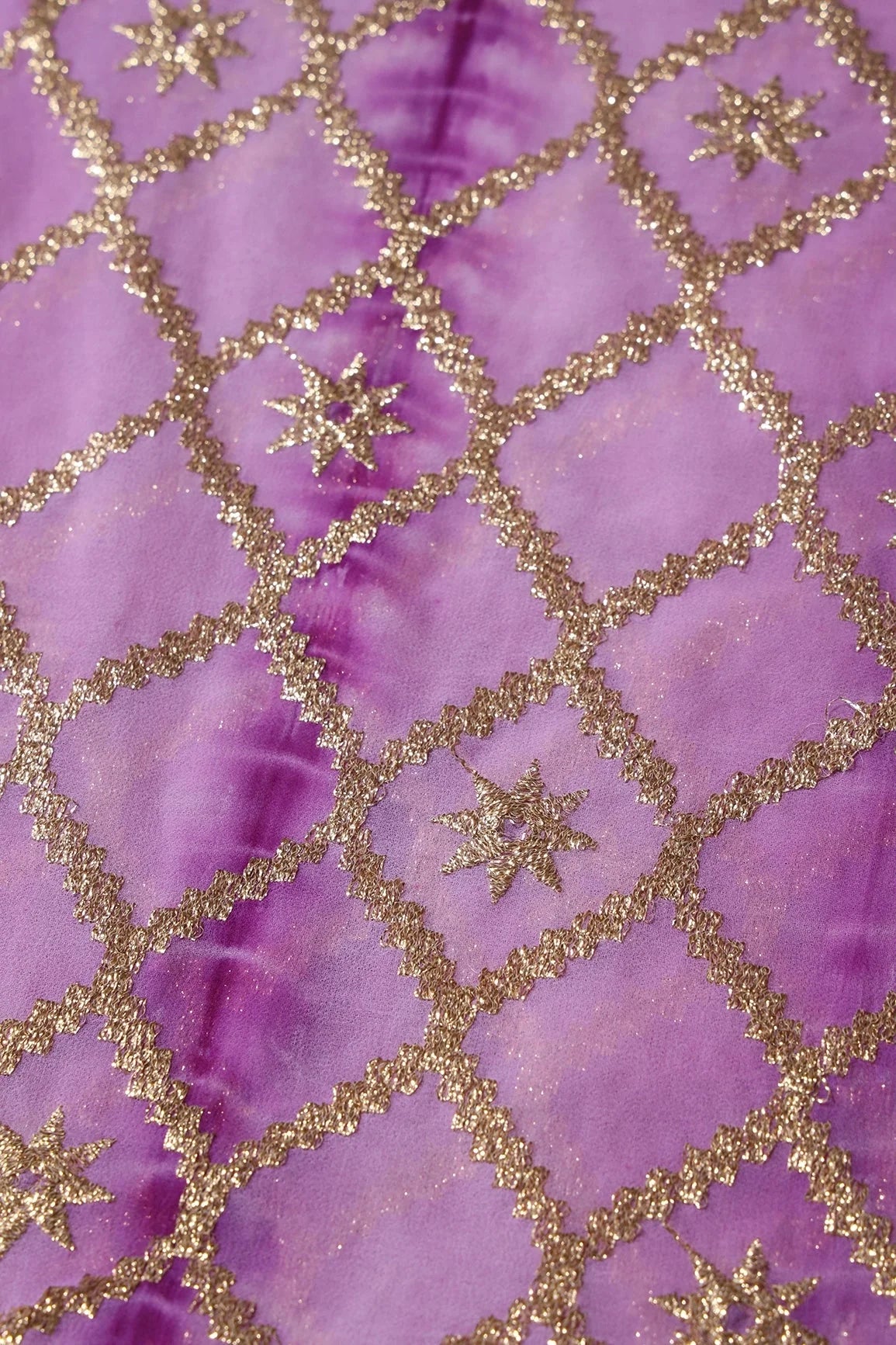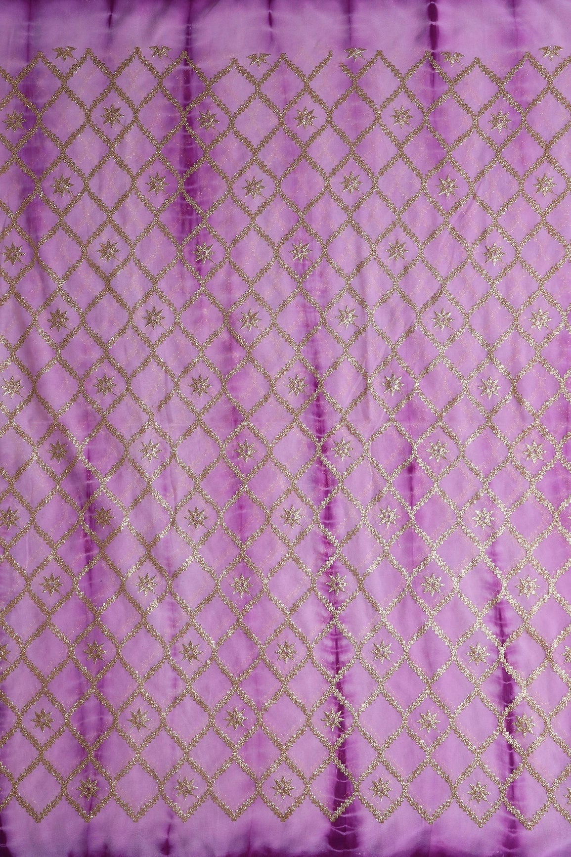 Purple And Pink Tie & Dye Gold Zari Ogee Embroidery Work Georgette Fabric