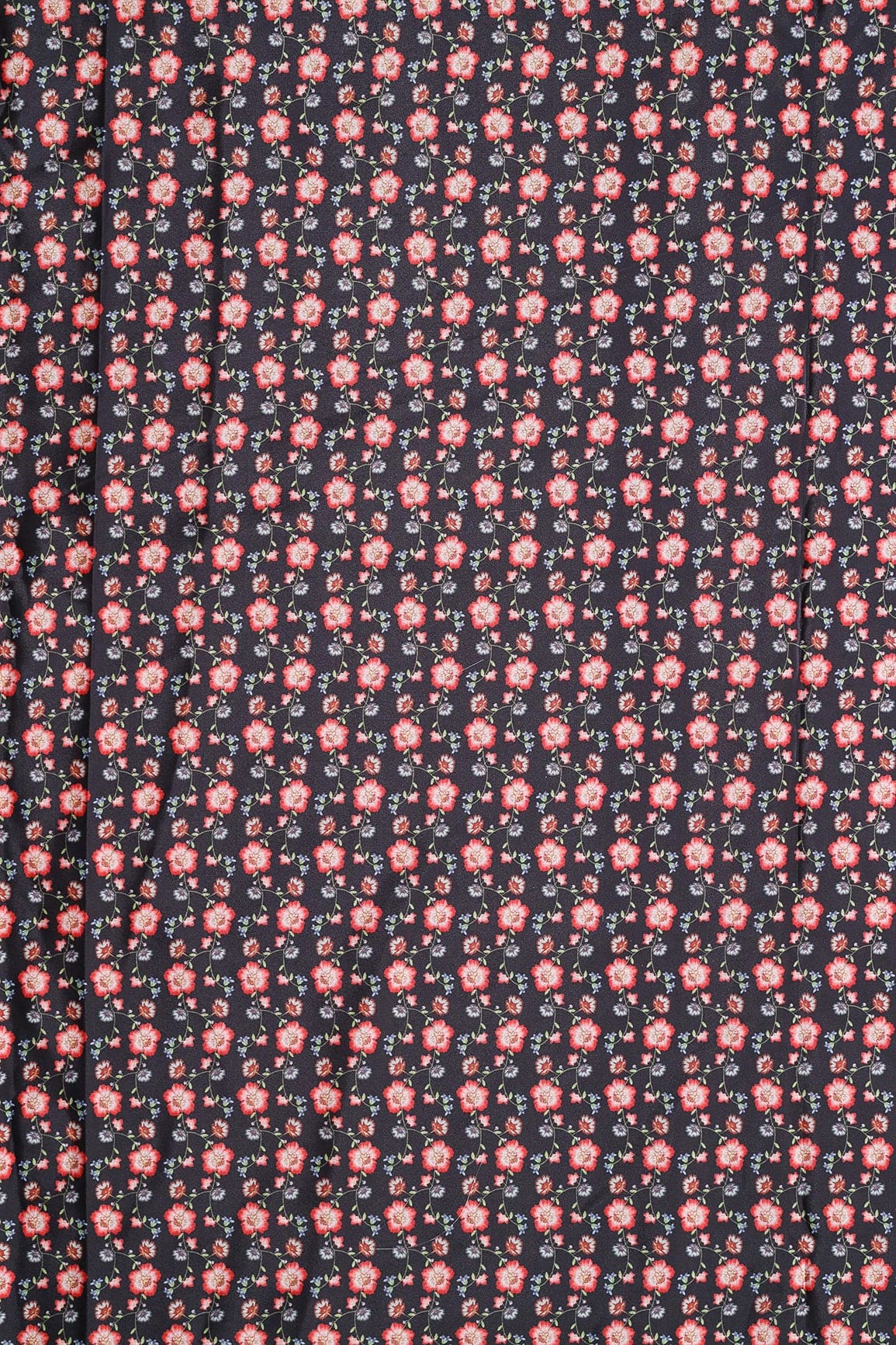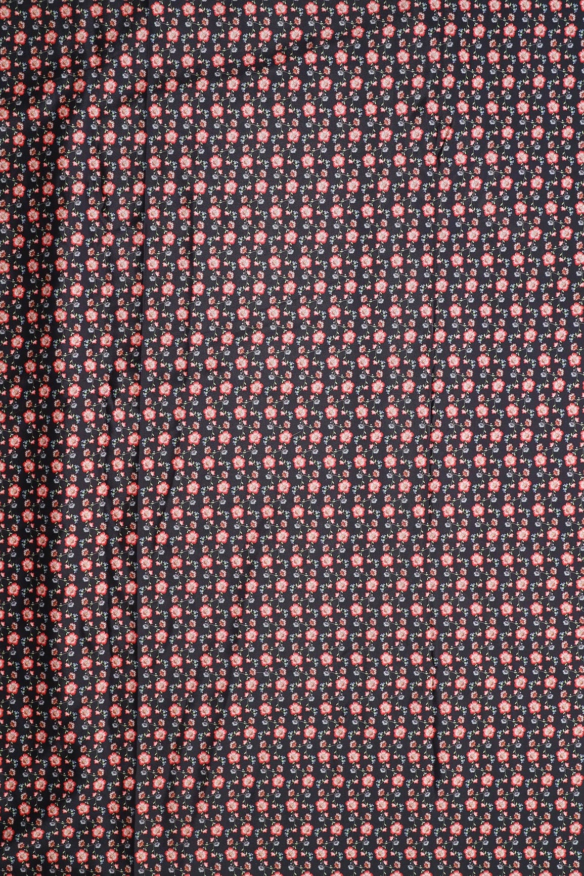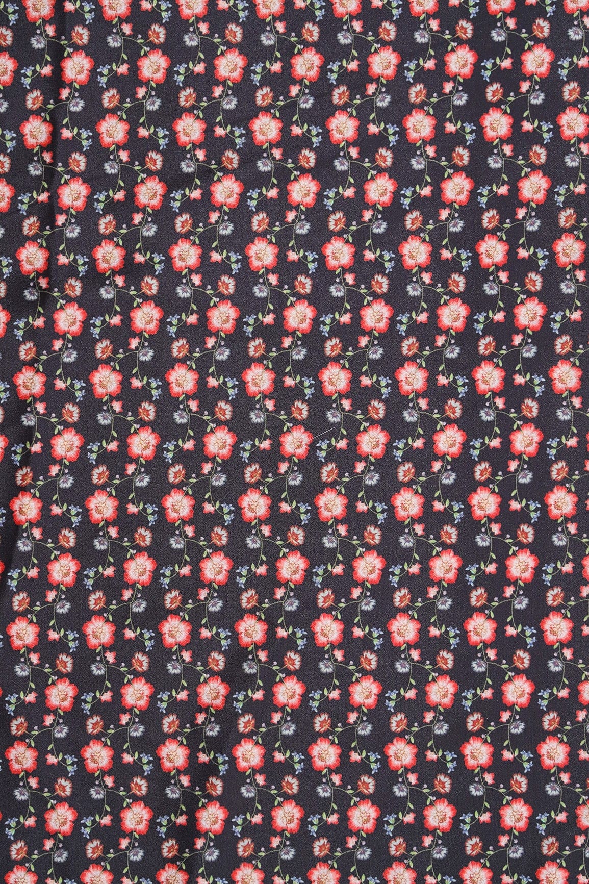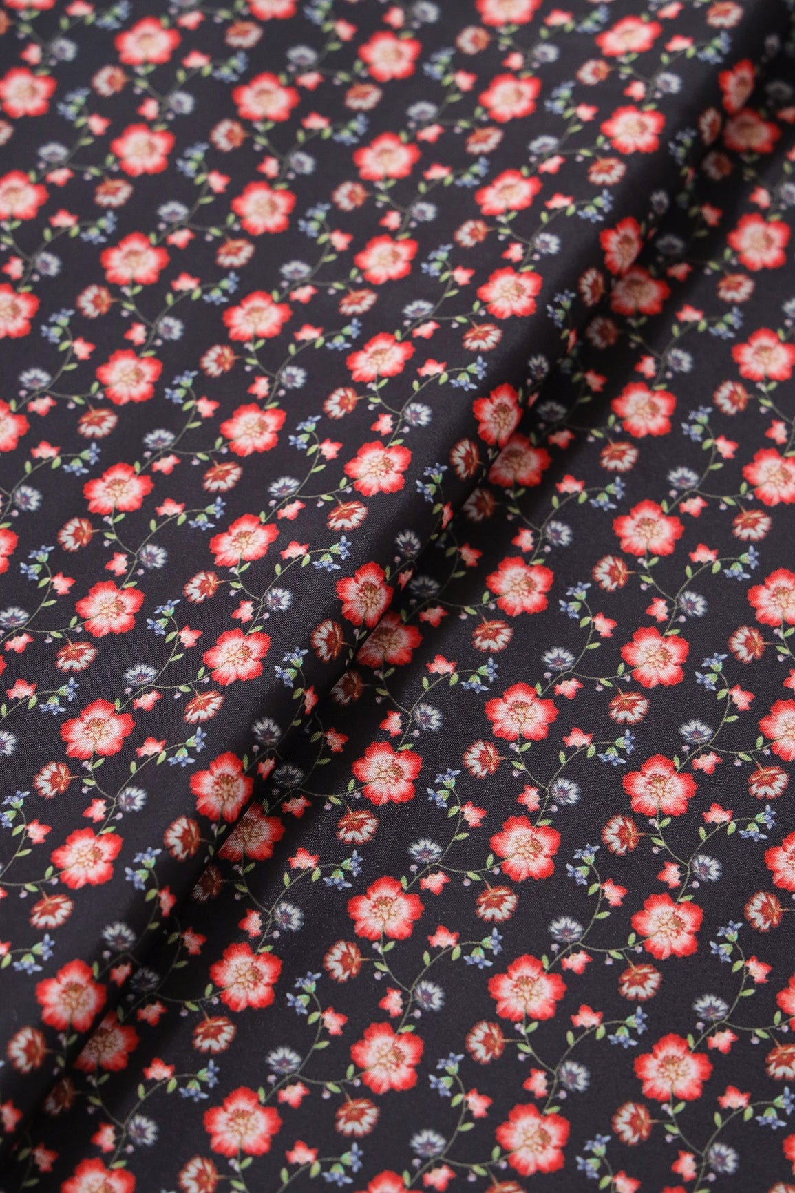 Red Small Floral Pattern Digital Print On Black French Crepe Fabric