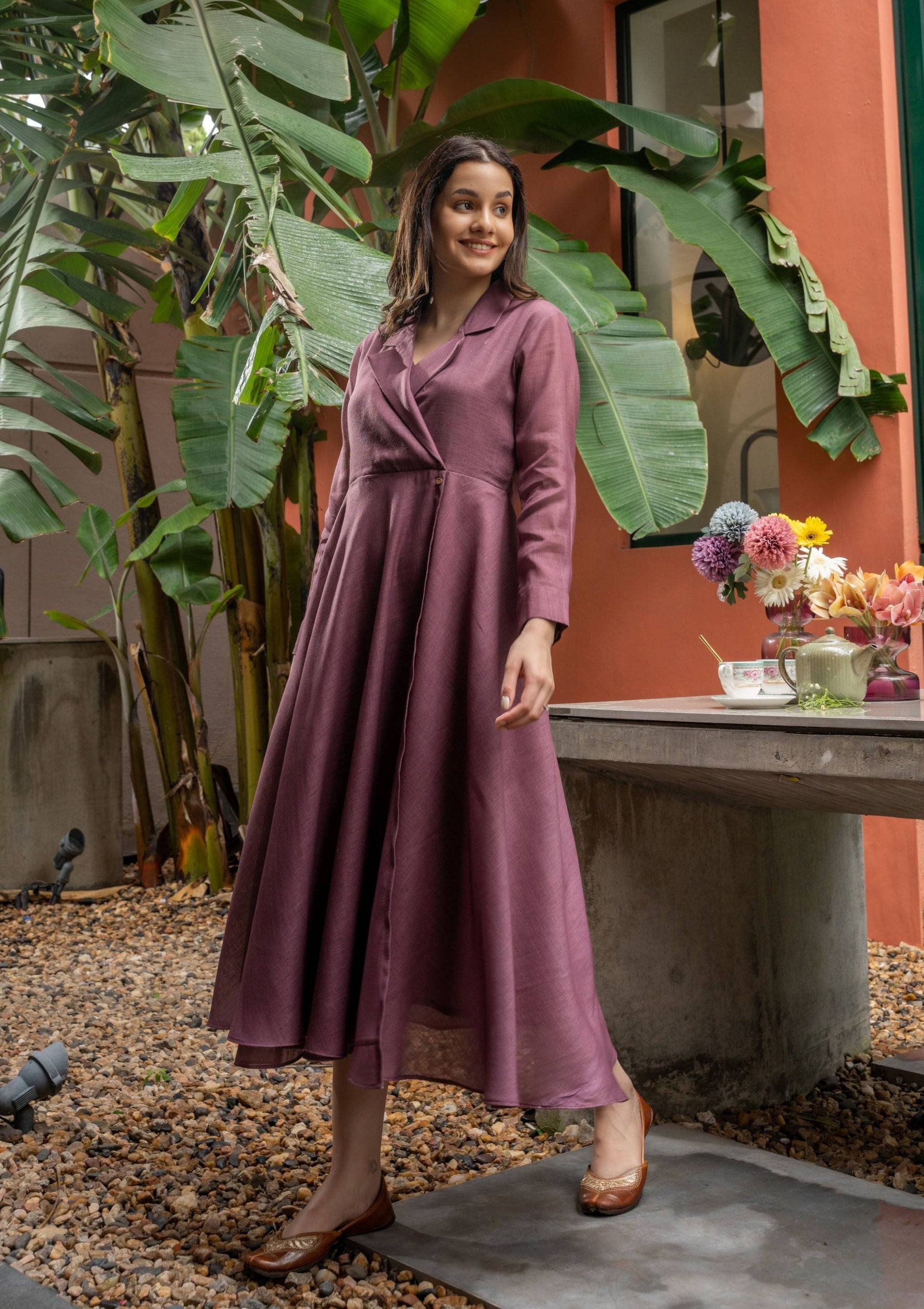 Our Scarlet Dusty Rose Linen Dress is the perfect pick-me-up for your wardrobe! It has everything you need for a fabulously fashionable look: wooden buttons, full sleeves, a peaked collar, and a lining. And it's perfect for any occasion - from casual to office wear 🤩! Get ready to slay that office, girl! 💃