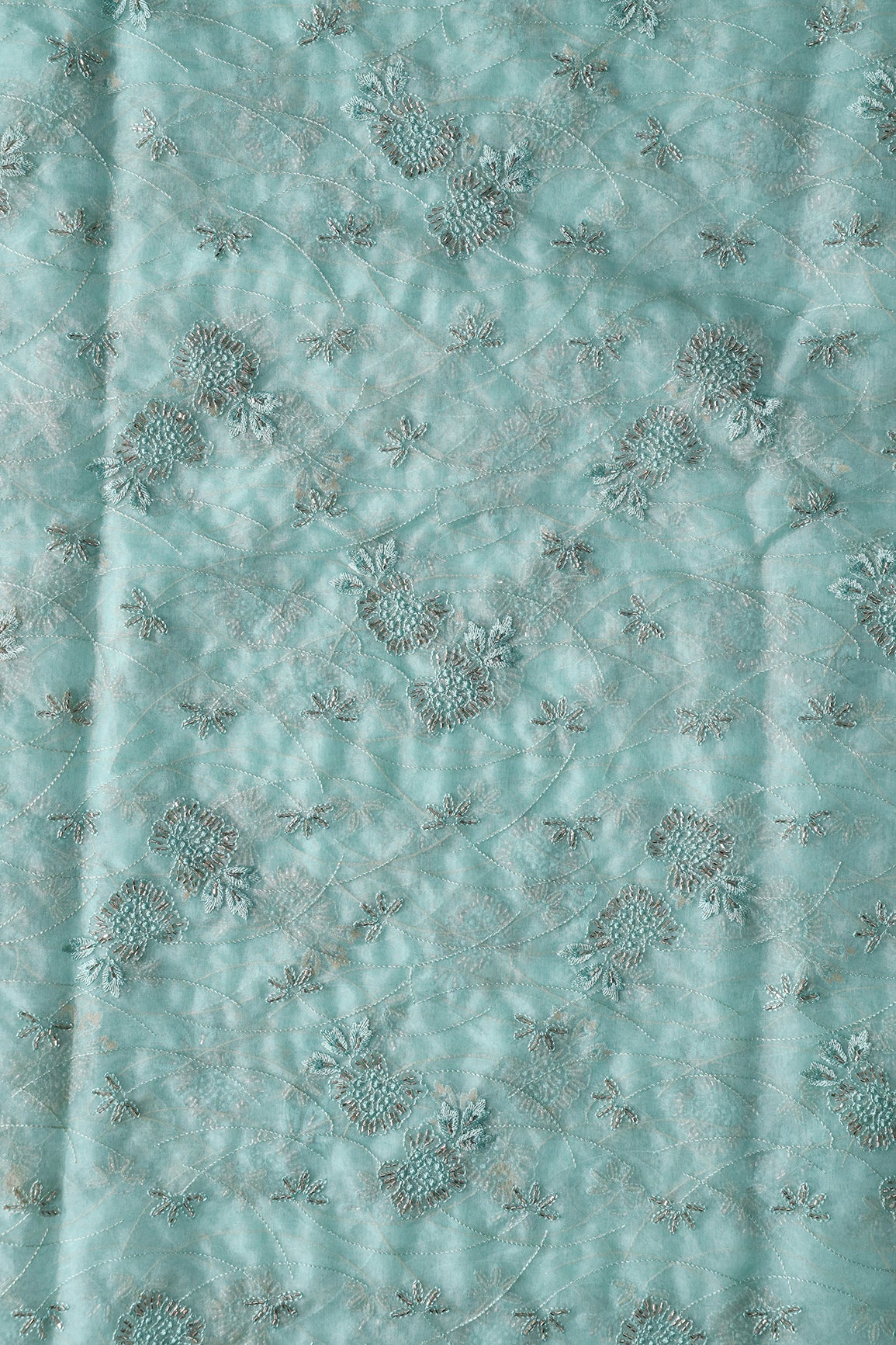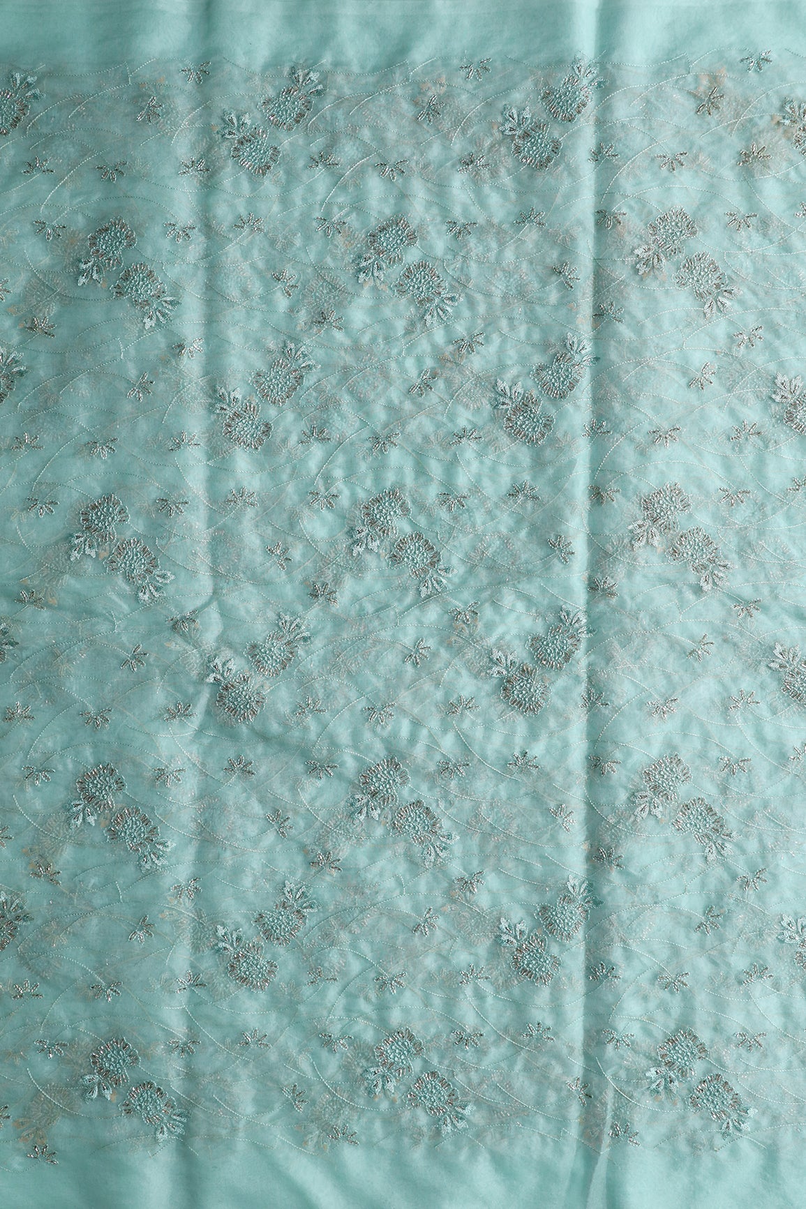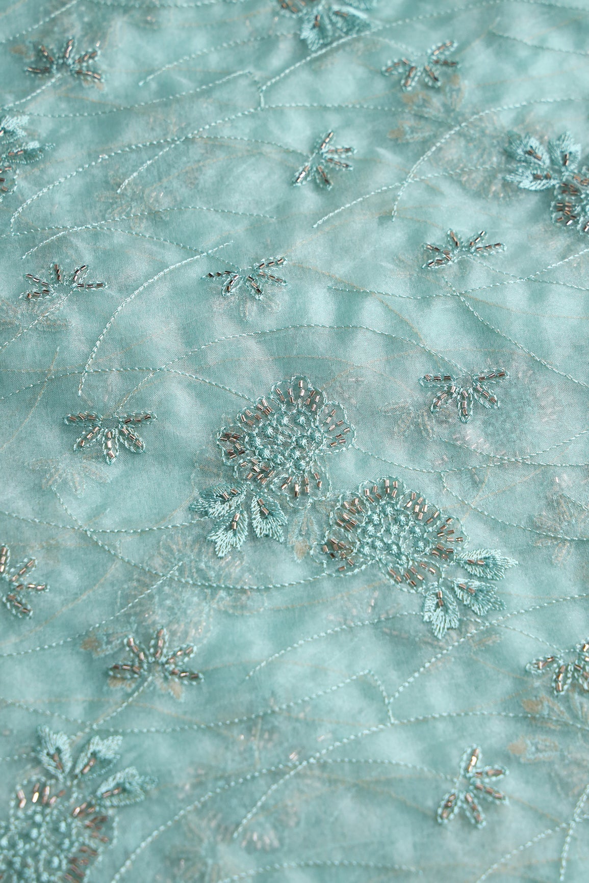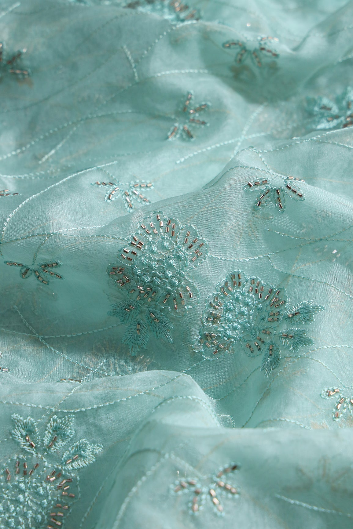Sea Green Thread With Beads Floral Embroidery On Sea Green Organza Fabric