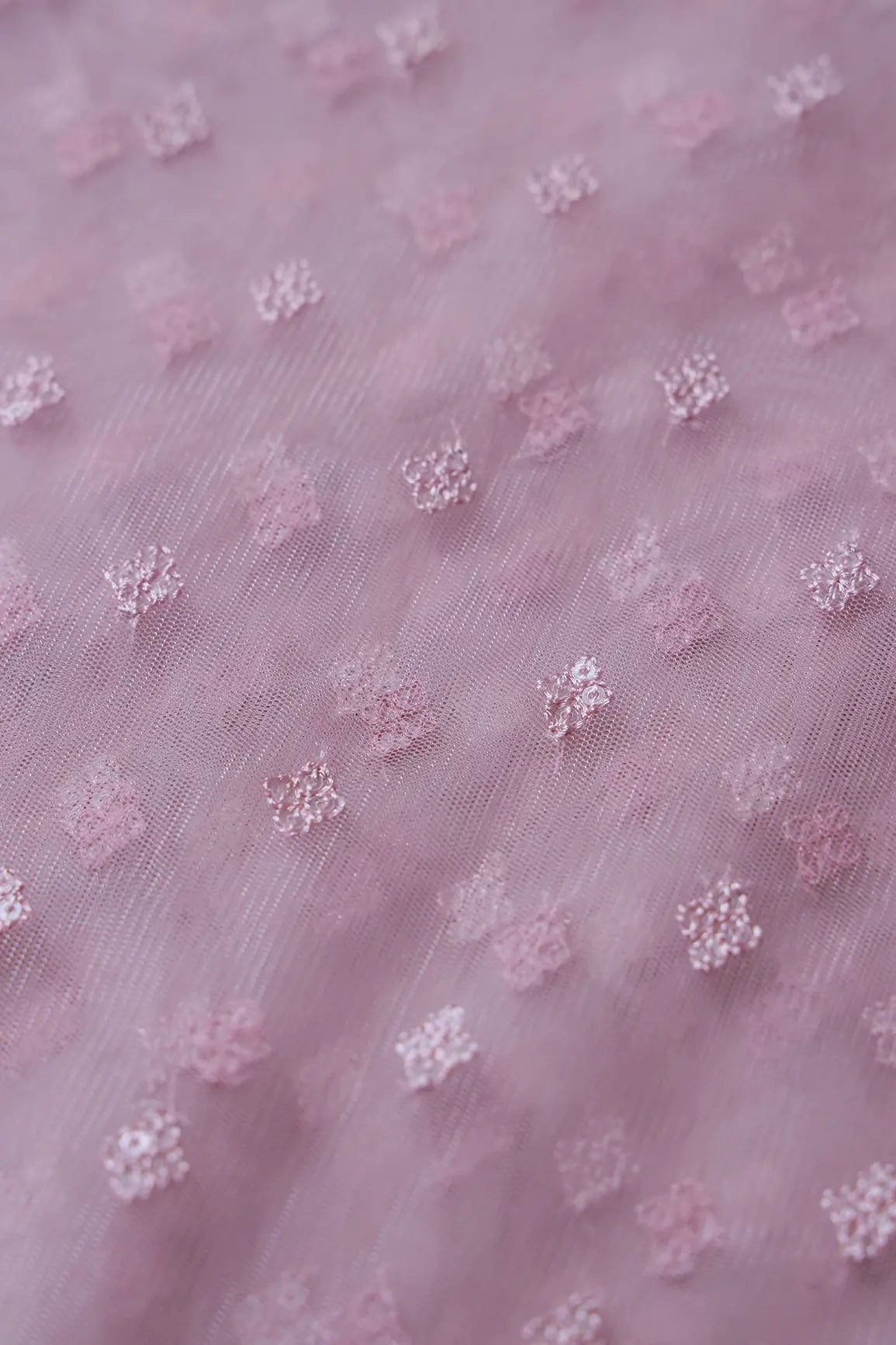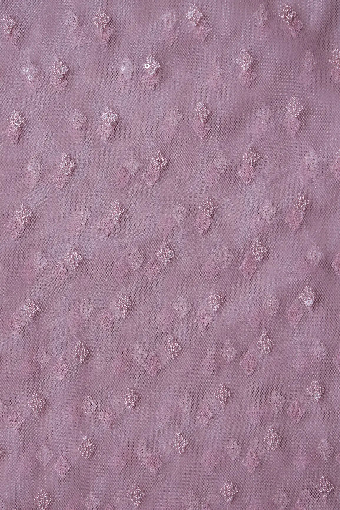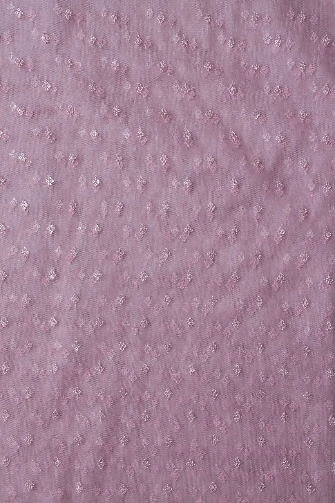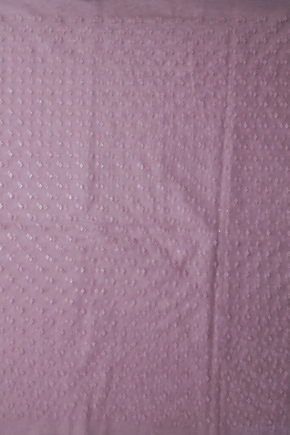Small Motif Sequins Embroidery Work On Mauve Soft Net Fabric