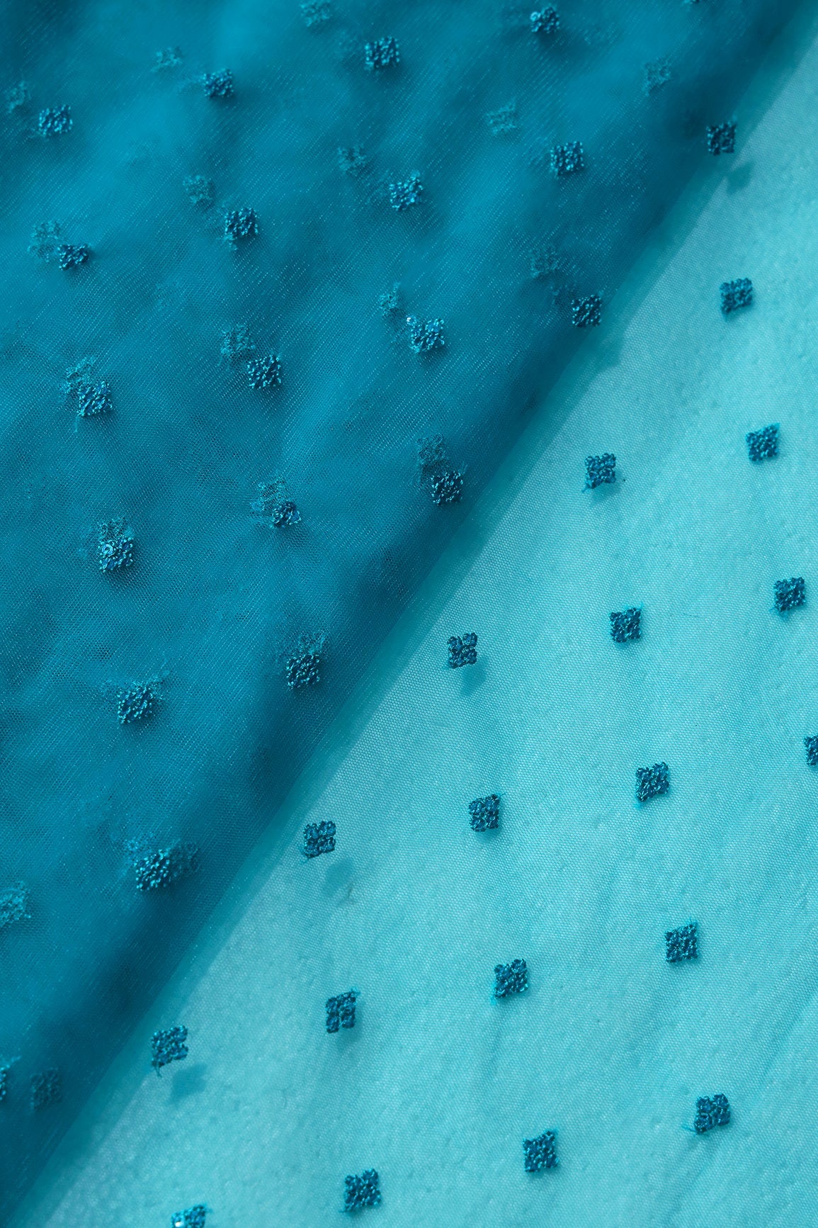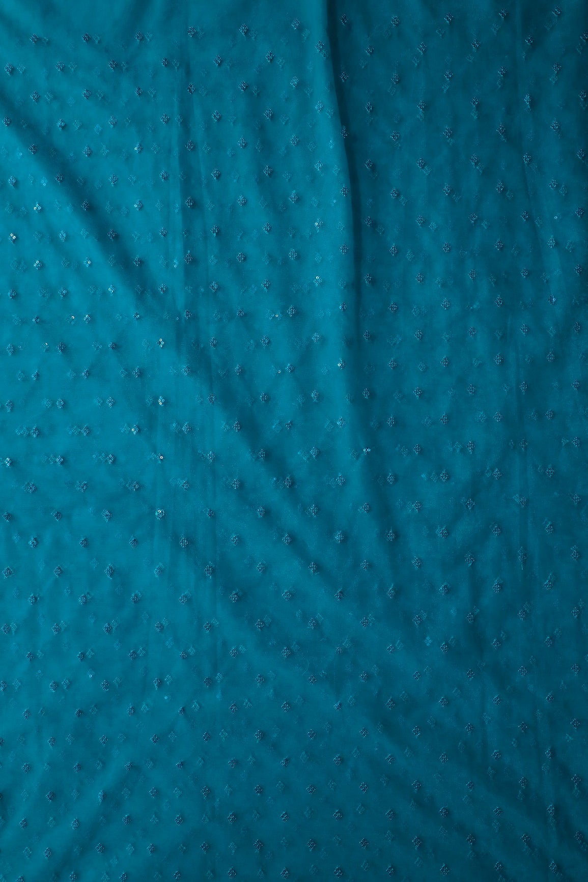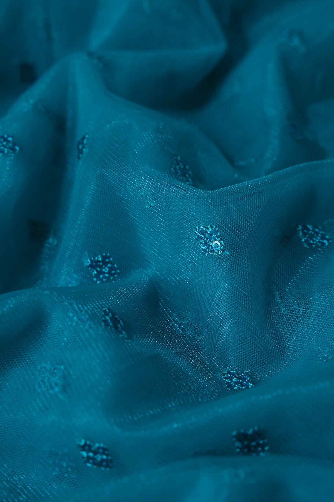 Small Motif Sequins Embroidery Work On Rama Soft Net Fabric