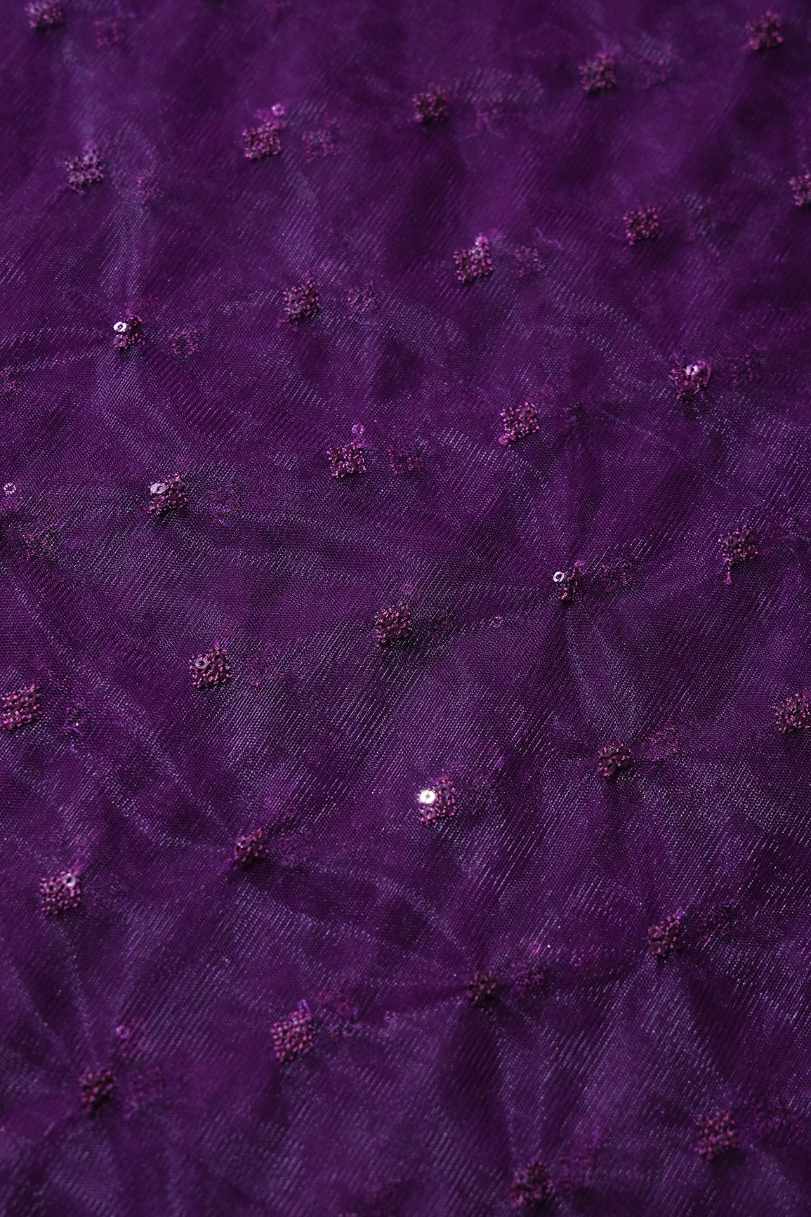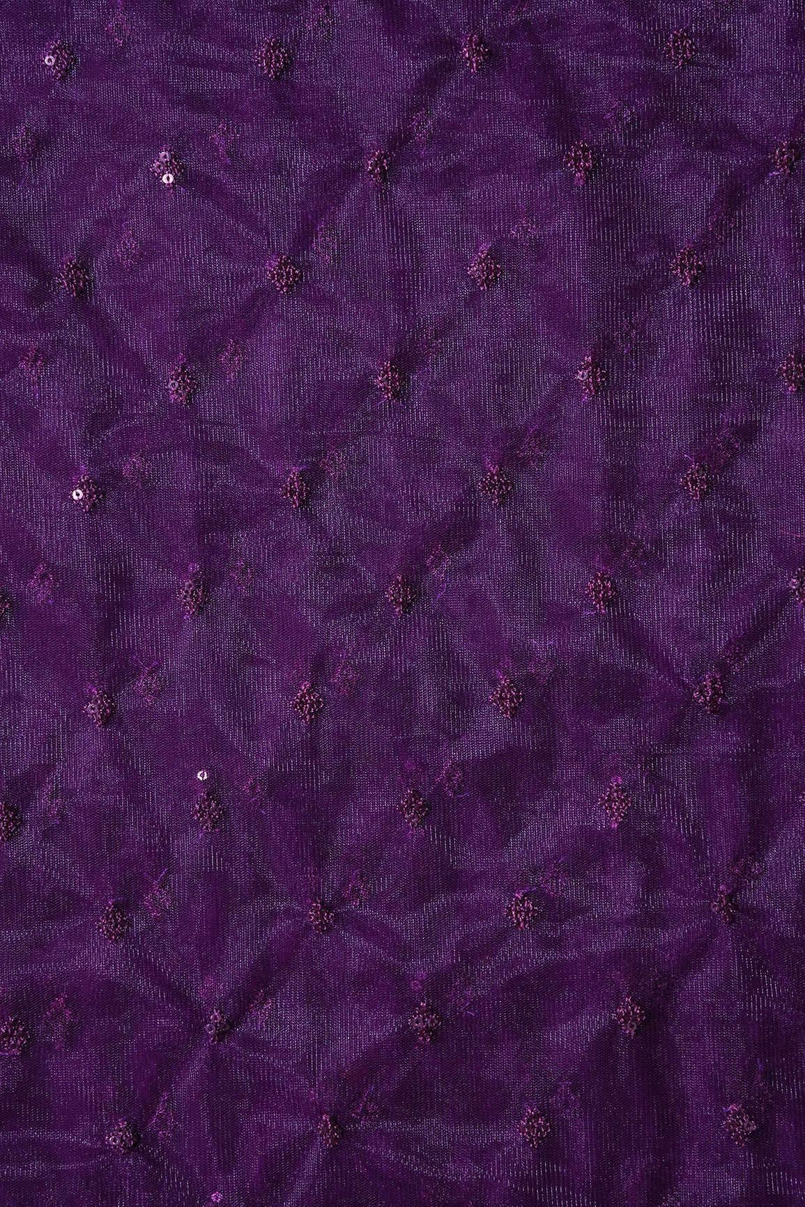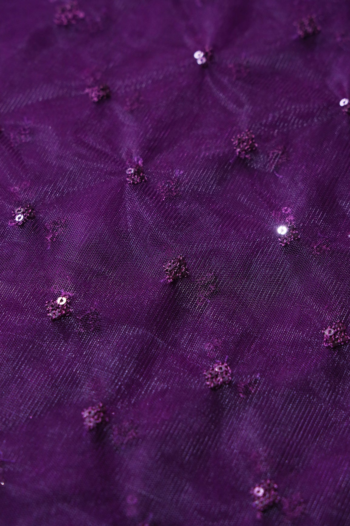 Small Motif Sequins Embroidery Work On Wine Soft Net Fabric