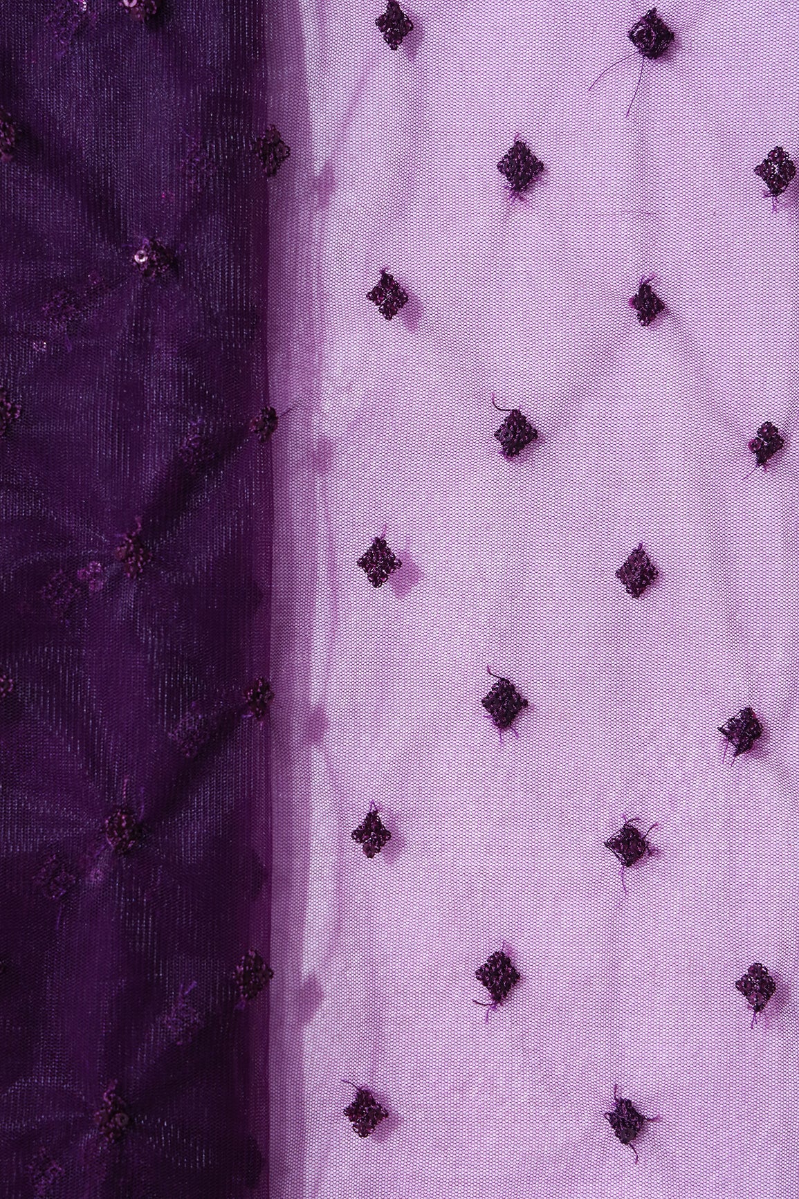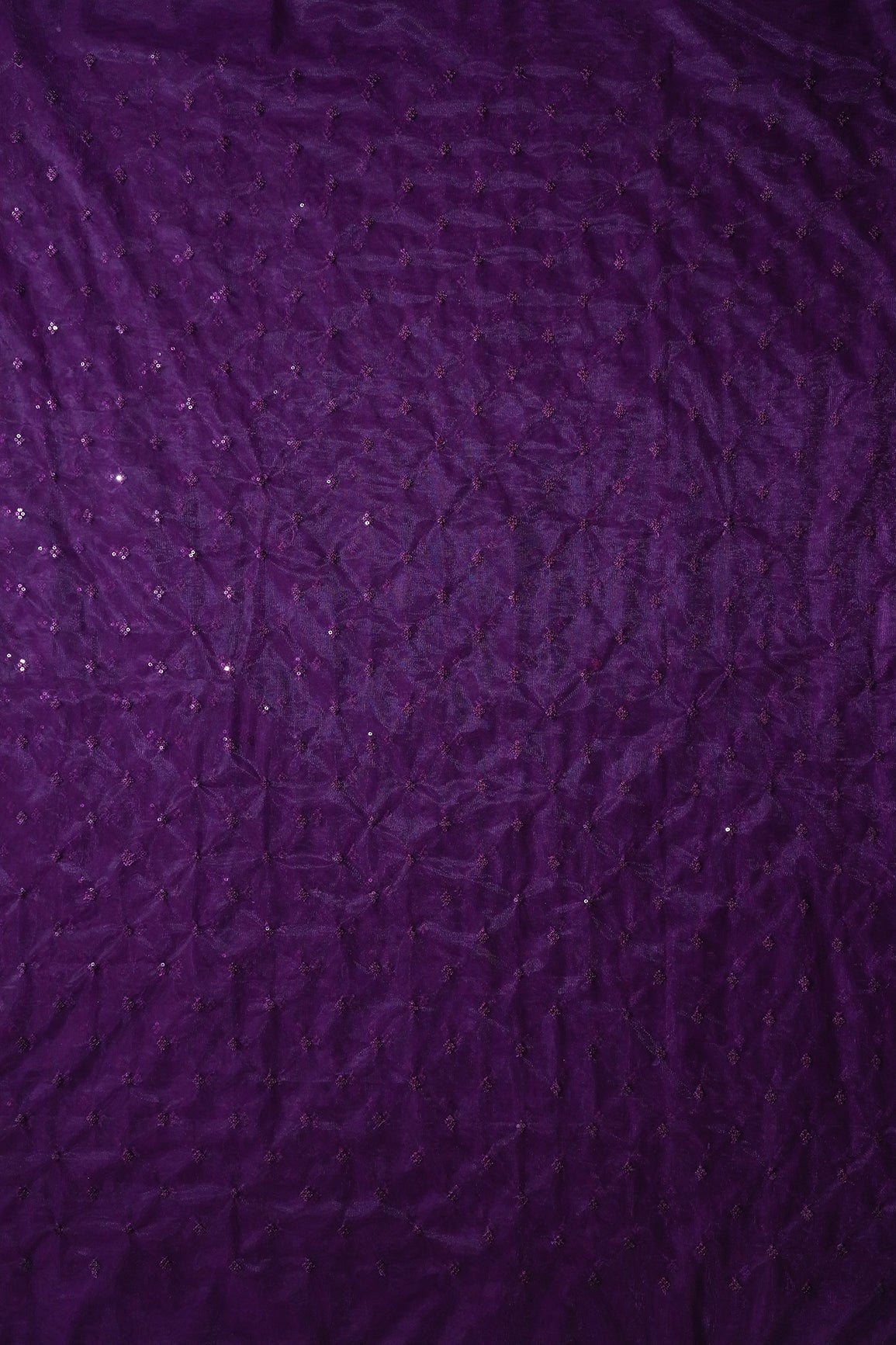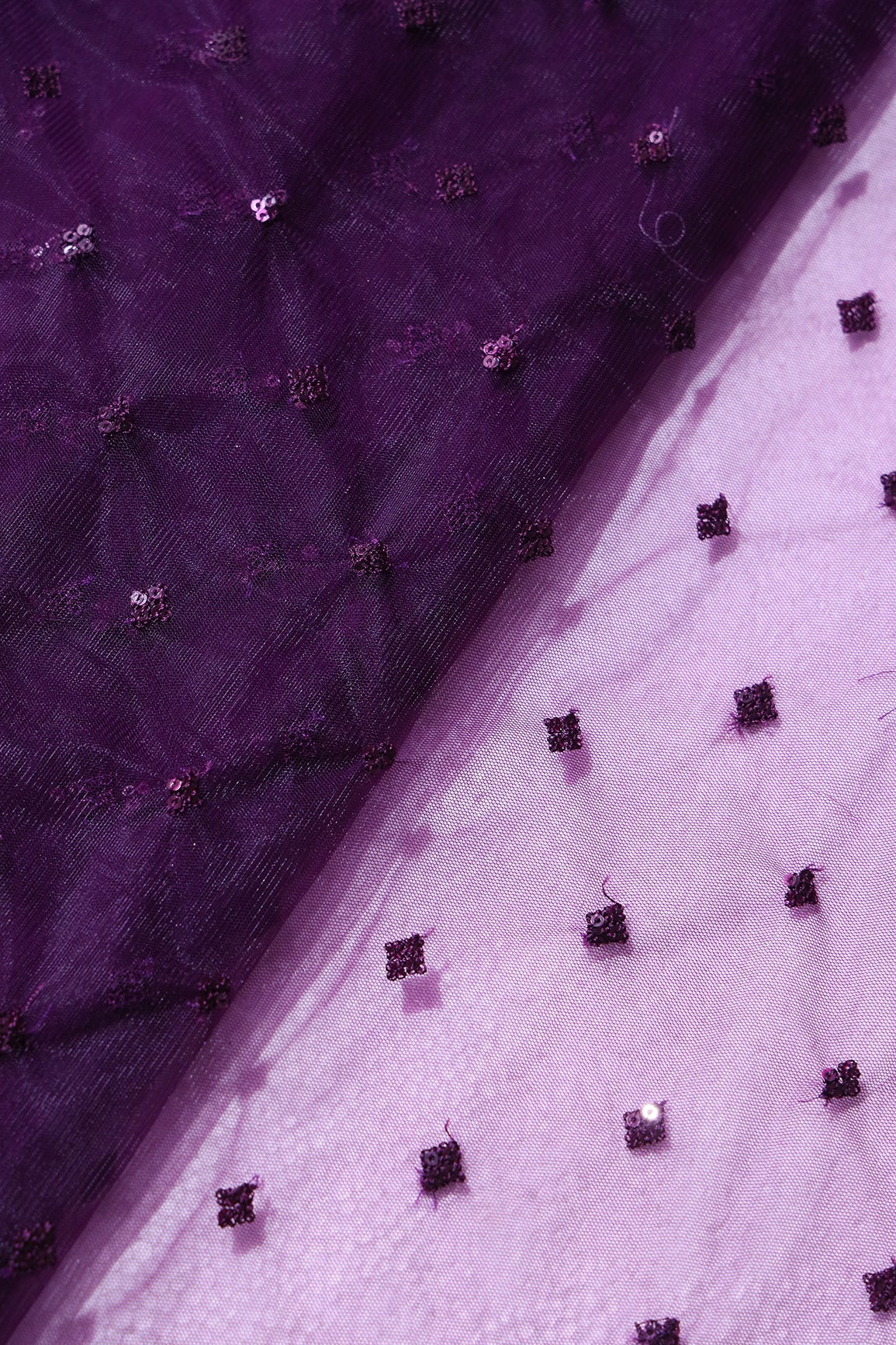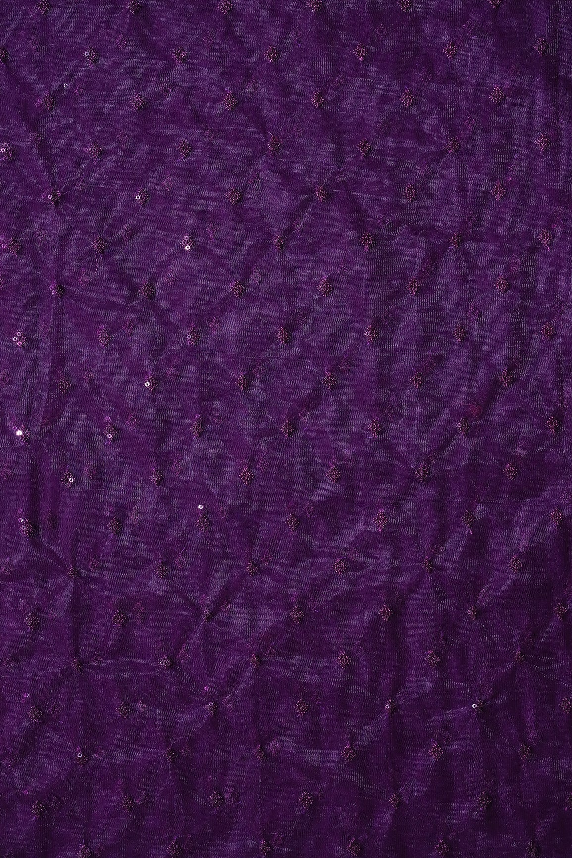 Small Motif Sequins Embroidery Work On Wine Soft Net Fabric