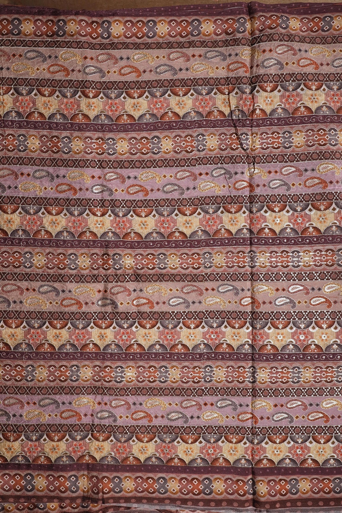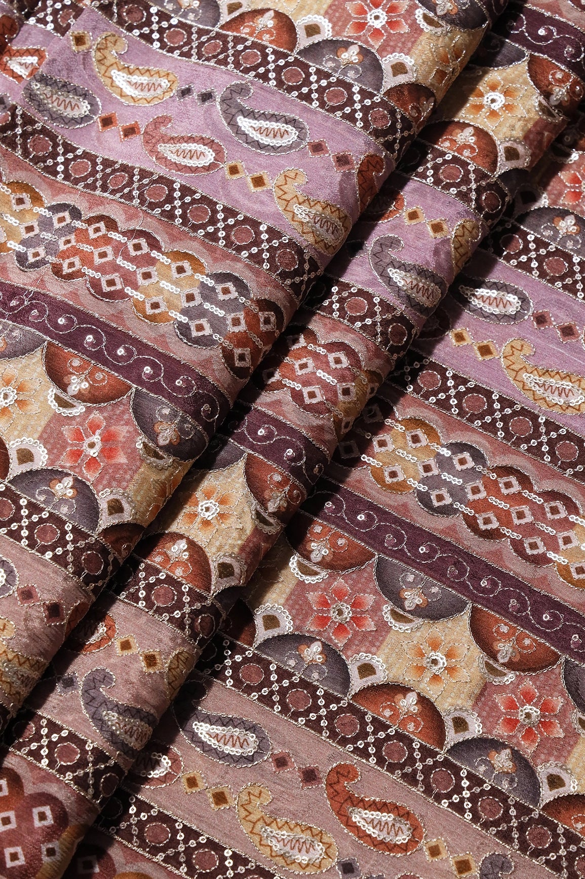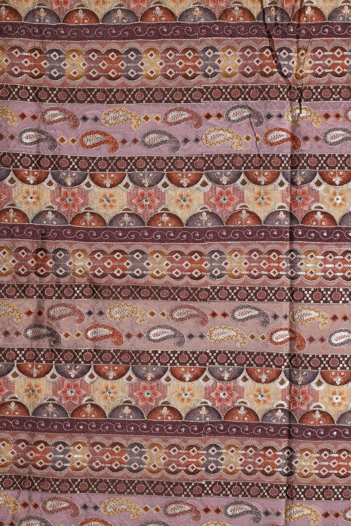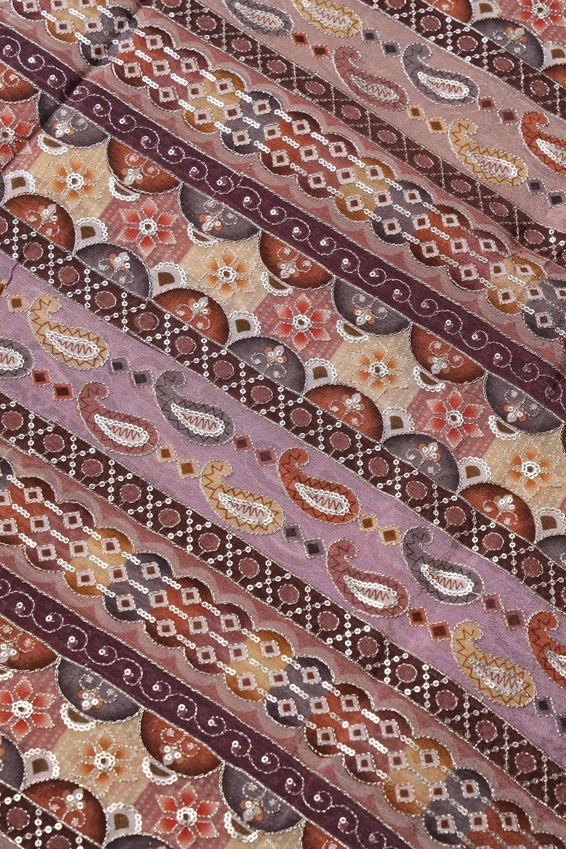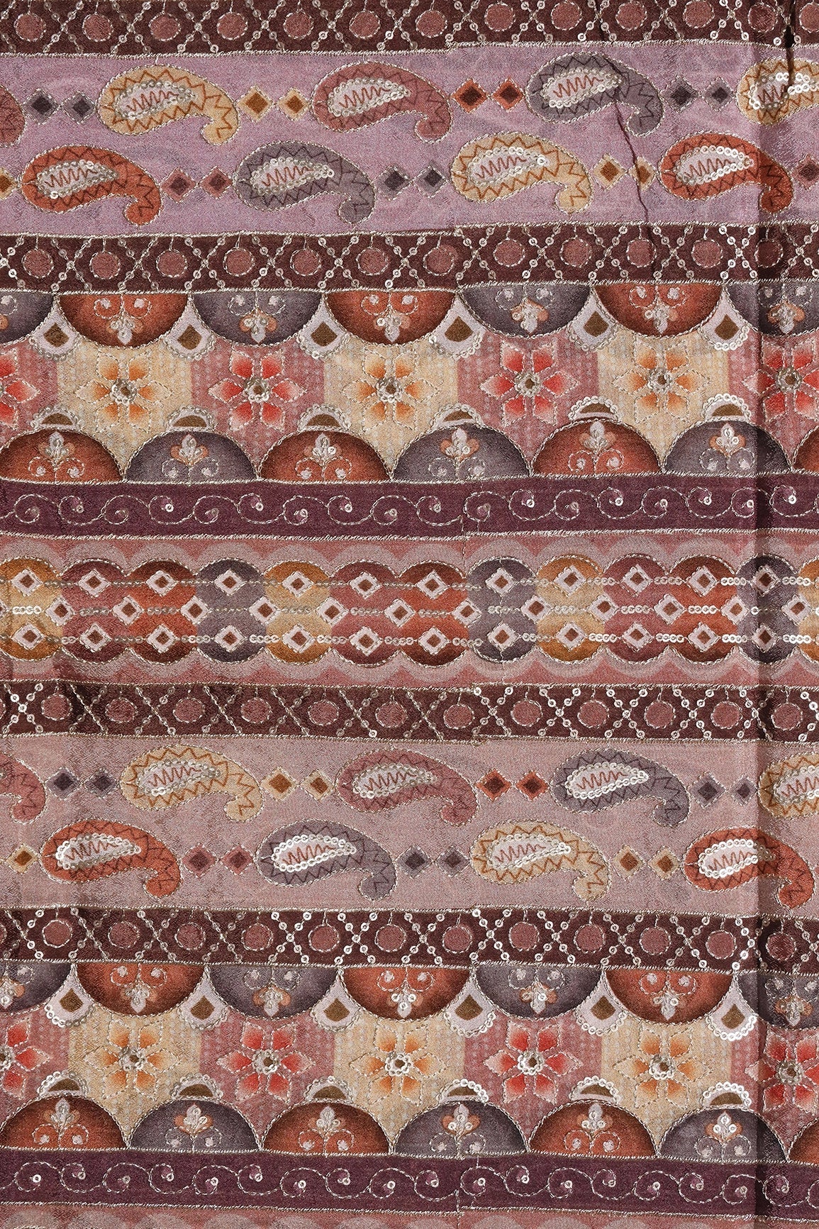 Traditional Position Print On Sequins Embroidery Light Brown Viscose Chinnon Chiffon Fabric