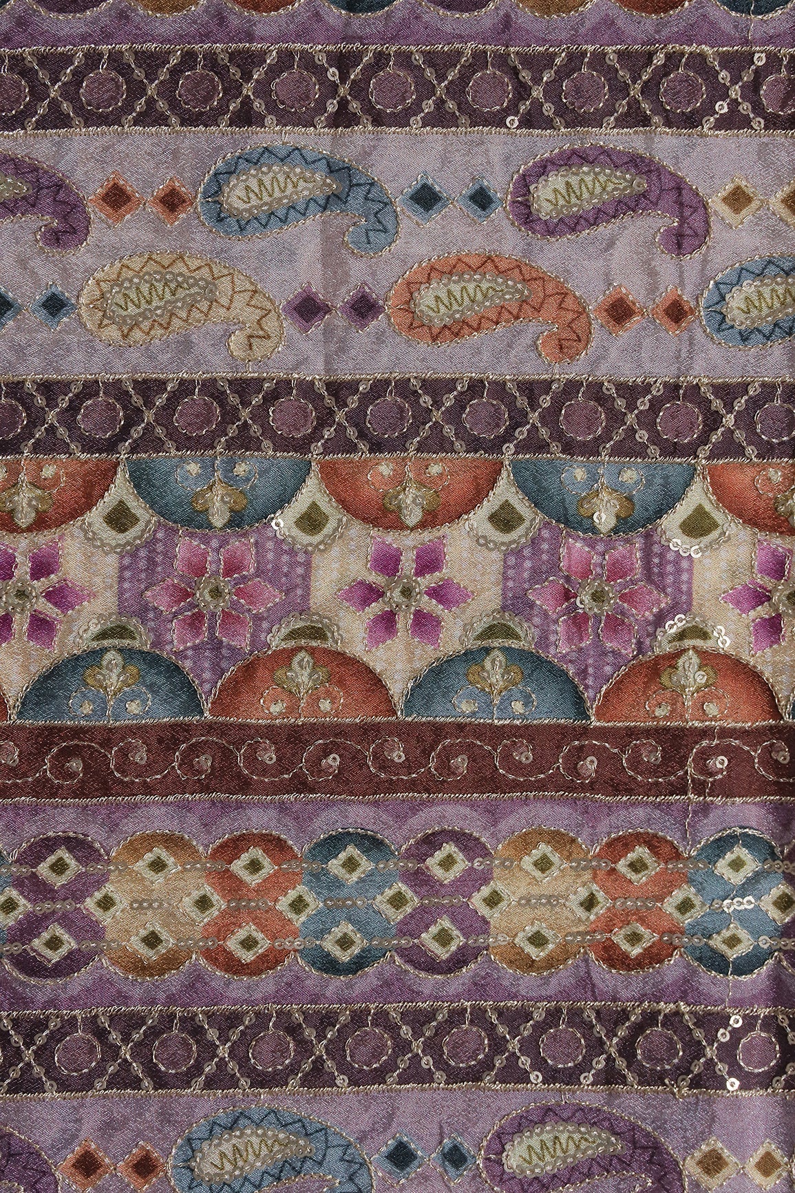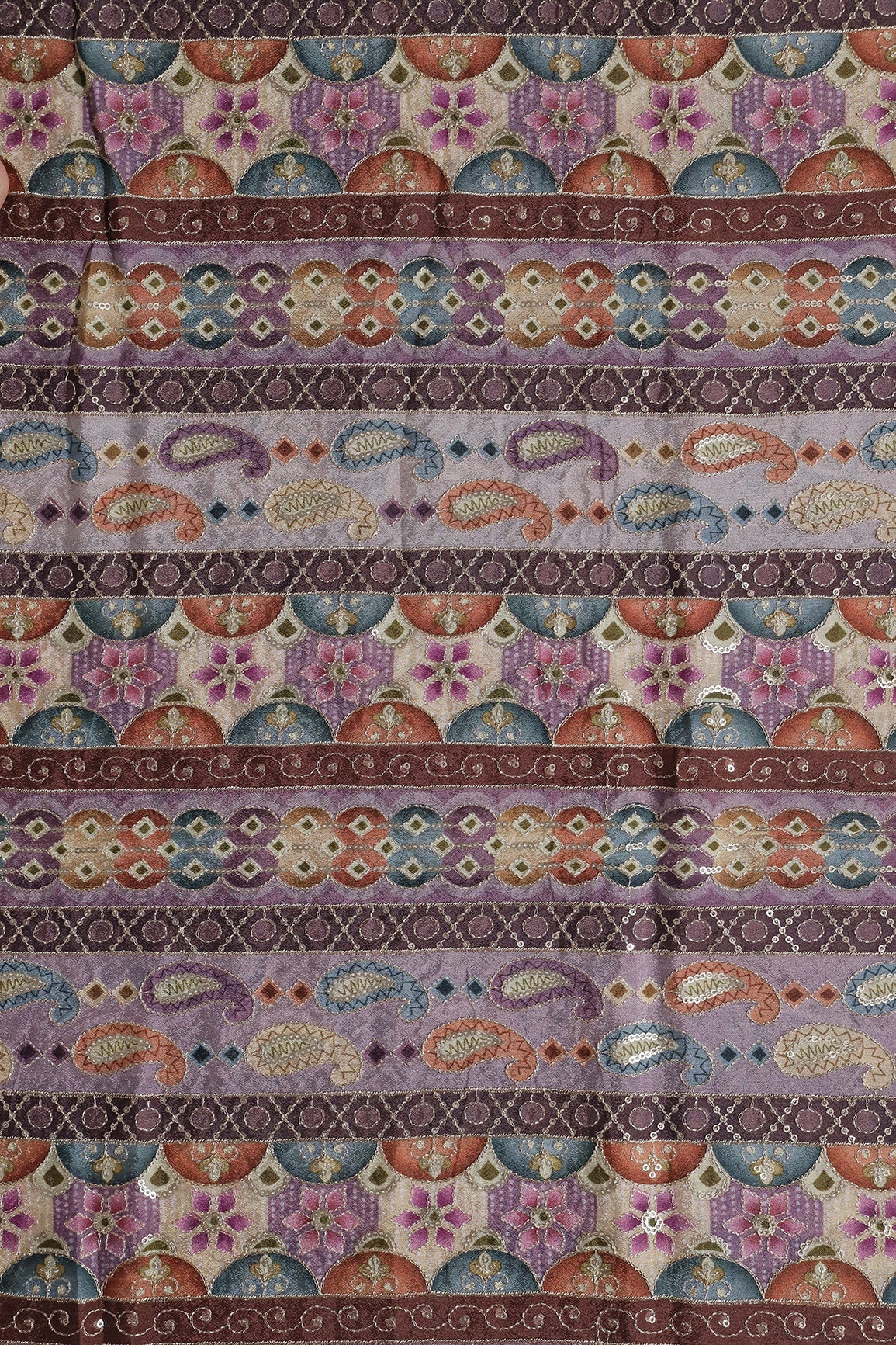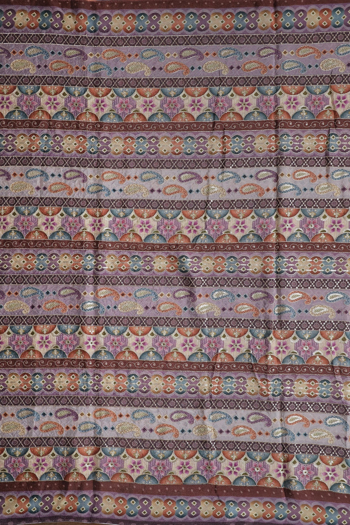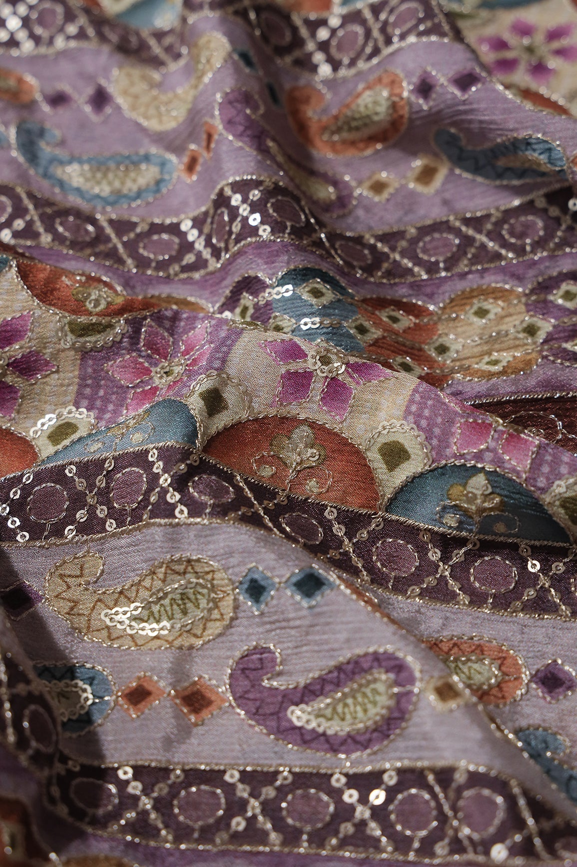 Traditional Position Print On Sequins Embroidery Light Lavender Viscose Chinnon Chiffon Fabric