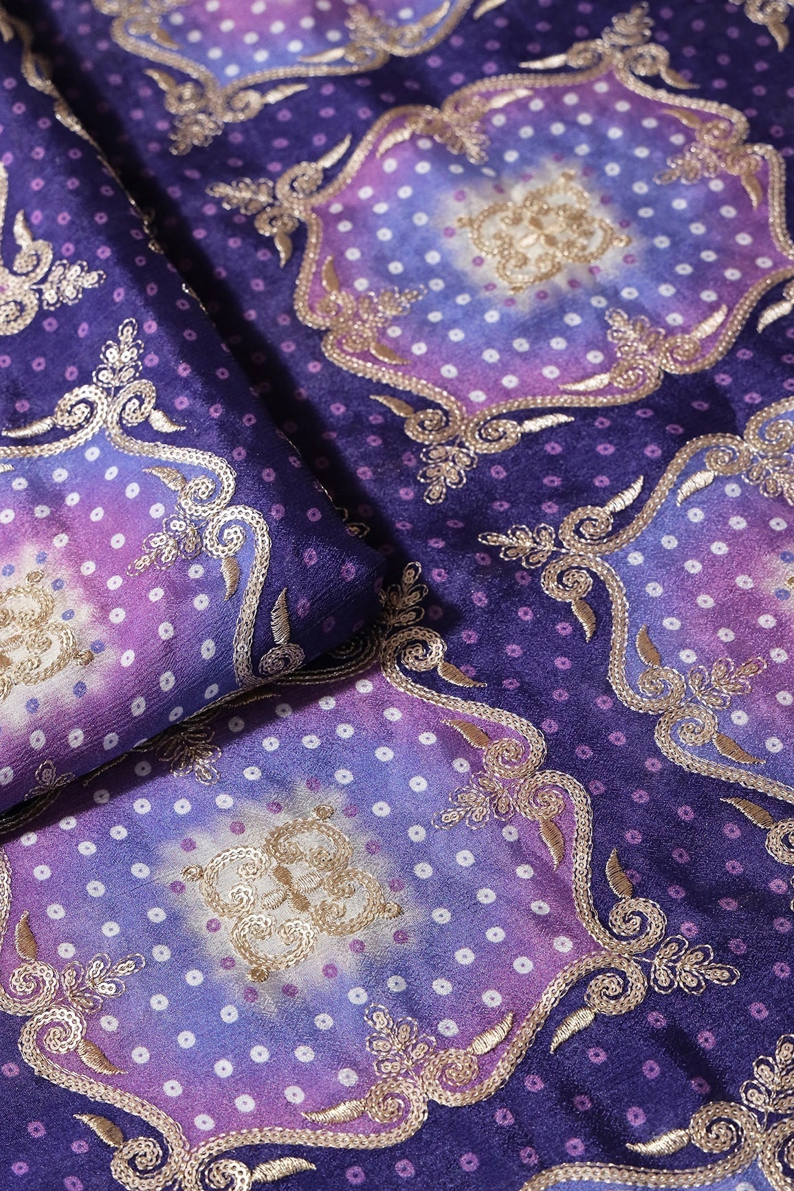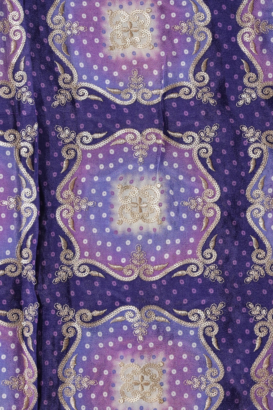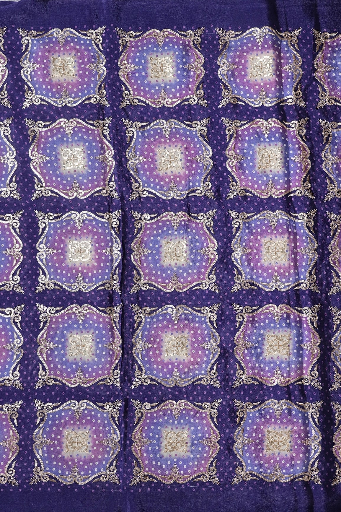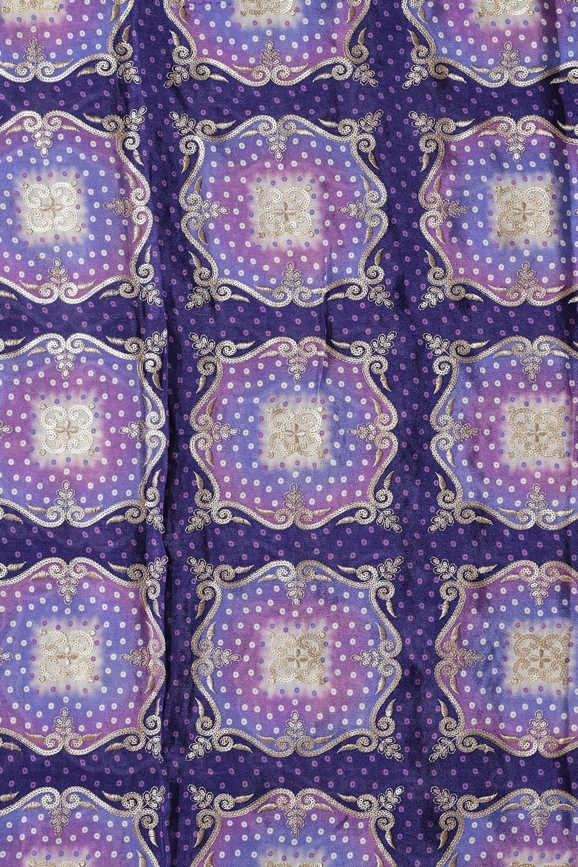 Trendy Bandhani Position Print On Sequins Embroidery Purple Viscose Chinnon Chiffon Fabric
