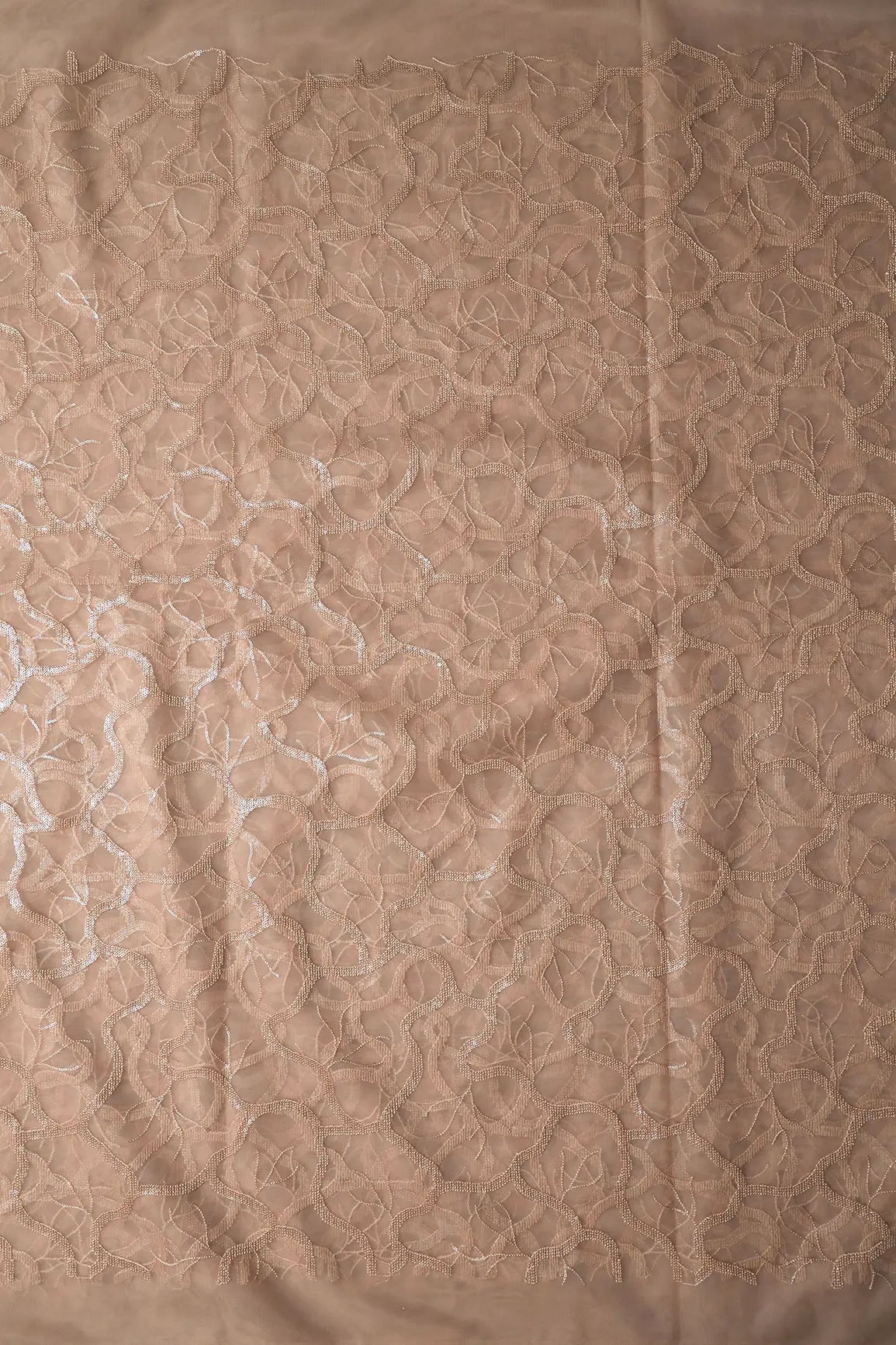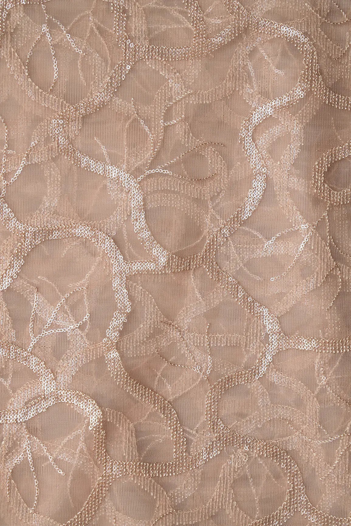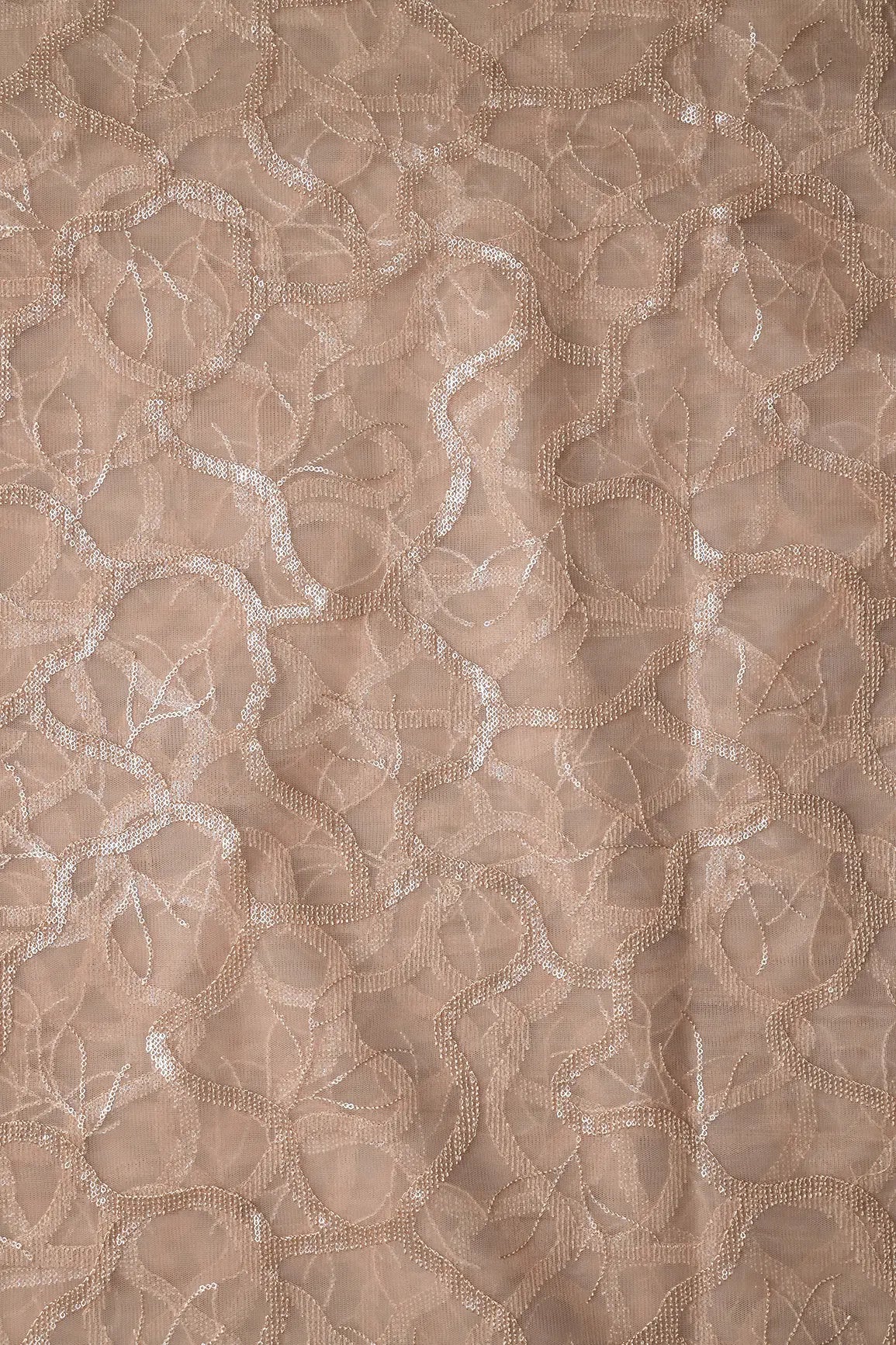 Water Sequins Abstract Embroidery On Beige Soft Net Fabric
