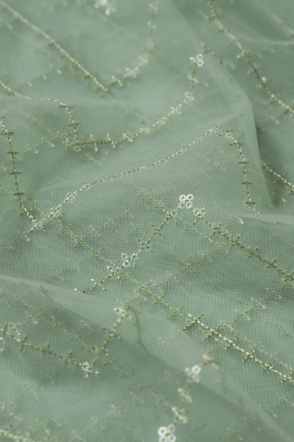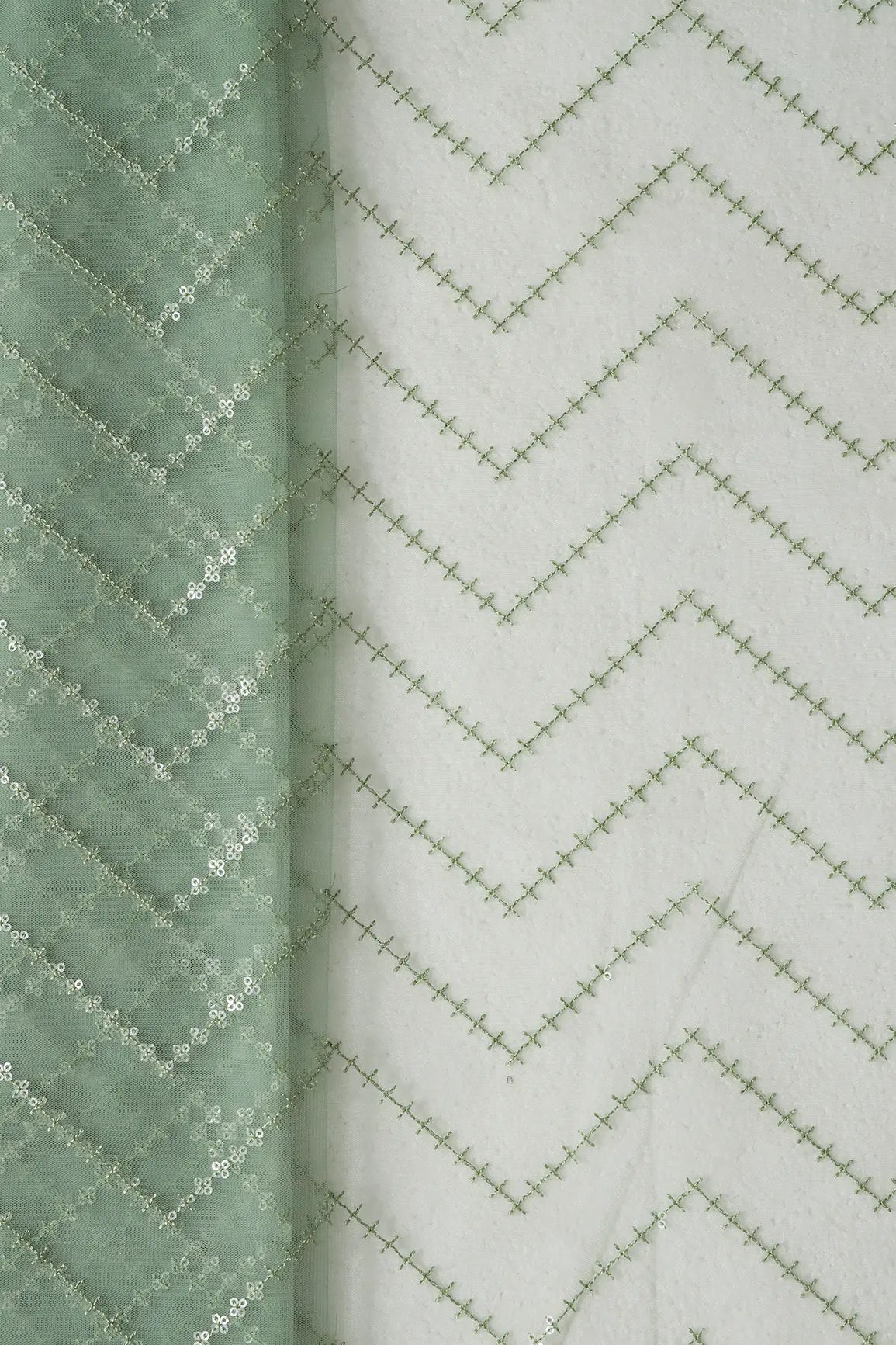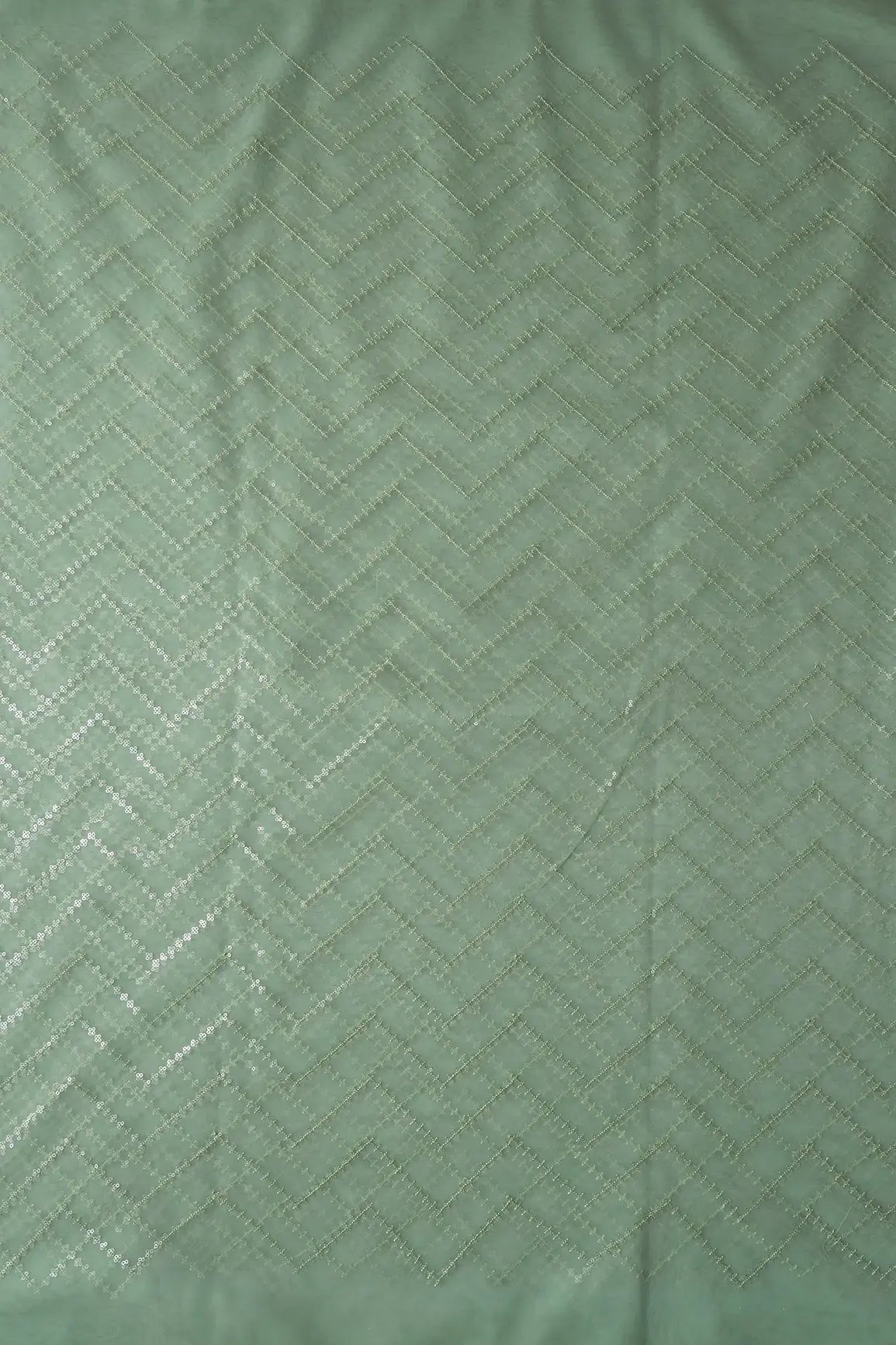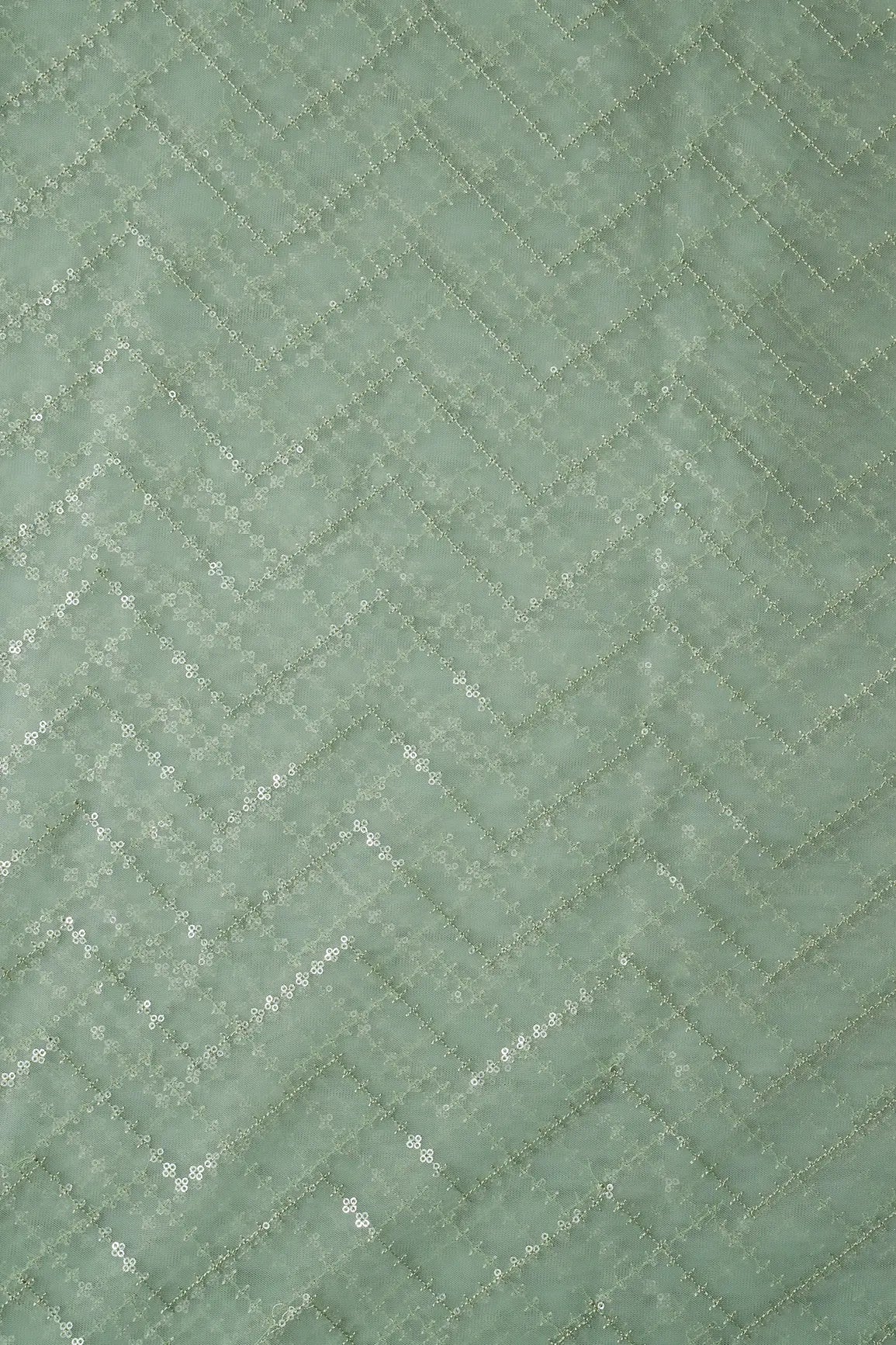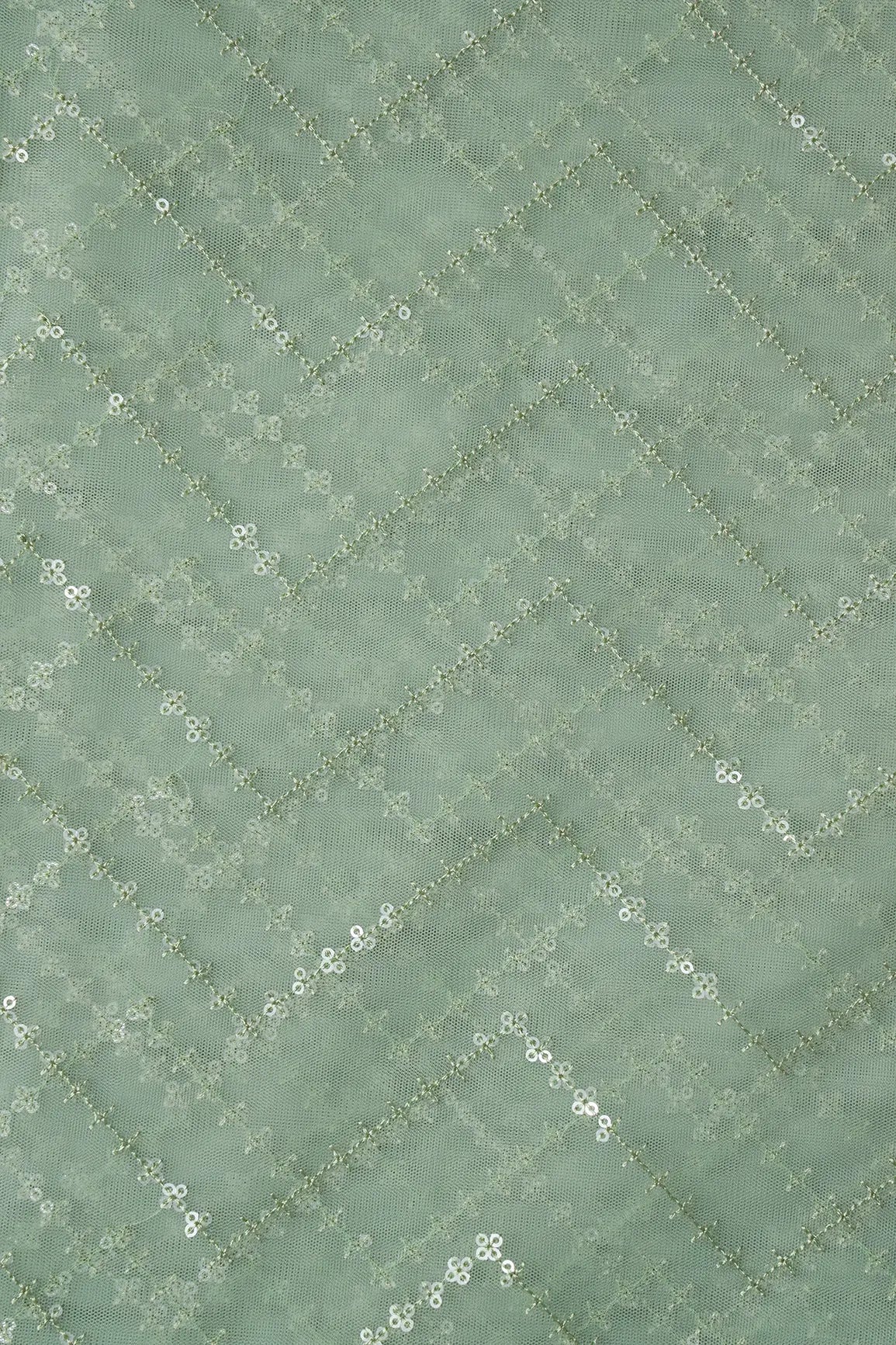 Water Sequins Chevron Embroidery Work On Olive Soft Net Fabric