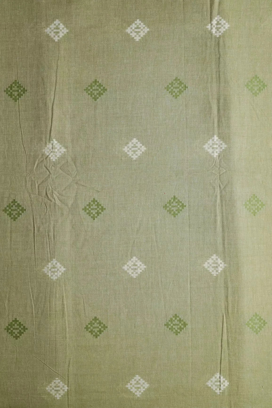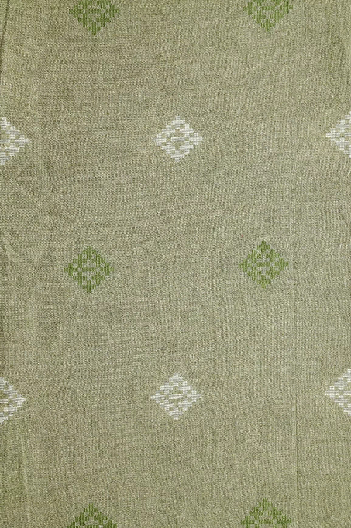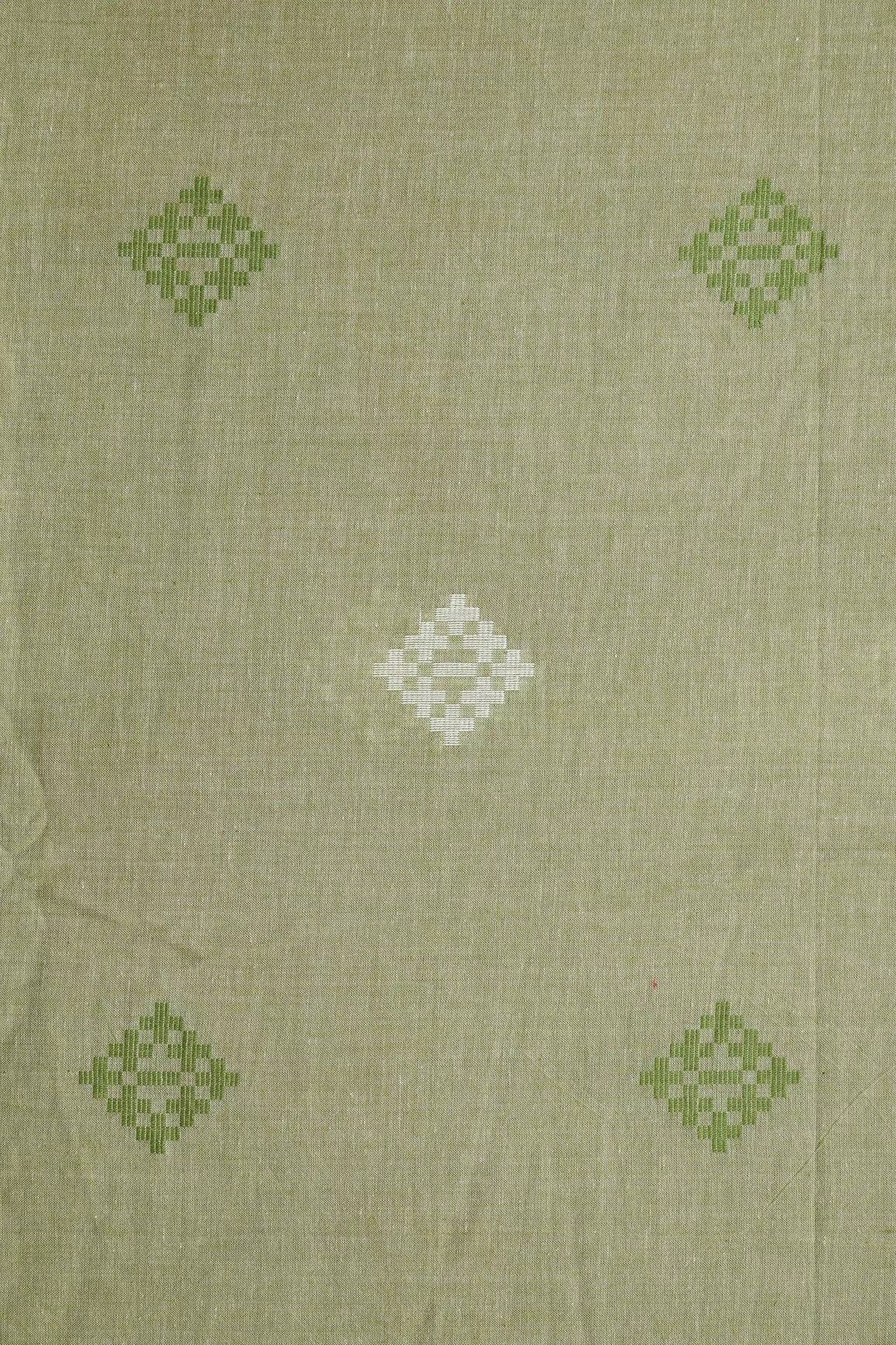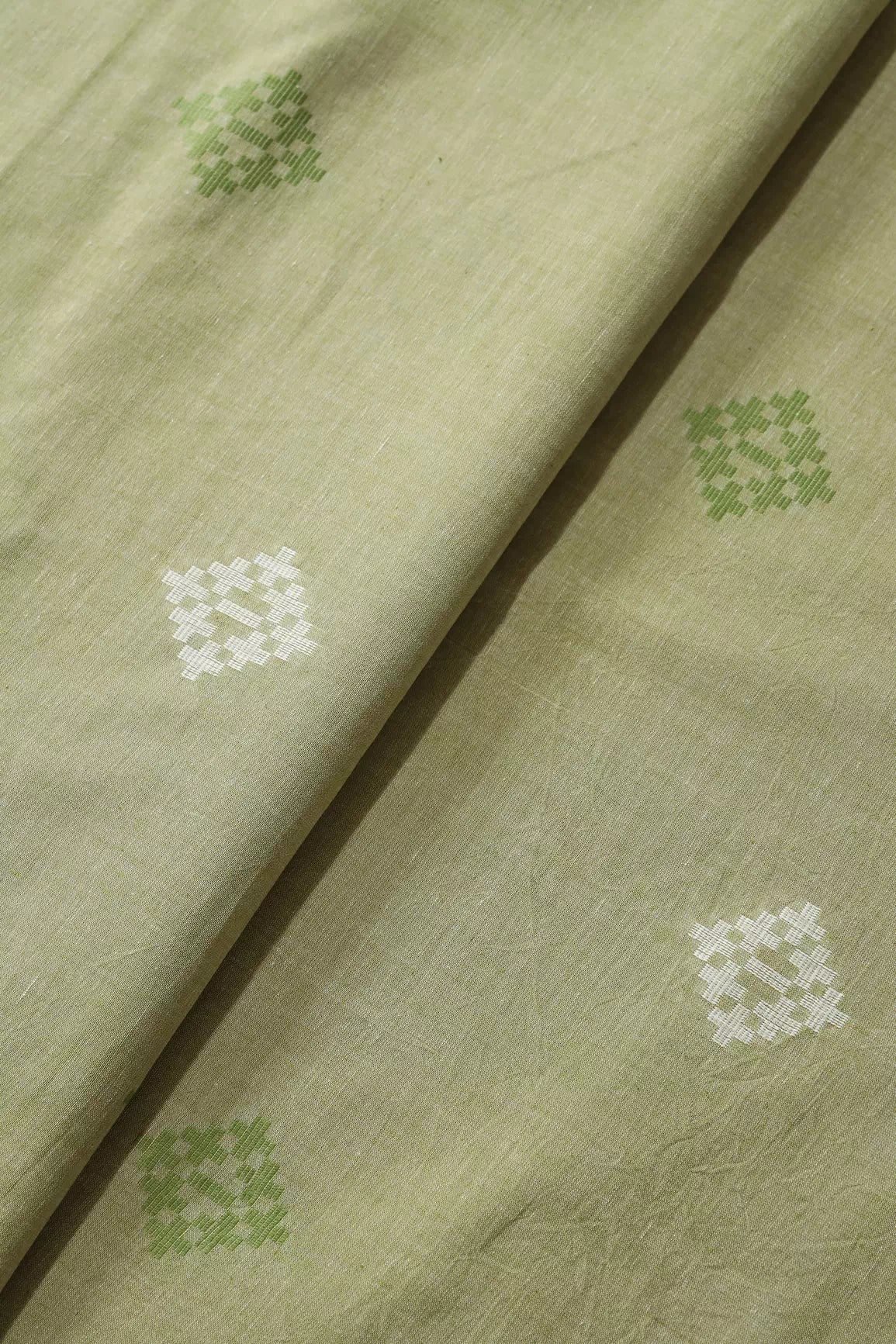 White And Olive Small Booti Pattern Handwoven Organic Cotton Fabric