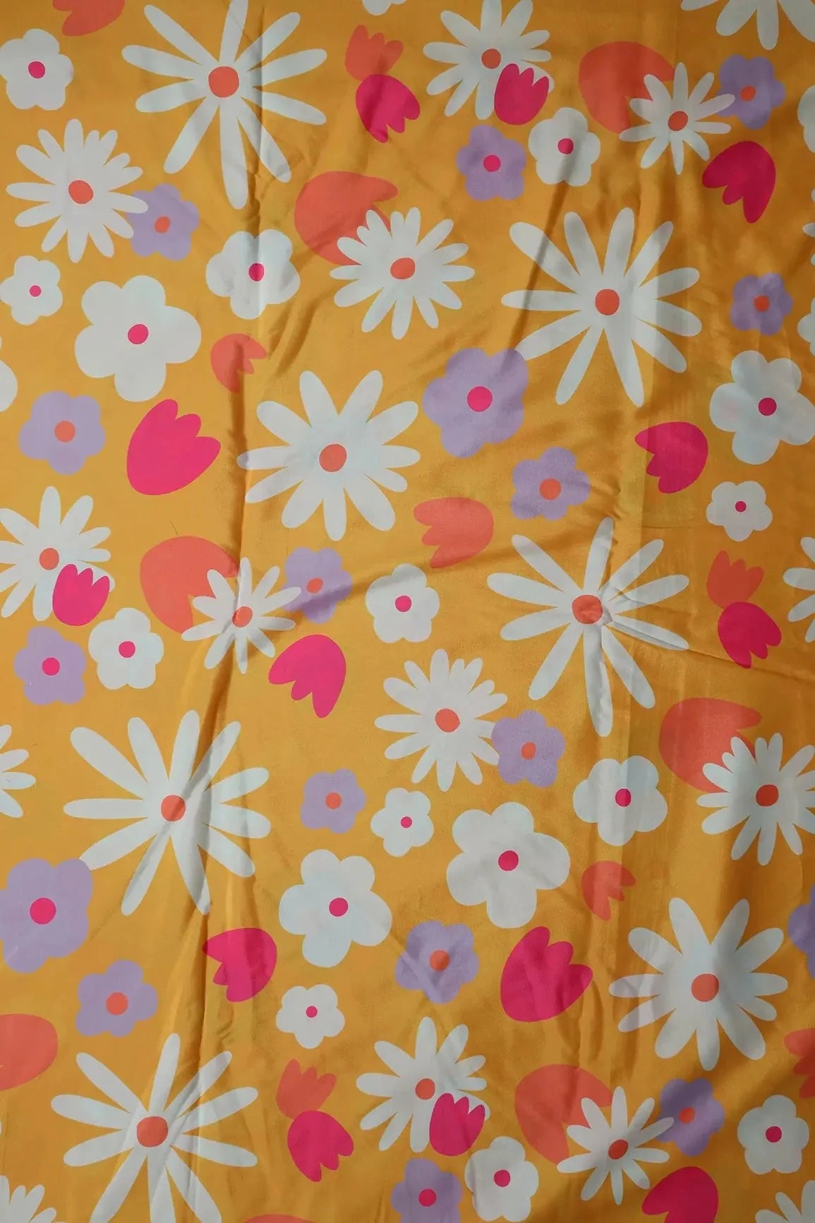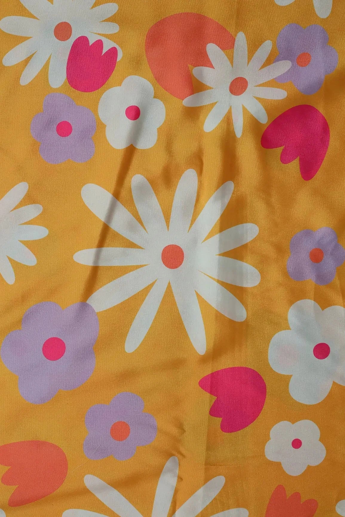 White And Yellow Beautiful Floral Pattern Digital Print On French Crepe Fabric
