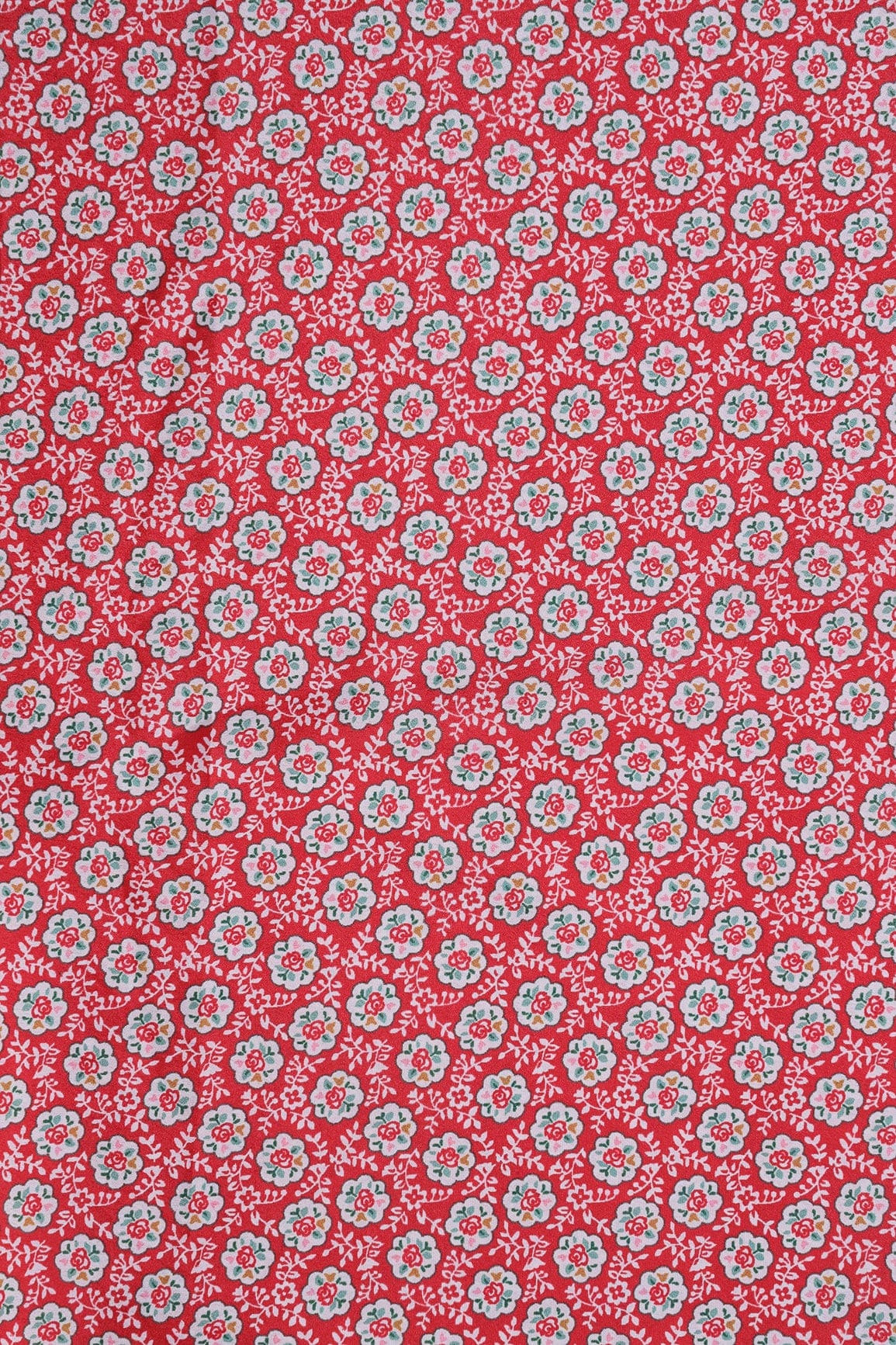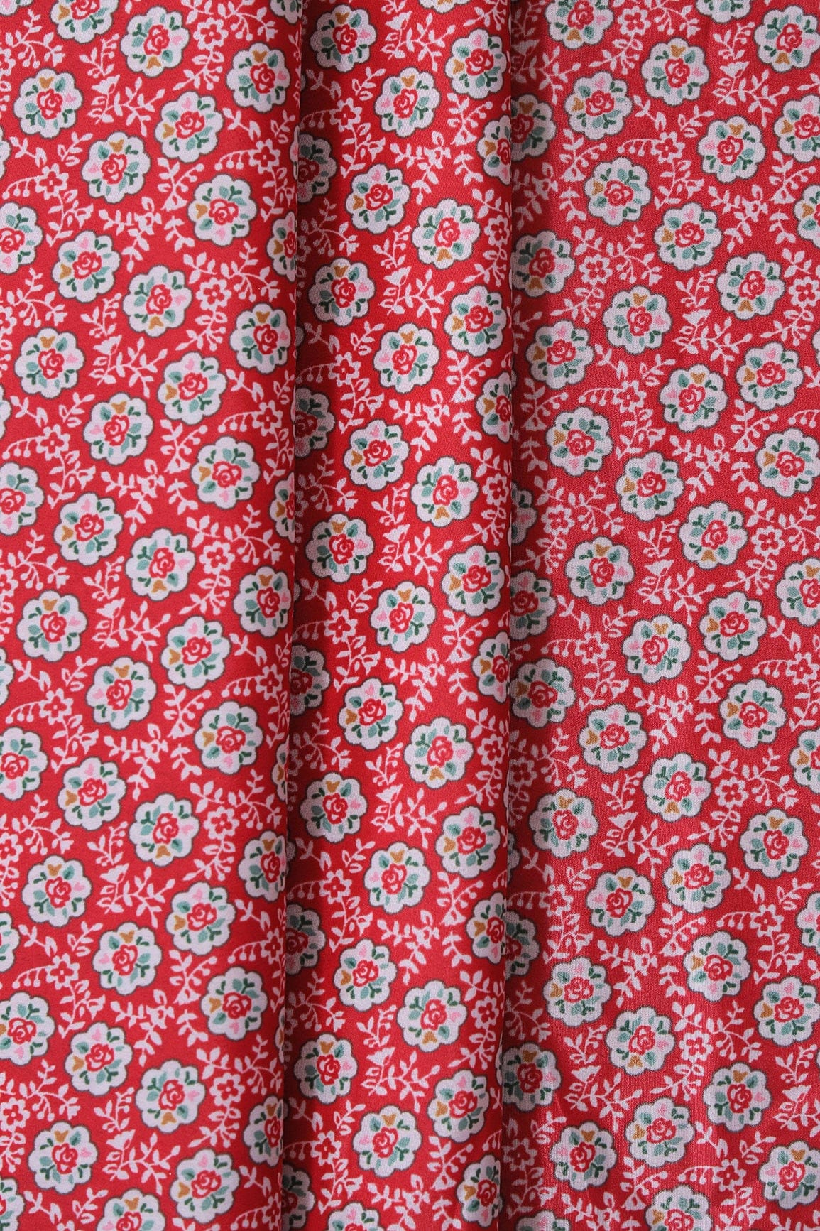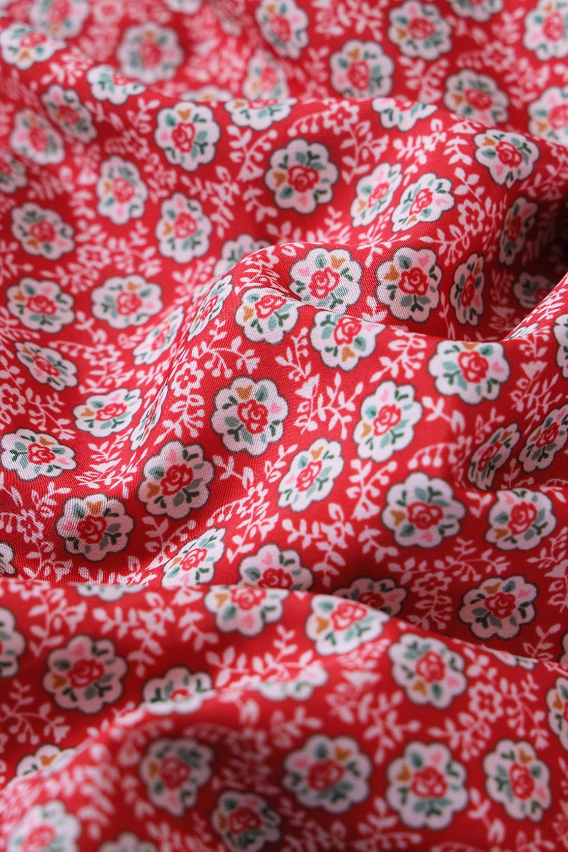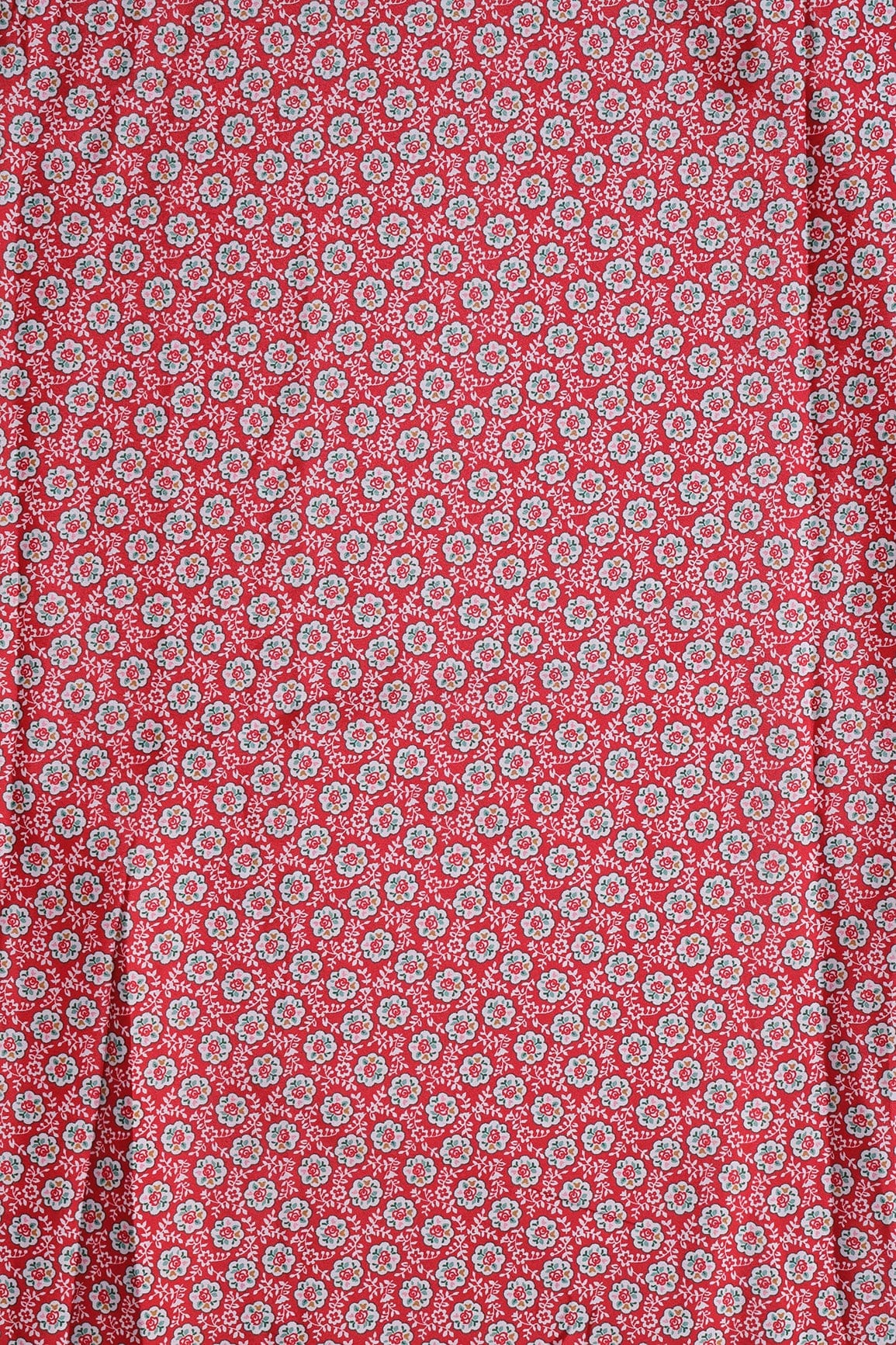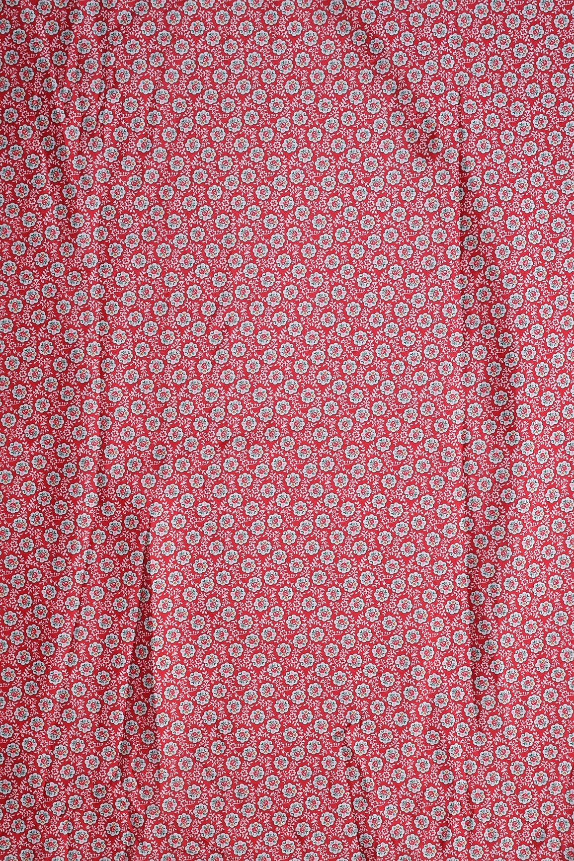 White Small Floral Pattern Digital Print On Red French Crepe Fabric